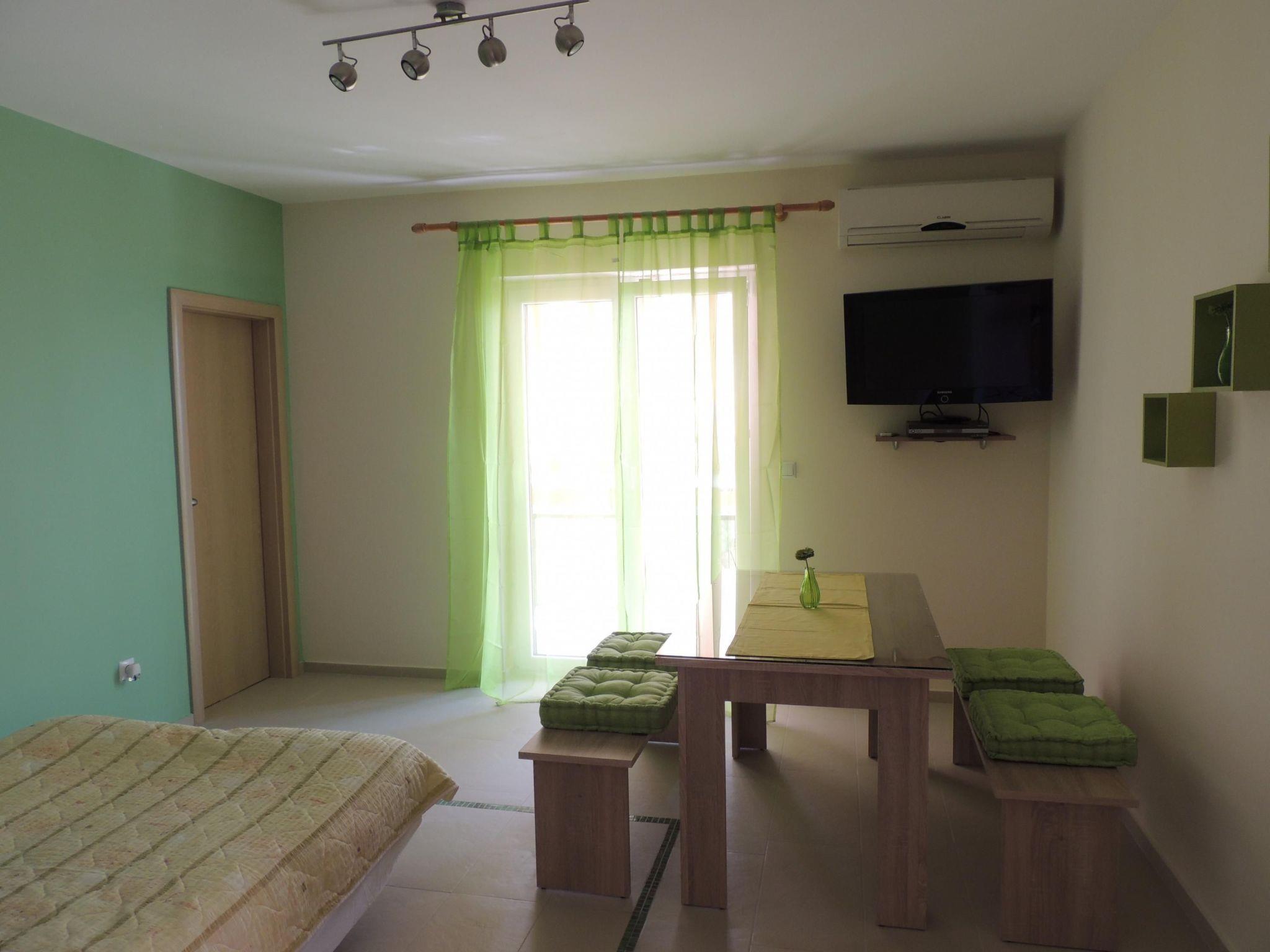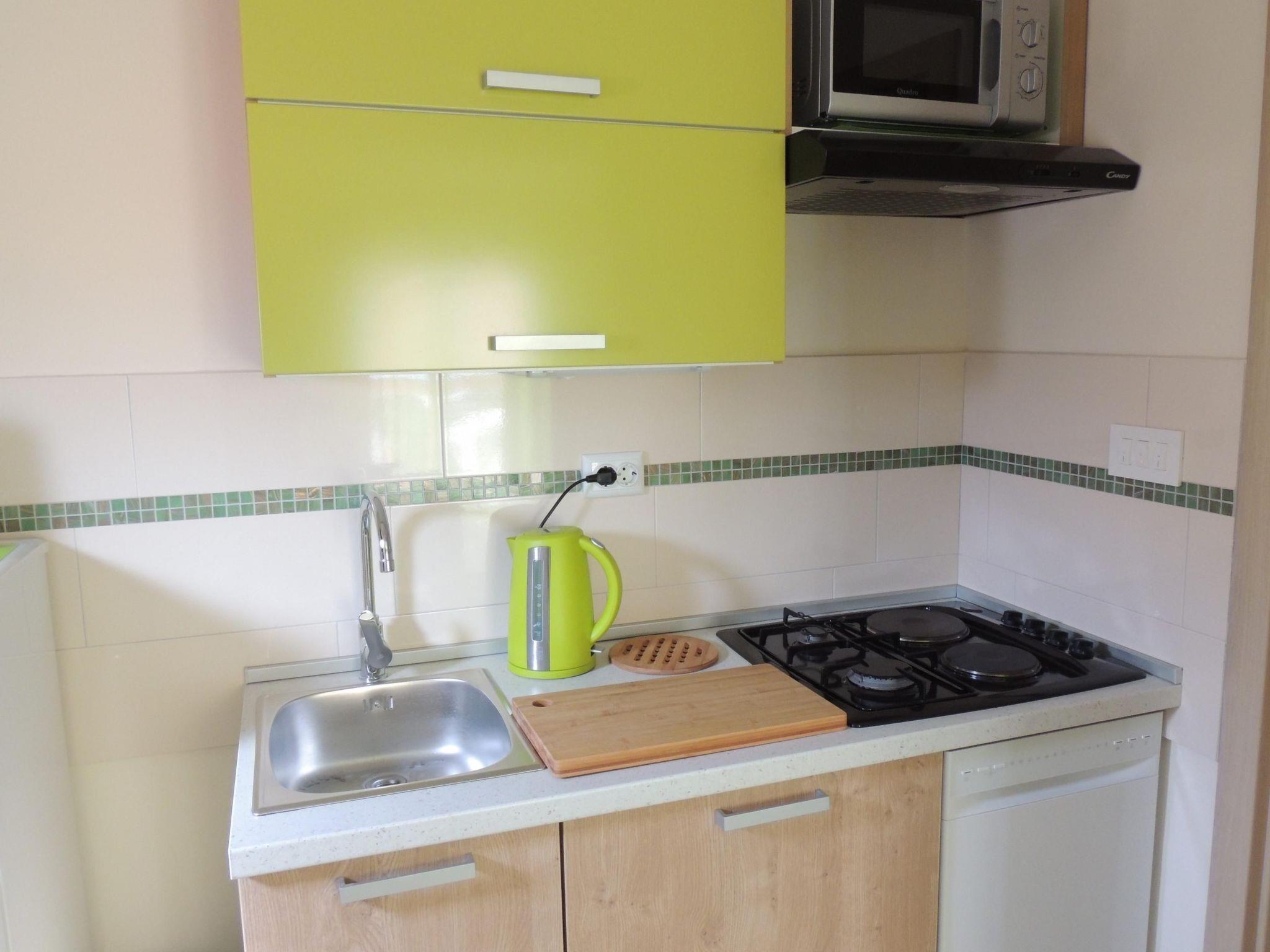 This 45m² apartment can accommodate up to four people and features a pleasant and colourful design. It has a bedroom with a double bed and there is a sofa bed in the living room, where there are also a dining table with chairs, a TV with satellite reception and air conditioning. The kitchen is well-equipped with a gas stove, microwave, kettle, Dolce Gusto coffee machine, toaster and dishwasher. The bathroom provides a shower and a hairdryer.