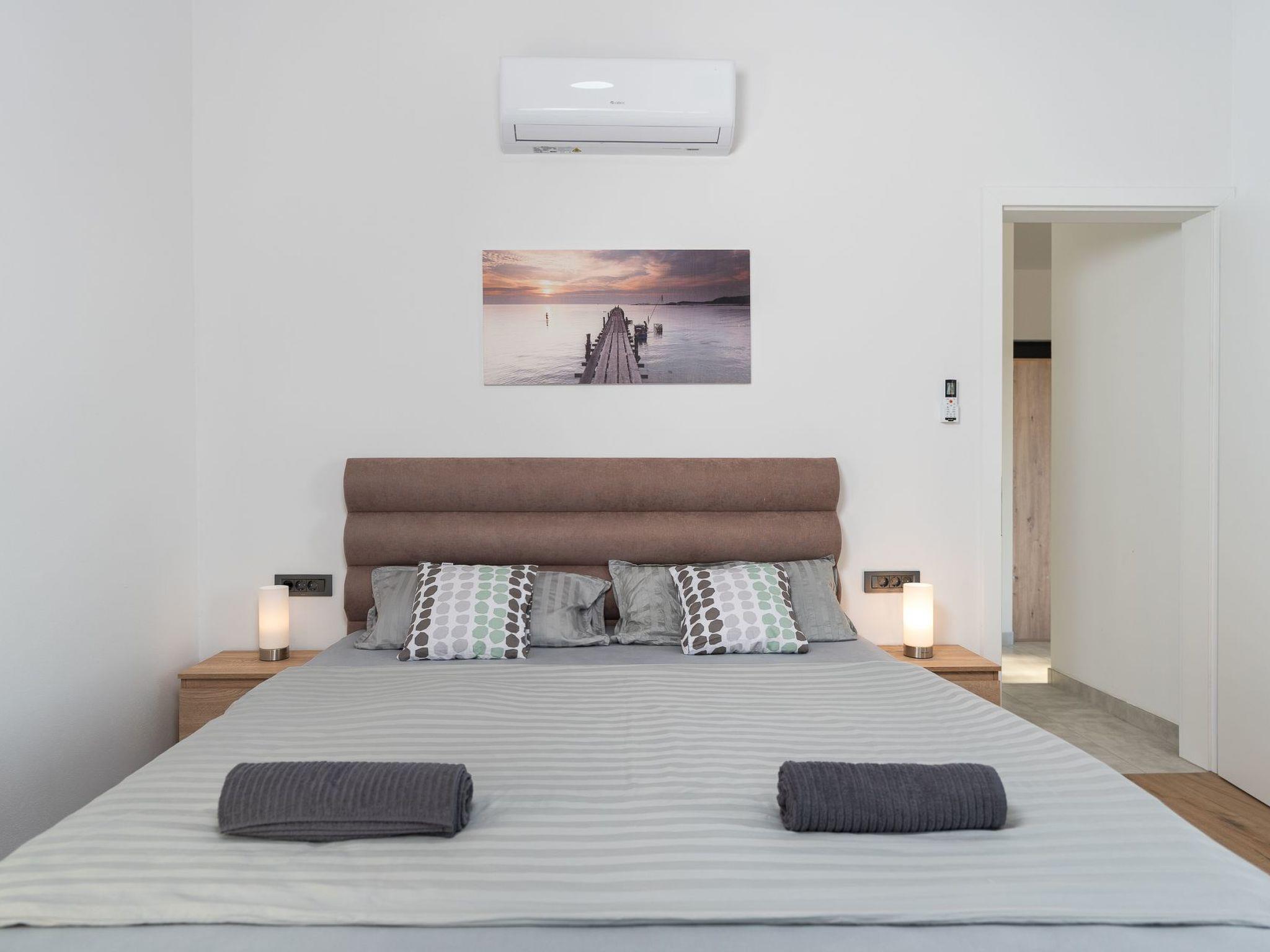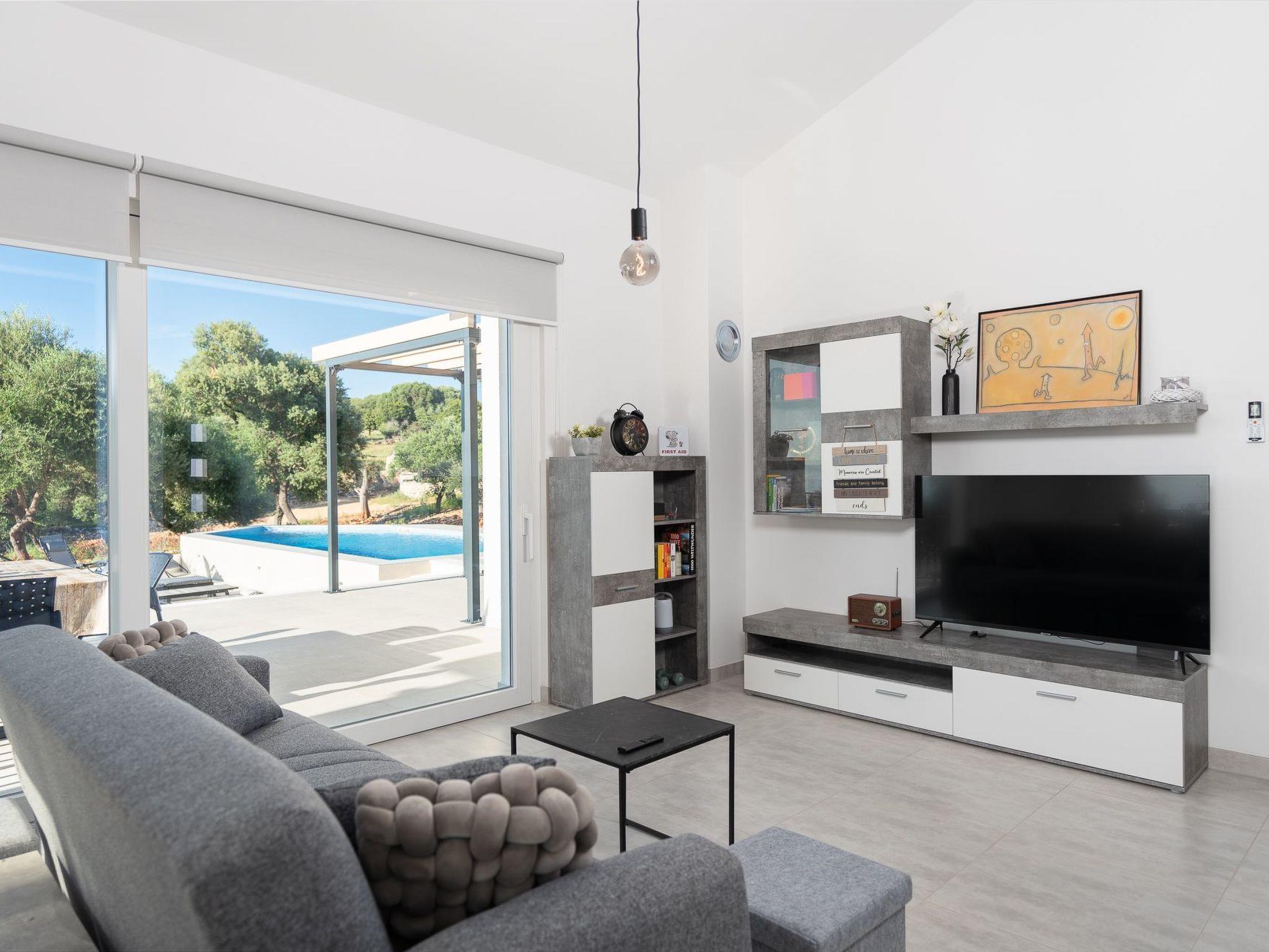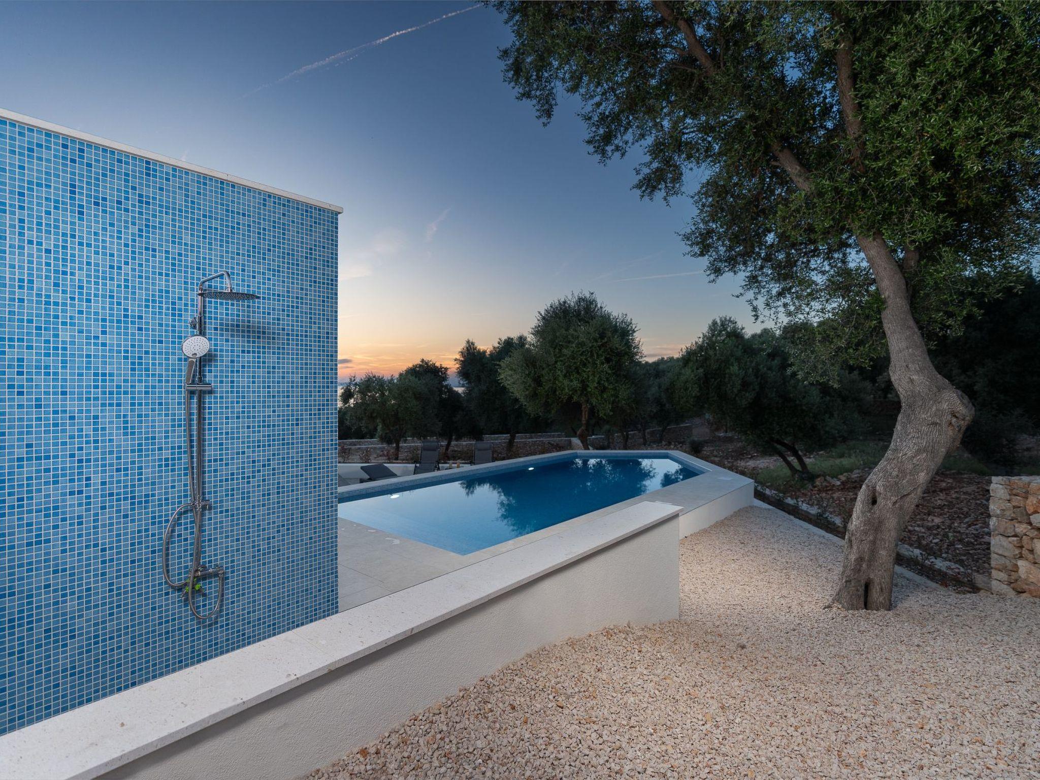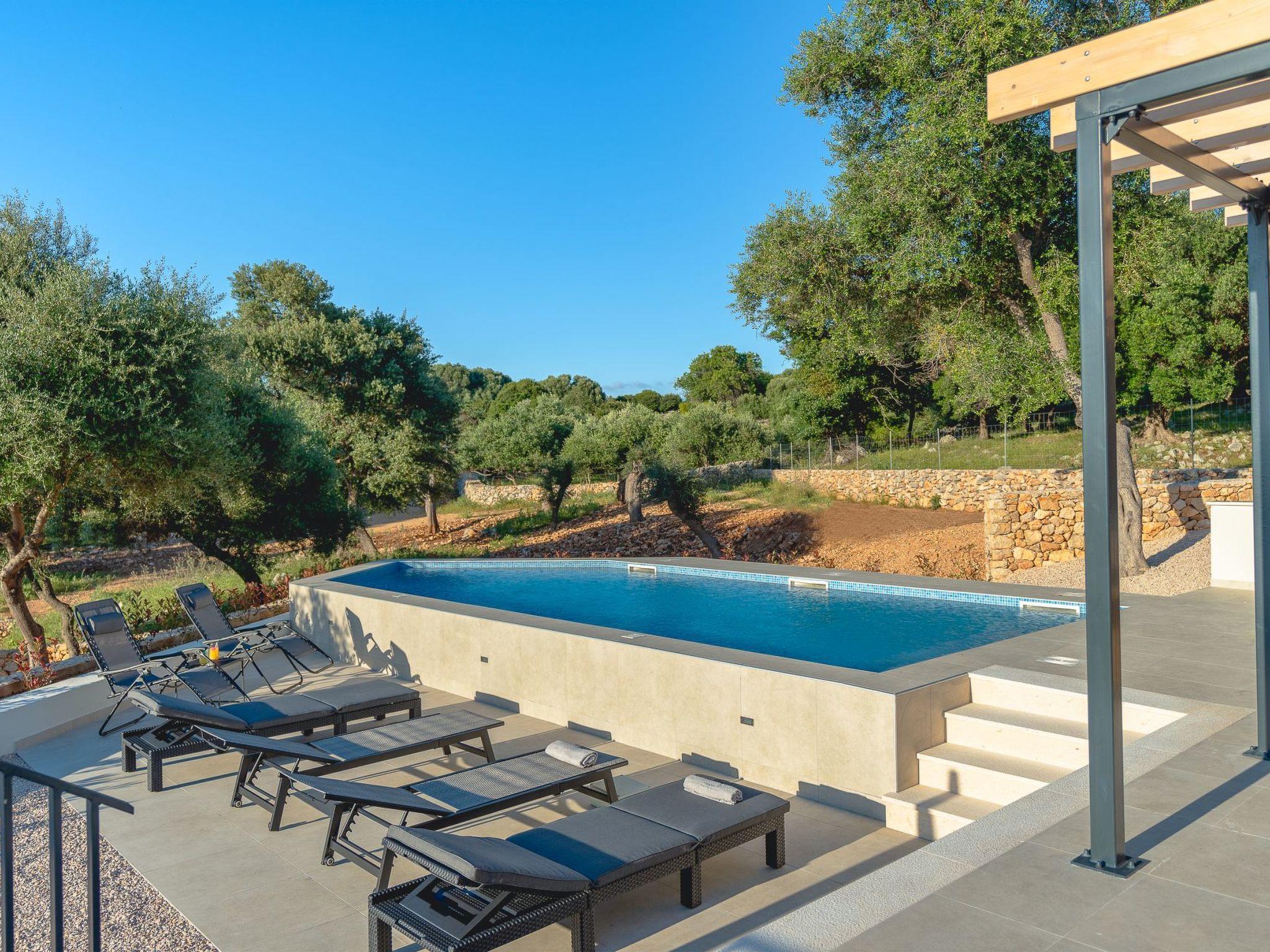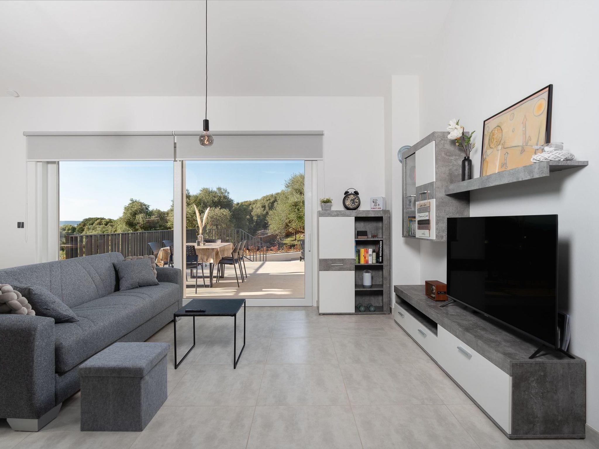 An outdoor barbecue, a lounge set and a flat barbecue on the large terrace with sea view help you to relax. A freshly planted natural garden with mature olive trees rounds off the whole experience.