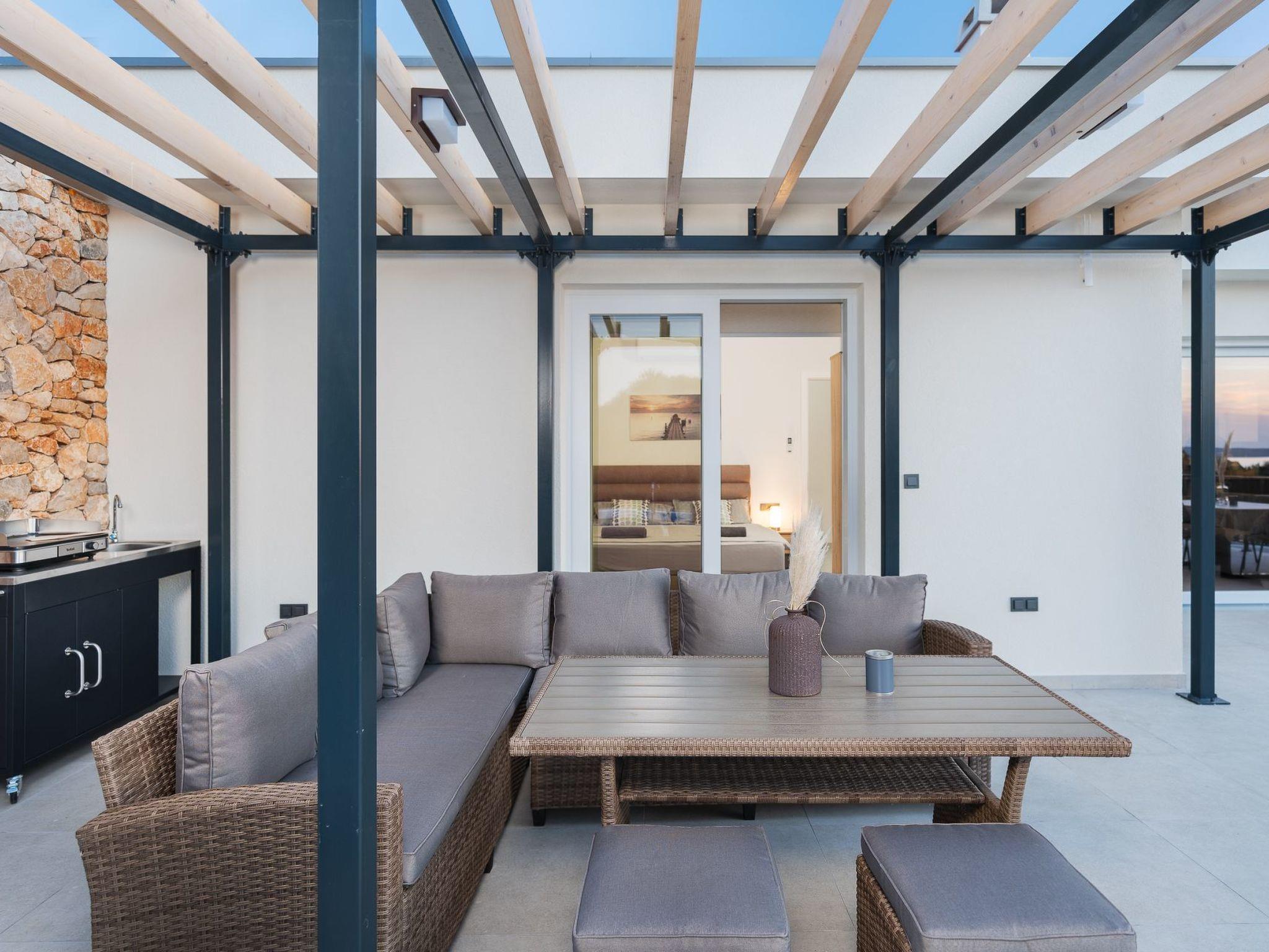 Are you looking for heavenly peace and relaxation close to nature with a sea view? Then the 4-star eco-friendly Croatia Heaven villa at the most beautiful end of Pag welcomes you! Up to 7 people will find the perfect base for an individual holiday, workation or retreat on 100 m2. The non-smoking villa is new and built to German standards. Everything is at ground level, disabled-friendly and modernly furnished. Relax on the large terrace or in the pool and enjoy cosy barbecue evenings with incredible sunsets.