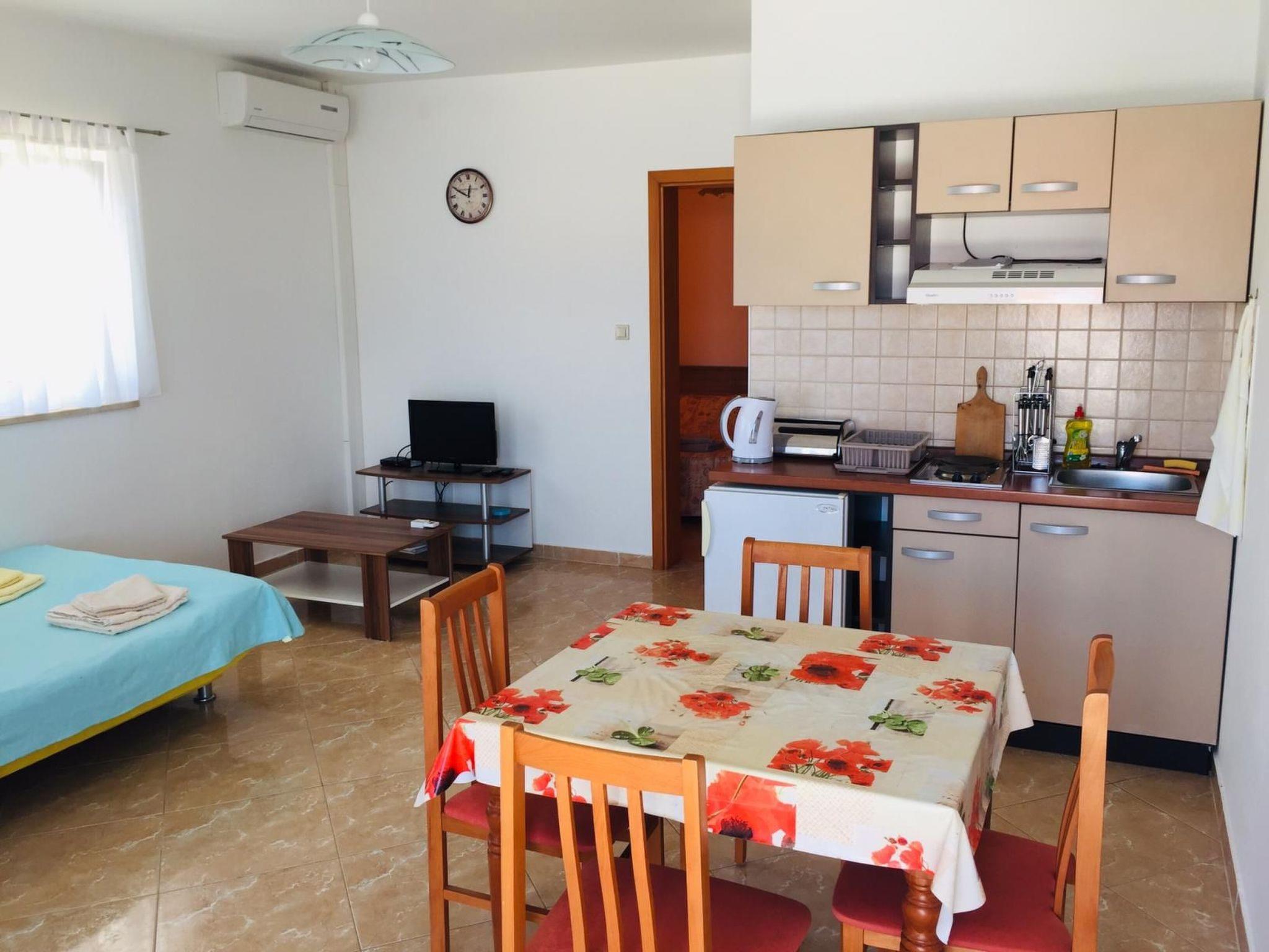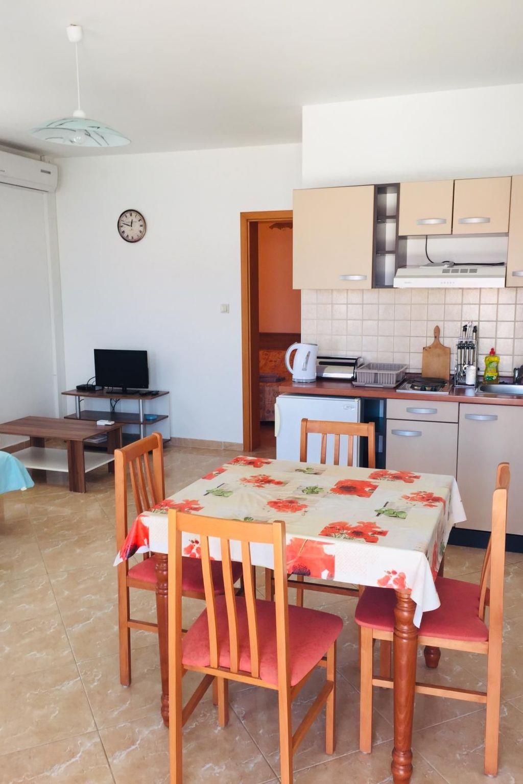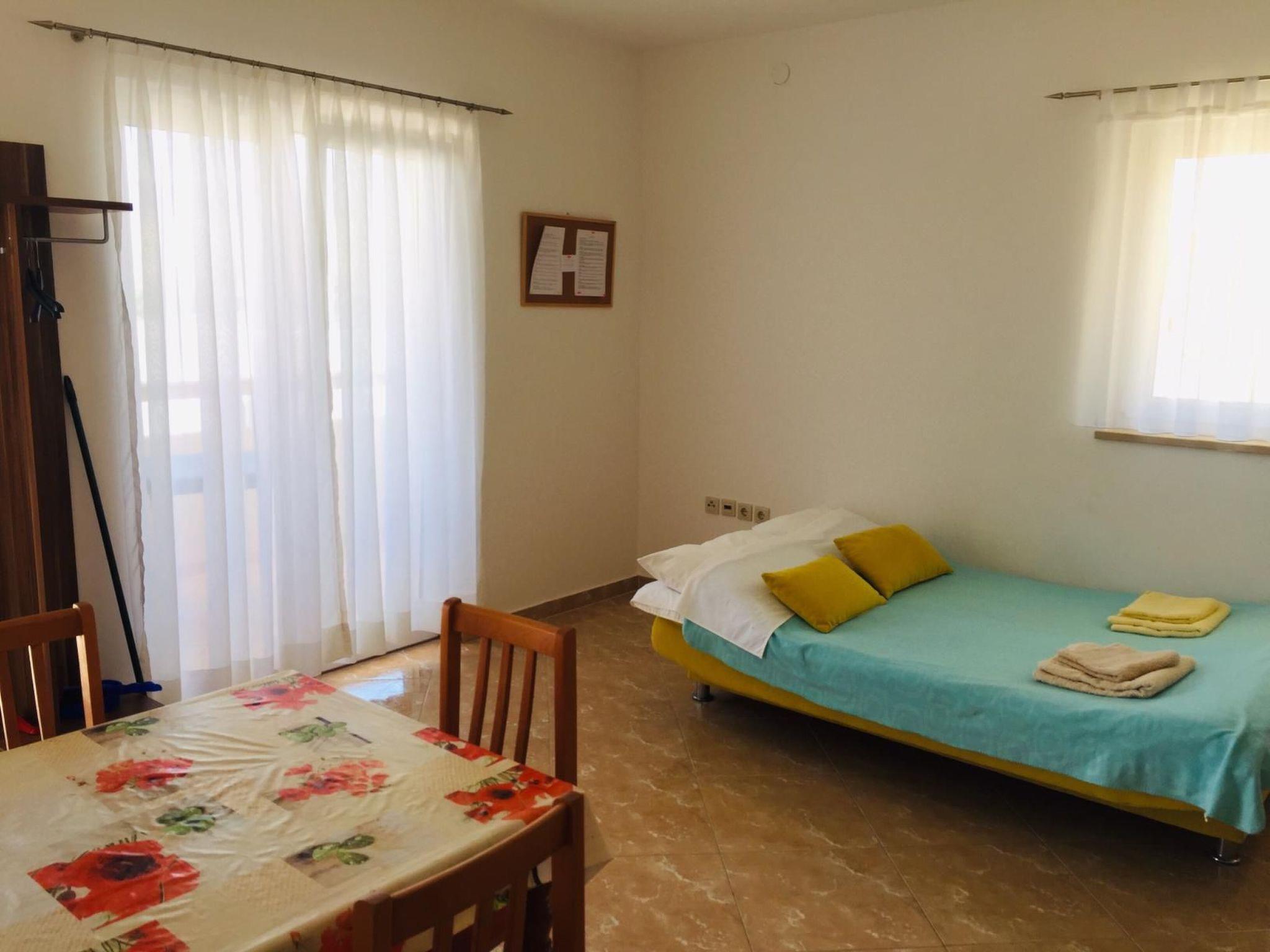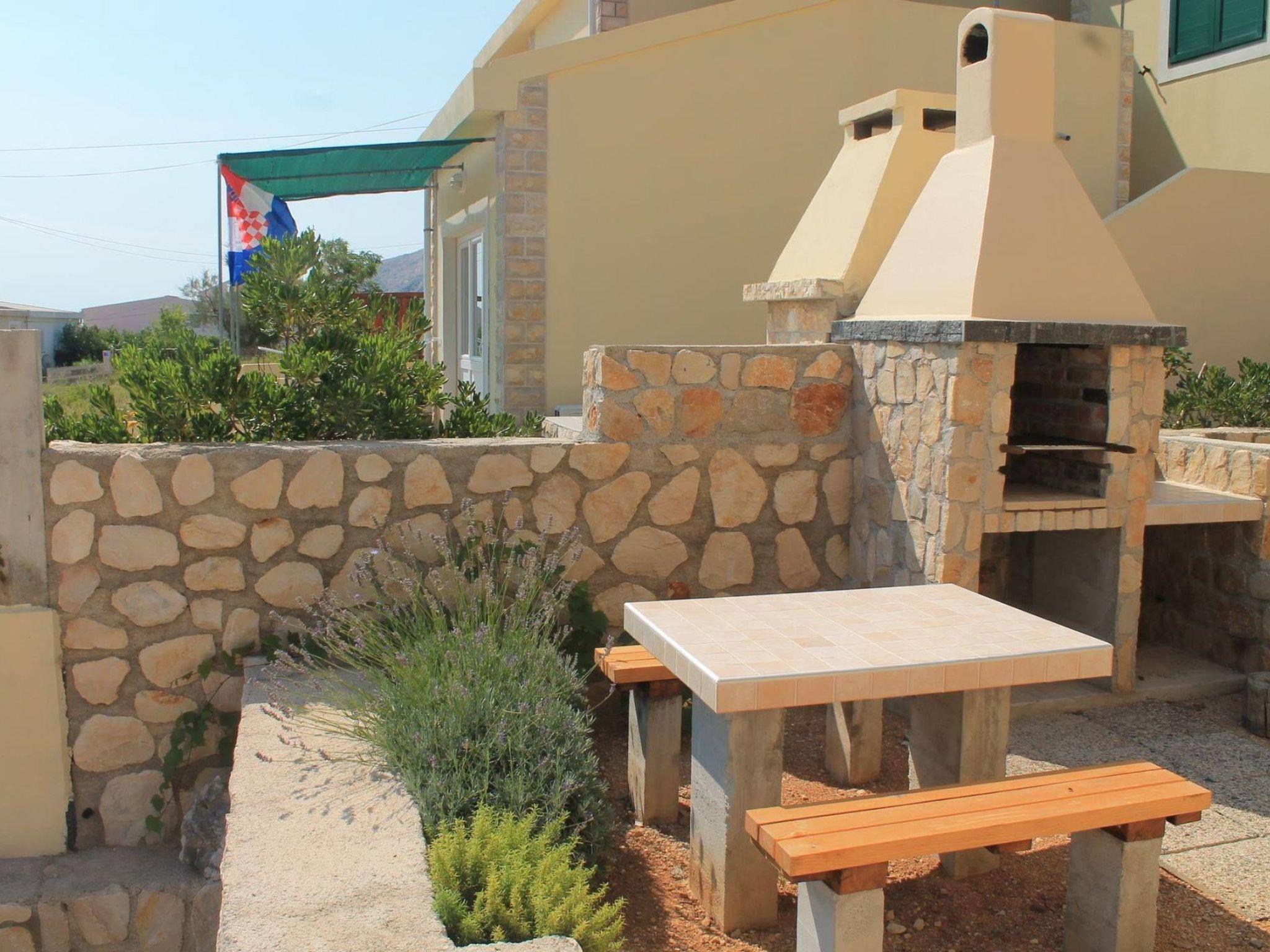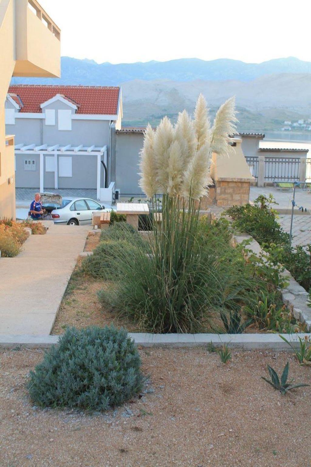 The two holiday flats are on the ground floor of a detached house, while the owner lives on the first floor. The house is located around 300 metres from the beach and the sea on the island of Pag, around four kilometres from the town centre of the same name. It is situated in a quiet residential area of the town, ideal for families and couples looking for peace and quiet.