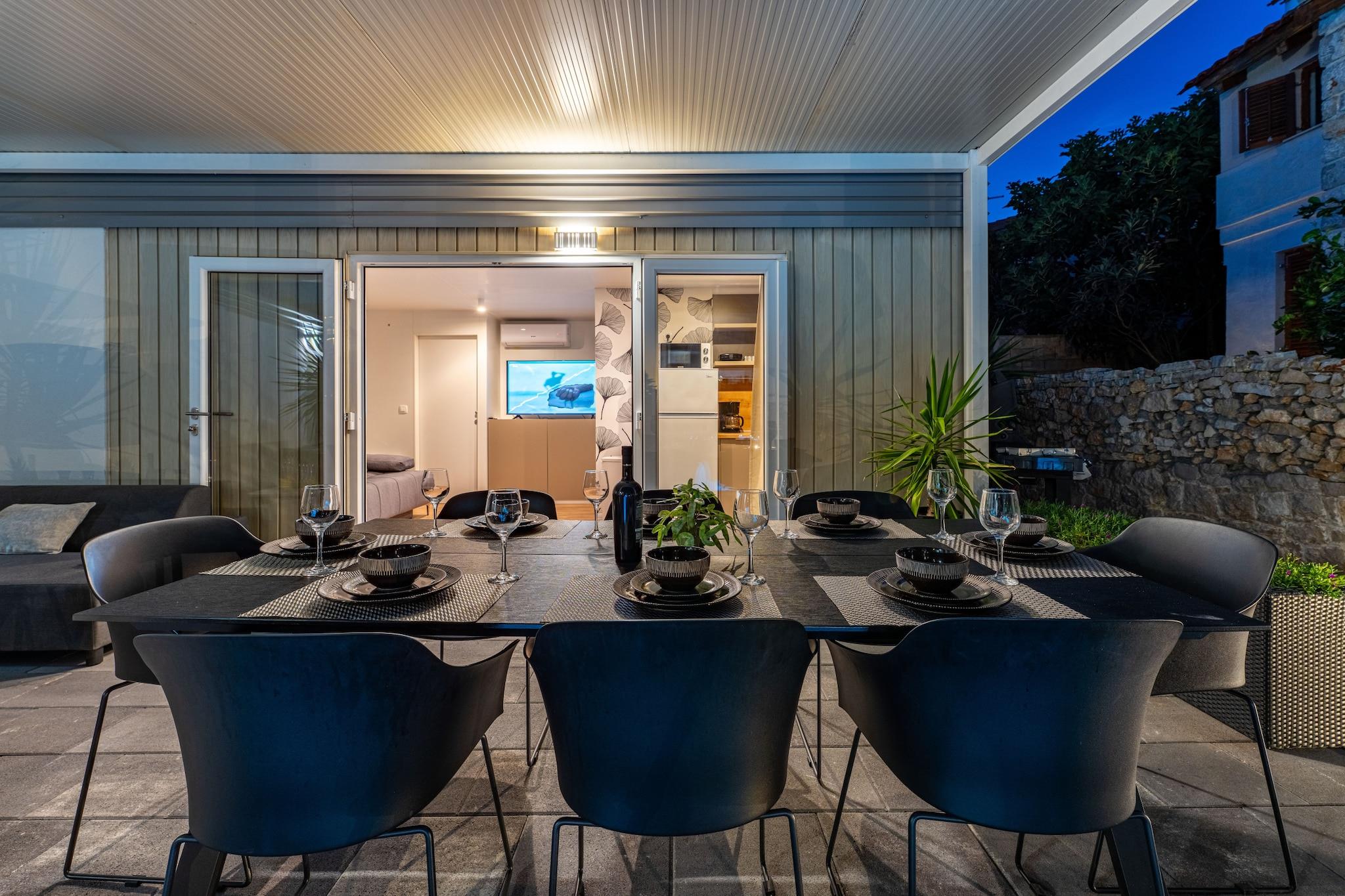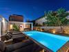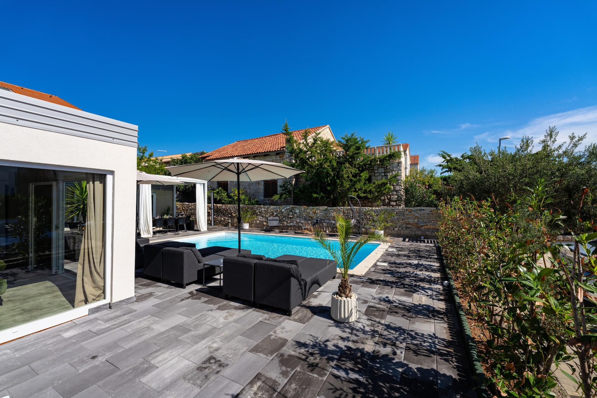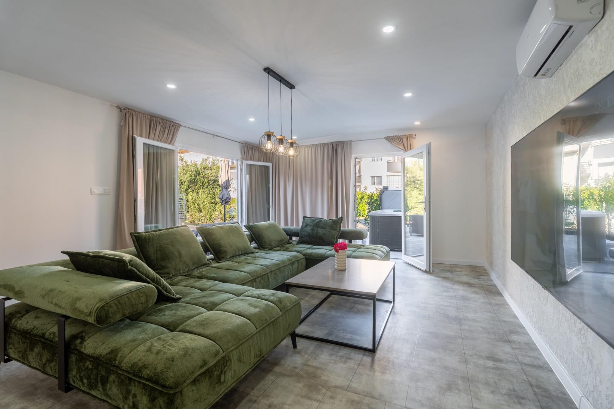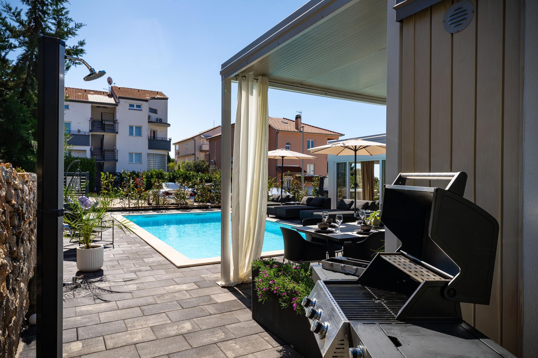 Dette moderne kystnære fristed ligger gemt væk i den charmerende kystby Pakoštane og tilbyder en perfekt blanding af komfort, stil og ro. Det er designet til op til seks gæster og har tre smukt indrettede soveværelser, to elegante badeværelser og et ekstra gæstetoilet. Den åbne stue går naturligt over i et fuldt udstyret køkken og en lys spiseplads, hvilket skaber en indbydende atmosfære til familiesammenkomster eller aftener med venner. Træd udenfor og slap af ved den private swimmingpool eller nyd det afslappende jacuzzi, omgivet af en solrig terrasse og middelhavsgrønt. Udendørsområdet er skabt til langsomme morgener og gyldne solnedgange – fra liggestole og parasoller ved poolen til en overdækket spiseplads med grill til måltider under åben himmel under stjernerne. Gennemtænkte detaljer i hele huset, herunder aircondition, højhastigheds-WiFi, vaskemaskine, tørretumbler og myggenet for vinduerne, sikrer, at dit ophold bliver så behageligt som det er ubekymret. Denne bolig har et roligt og friskt miljø – der er strengt forbud mod rygning, og kæledyr er ikke tilladt, hvilket sikrer, at rummet forbliver fredfyldt og uberørt for alle gæster. Kun ti minutters gang tager dig til den nærmeste sandstrand, mens caféer, lokale markeder og restauranter alle ligger tæt på. For naturelskere ligger den betagende Vrana Lake Nature Park og charmerende kystbyer kun en kort køretur væk. Uanset om du søger fredelig afslapning ved poolen eller en stilfuld base for at udforske Dalmatiens skønhed, lover denne villa et uforglemmeligt ophold fyldt med solskin, ro og det blide rytme af livet ved kysten.