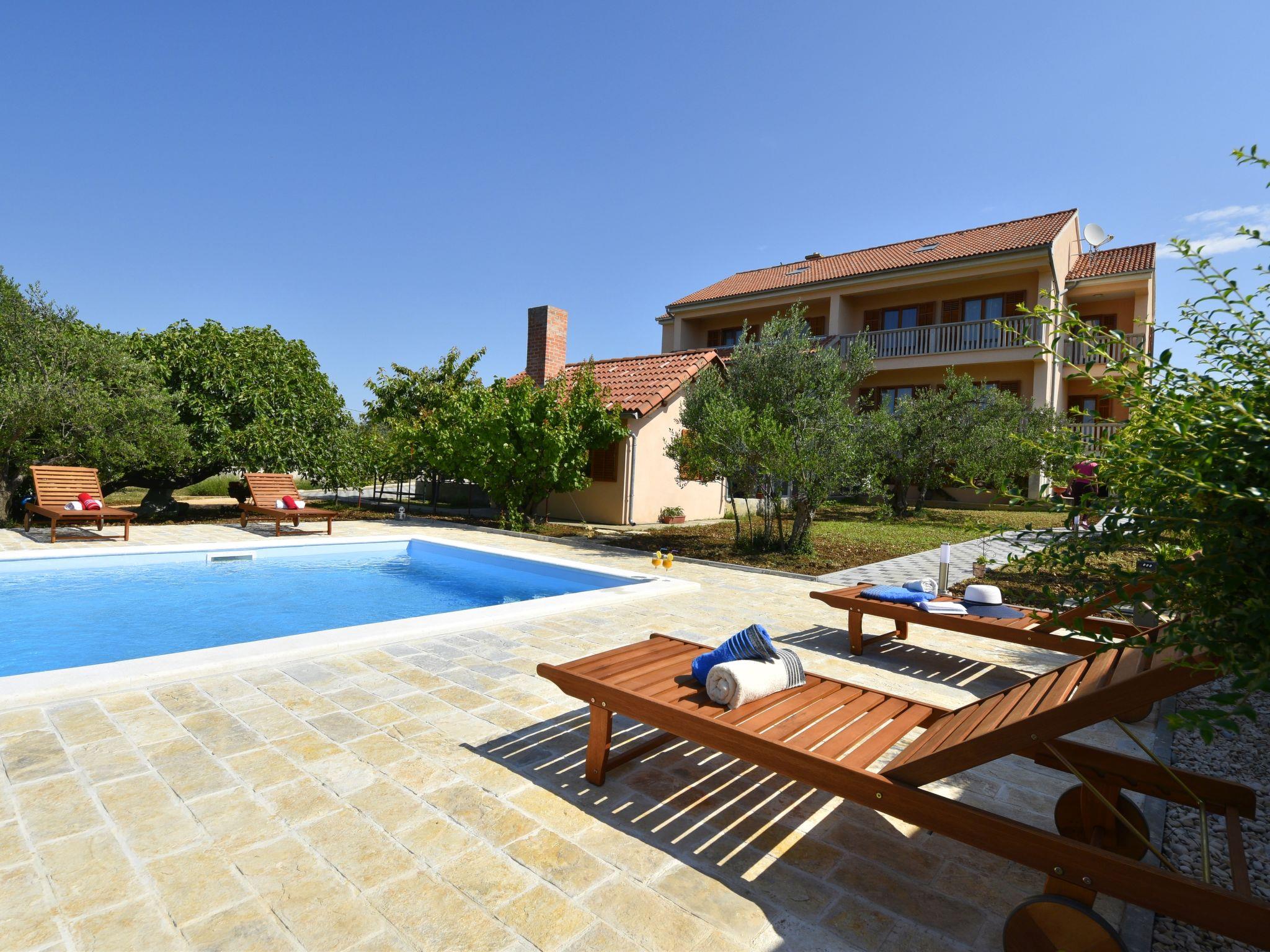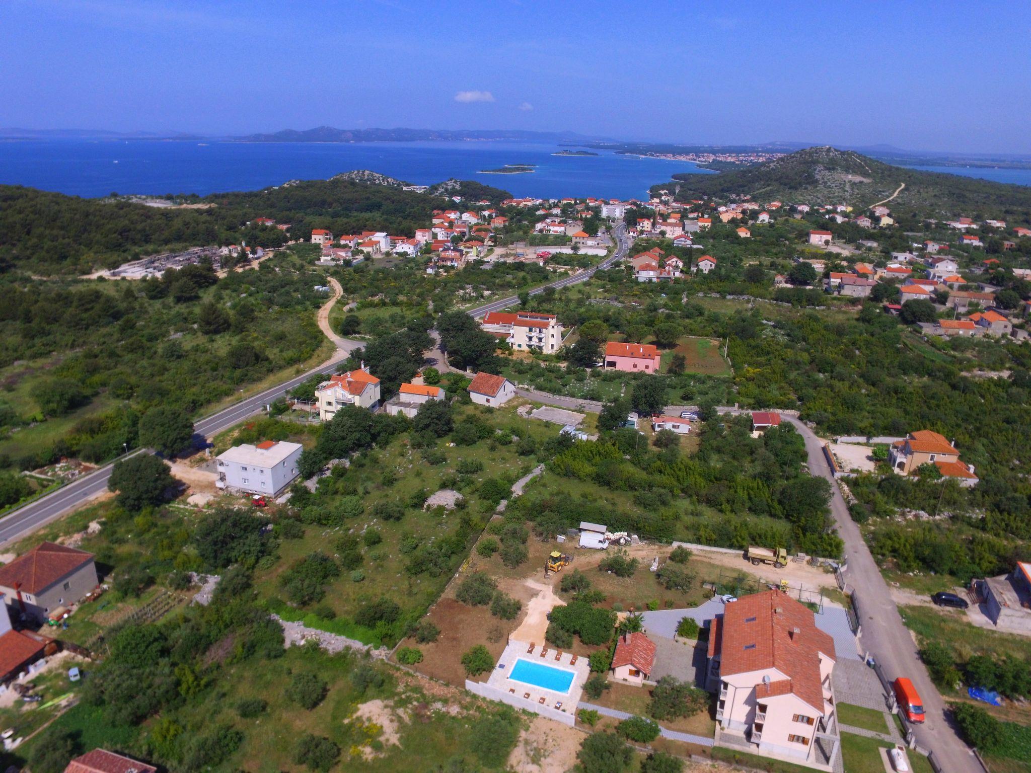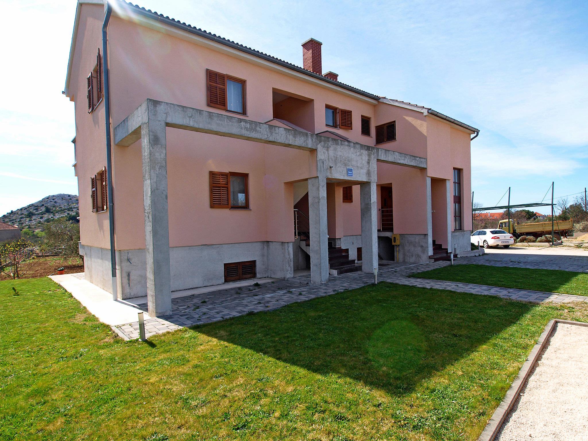 Drage 4 km from Pakoštane: Apartment house "Jasminka". In a quiet, sunny position, 650 m from the sea, 1 km from the beach. For shared use: property 2'900 m2 (fenced), swimming pool angular heated (8 x 4 m, depth 150 cm, seasonal availability: 04.Apr. - 17.Oct.) with internal staircase. Outdoor shower, terrace (45 m2), garden furniture, barbecue. In the house: internet access, washing machine (extra) (for shared use). Parking at the house on the premises. Shop 250 m, restaurant 200 m, bus stop 500 m, pebble beach 1.5 km, rocky beach 1 km, concrete beach 1 km. Cycle lane 800 m. Well-known lakes can easily be reached: Vransko jezero 1.7 km. Swimming pool heated (extra). It is necessary to announce 7 days in advance if the pool heating is required.