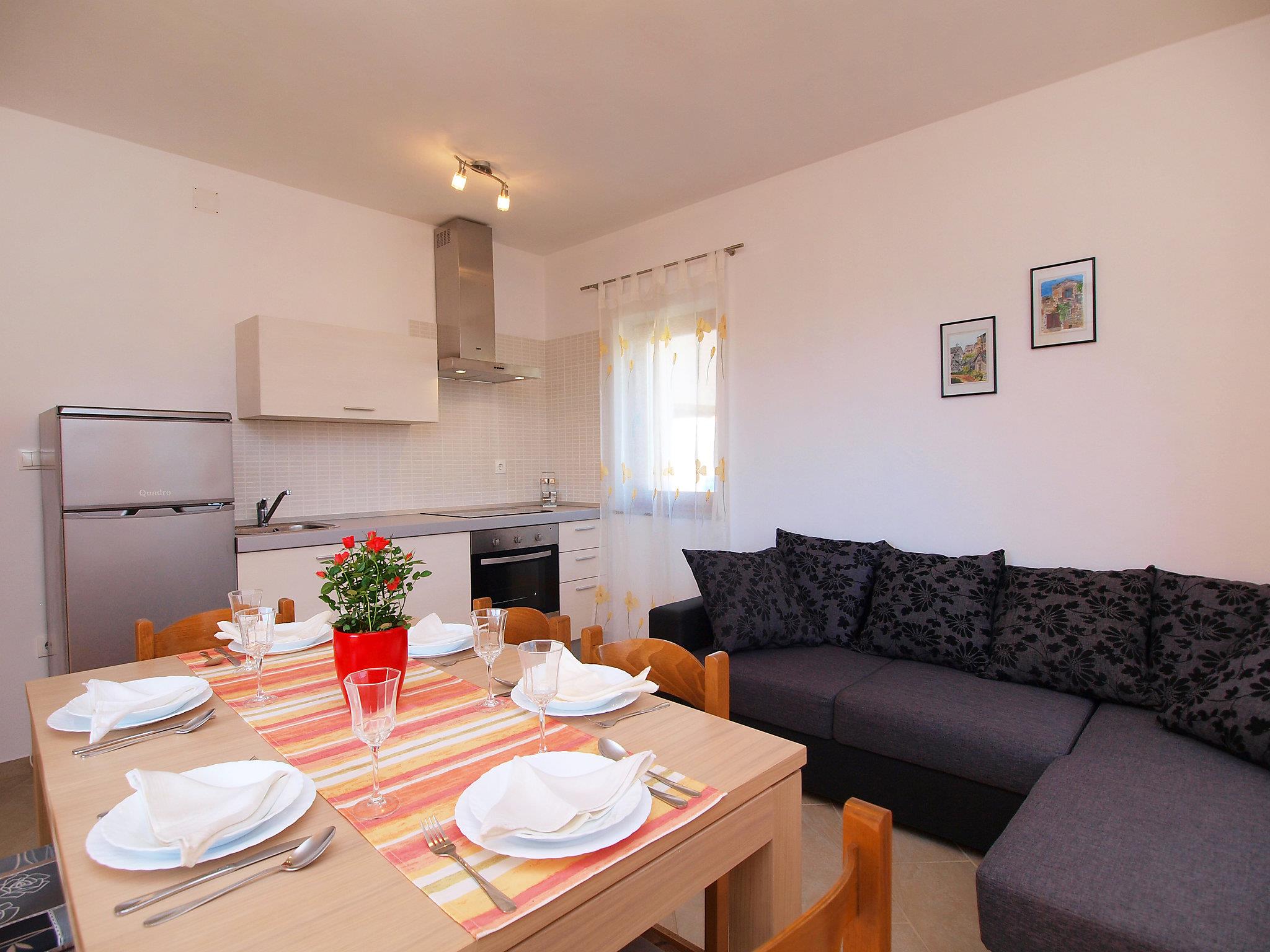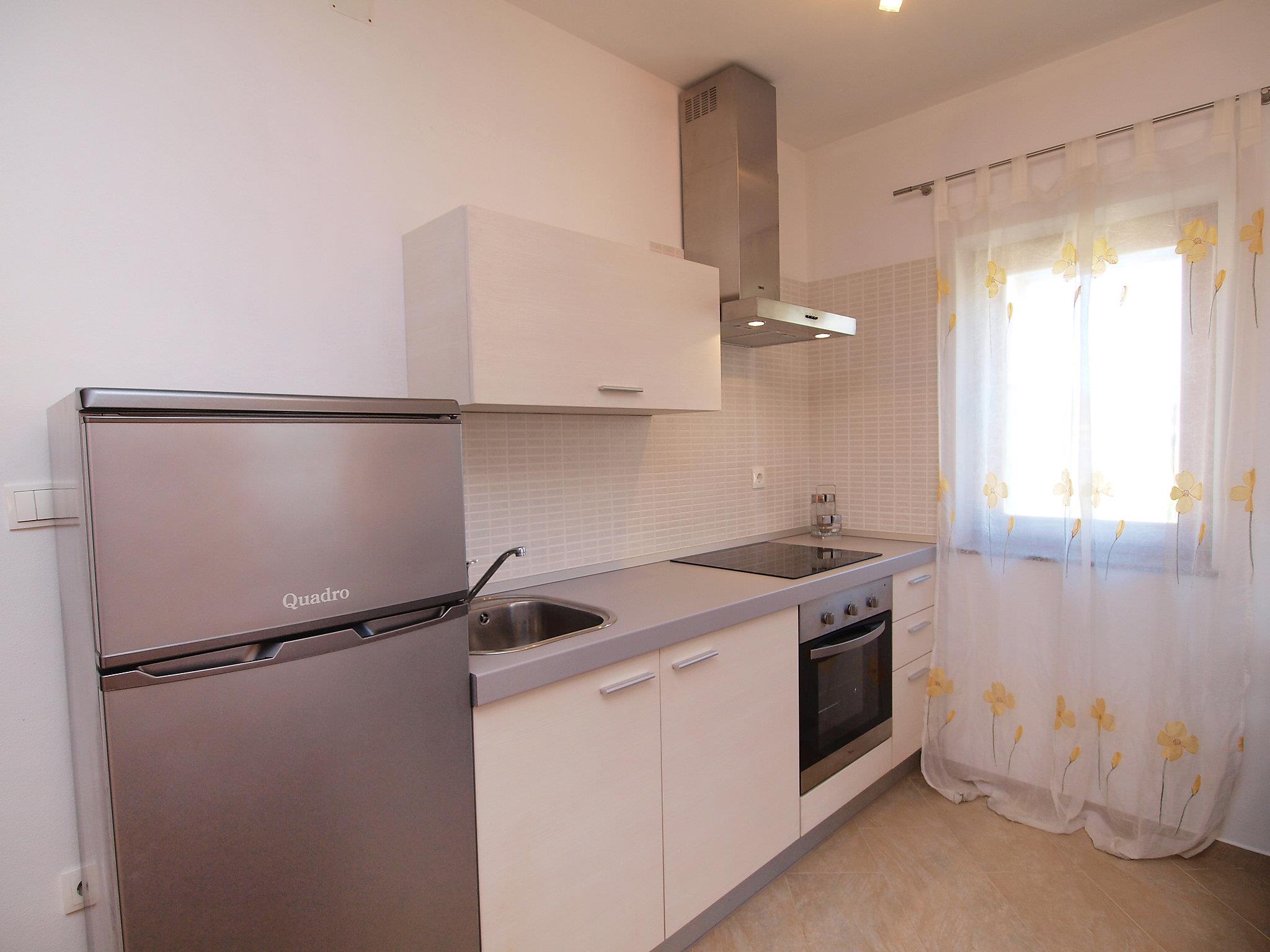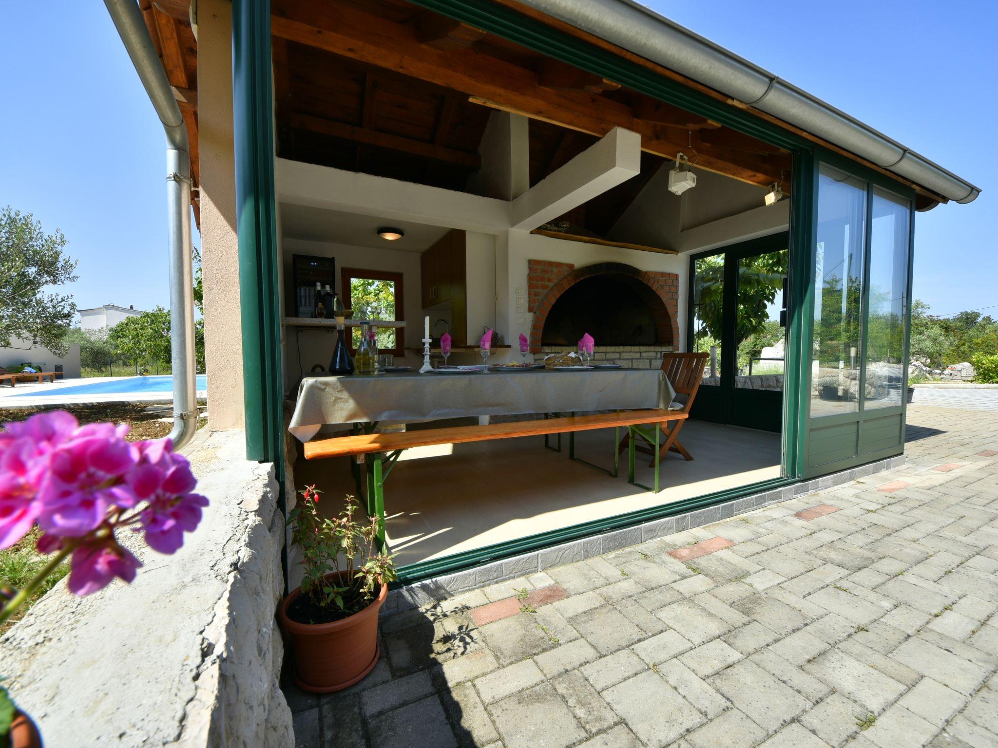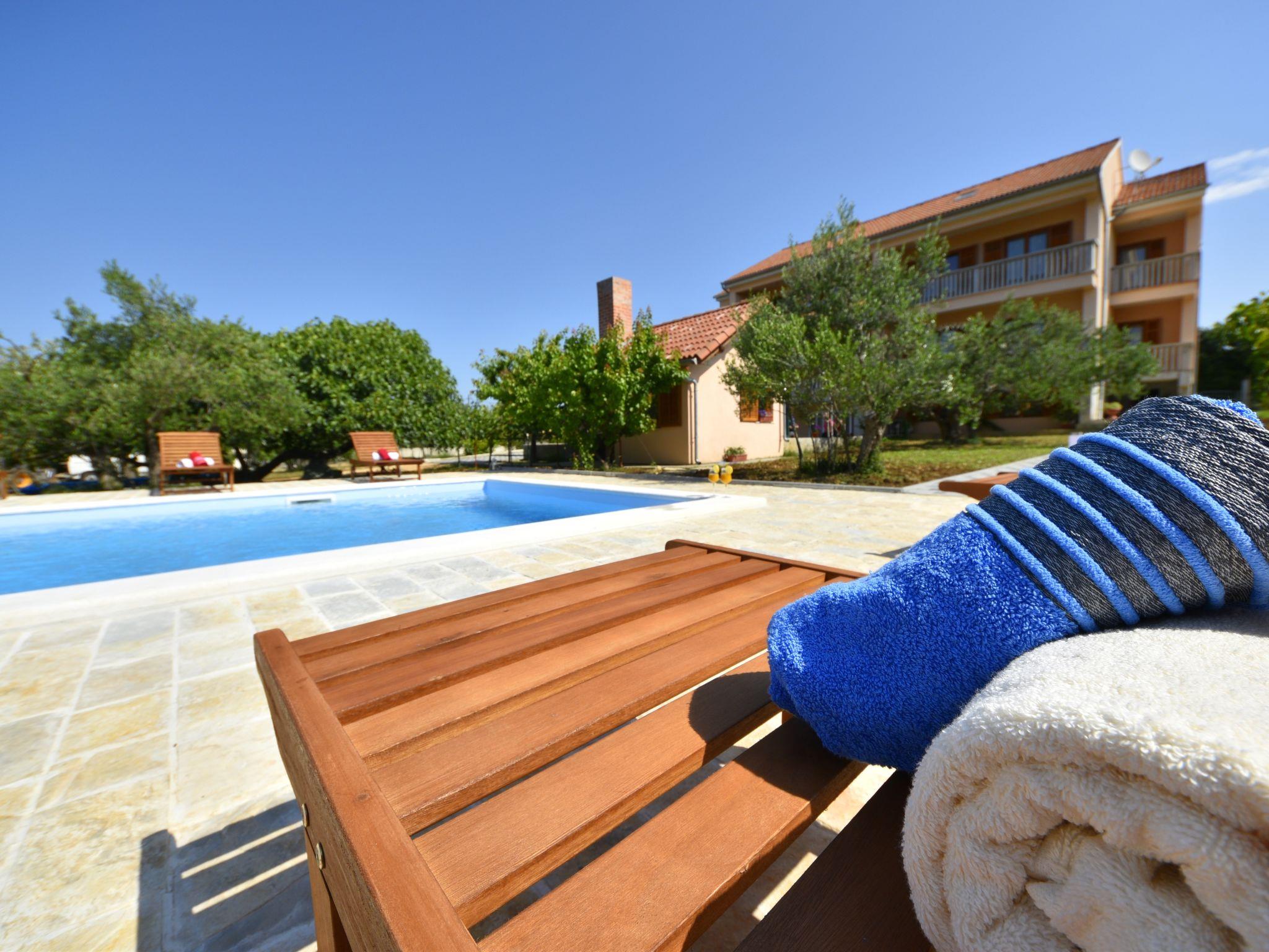 Drage 4 km from Pakoštane: Apartment house "Jasminka". In a quiet, sunny position, 650 m from the sea, 1 km from the beach. For shared use: property 2'900 m2 (fenced), swimming pool angular heated (8 x 4 m, depth 150 cm, seasonal availability: 04.Apr. - 17.Oct.) with internal staircase. Outdoor shower, terrace (45 m2), garden furniture, barbecue. In the house: internet access, washing machine (extra) (for shared use). Parking at the house on the premises. Shop 250 m, restaurant 200 m, bus stop 500 m, pebble beach 1.5 km, rocky beach 1 km, concrete beach 1 km. Cycle lane 800 m. Well-known lakes can easily be reached: Vransko jezero 1.7 km. Swimming pool heated (extra). It is necessary to announce 7 days in advance if the pool heating is required.