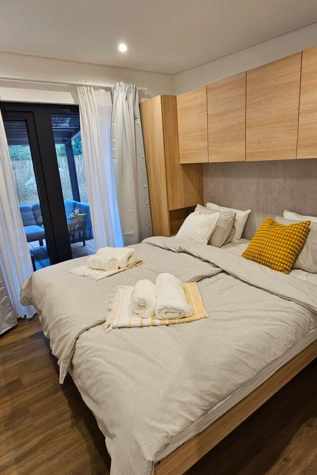 Inside, you'll find a thoughtfully arranged living space that puts comfort and functionality at the forefront. The home boasts two well-appointed bedrooms and two bathrooms, ensuring privacy and convenience for all guests. The heart of this mobile home is its fully equipped kitchen featuring an induction hob, capsule coffee machine, dishwasher, and electric kettle--all you need for easy meal prep and dining. Air conditioning throughout ensures that you can retreat into a cool, comfortable haven after a day under the sun. Additionally, a washing machine is provided for your sole use, making it easy to keep beachwear and towels fresh during your stay.