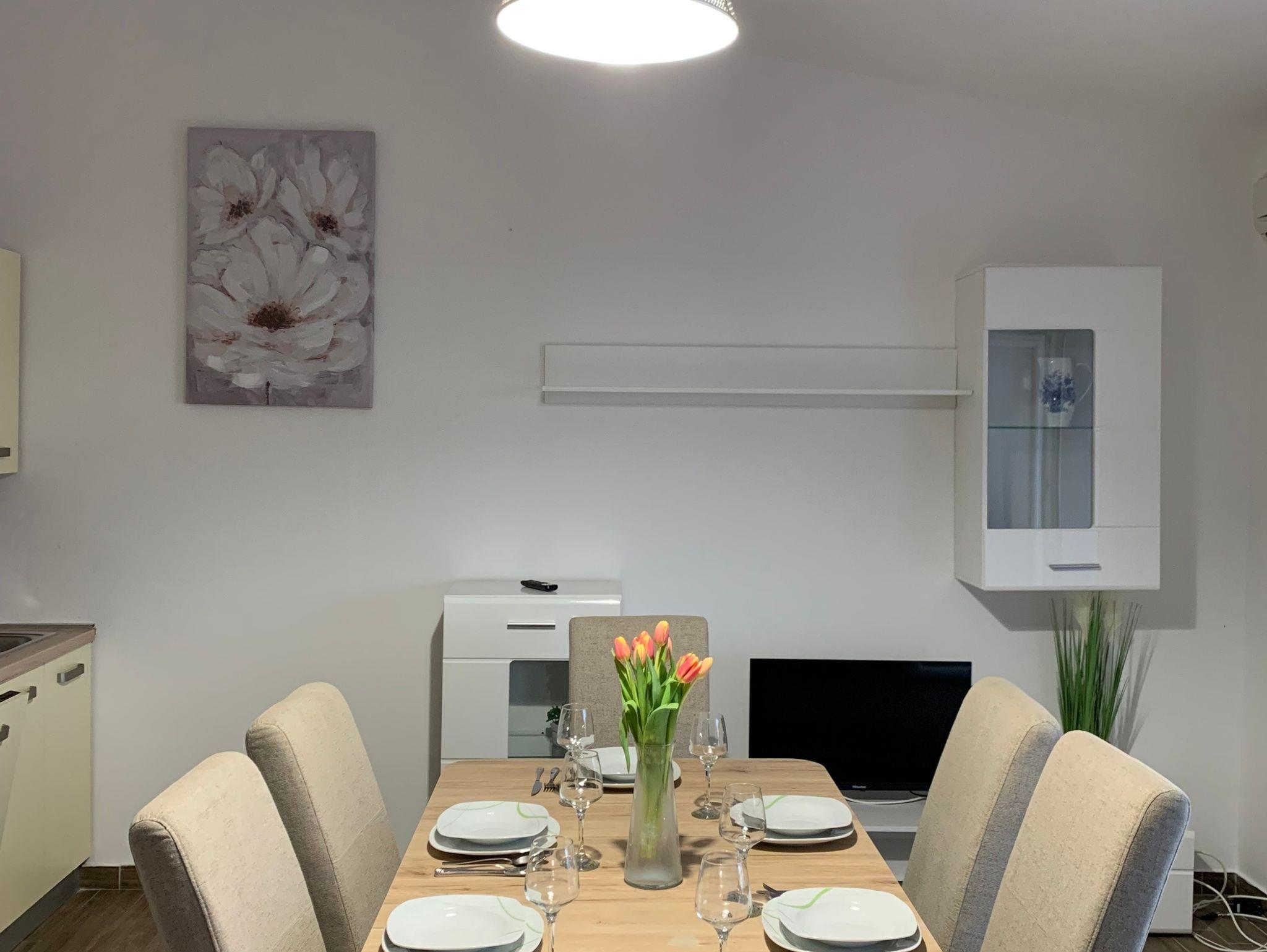 Ferienwohnung bietet Platz für 5 Gäste. Die Betten sind in Schlafzimmern, die es 2 gibt, und in Wohnzimmer, innerhalb einer Gesamtfläche von 44m2, angeordnet. Die Gäste haben eine eigene Terrasse zur Verfügung, auf der sie in warmen Sommernächten genießen können. Das Apartment bietet Meerblick. Es ist erlaubt, Speisen auf dem Gemeinschafts-Grill vorzubereiten. IM PREIS INBEGRIFFEN: Kurtaxe, Endreinigung, Klimatisierung, Parkplatz, Internet, Kinderbett, Bügeleisen, Föhn. UNVERBINDLICHE ZUSÄTZLICHE KOSTEN: Boot (80,00 € pro Nacht). Die Verfügbarkeit zusätzlicher Dienstleistungen in Ihrem reservierten Termin und die Preise derselben (falls nicht aufgeführt) müssen im Voraus überprüft werden. Zusätzliche Dienstleistungen die in der Zahlungsaufforderung nicht aufgeführt sind werden direkt beim Vermieter bezahlt, angenommen der Gast nutzt auch diese. Ermäßigung auf den Grundpreis: Gratistag 28=25 (bei einem Aufenthalt von 28 oder mehr Tagen erhalten Sie 3 kostenlose Tage für den Aufenthalt bis 31.12.26).