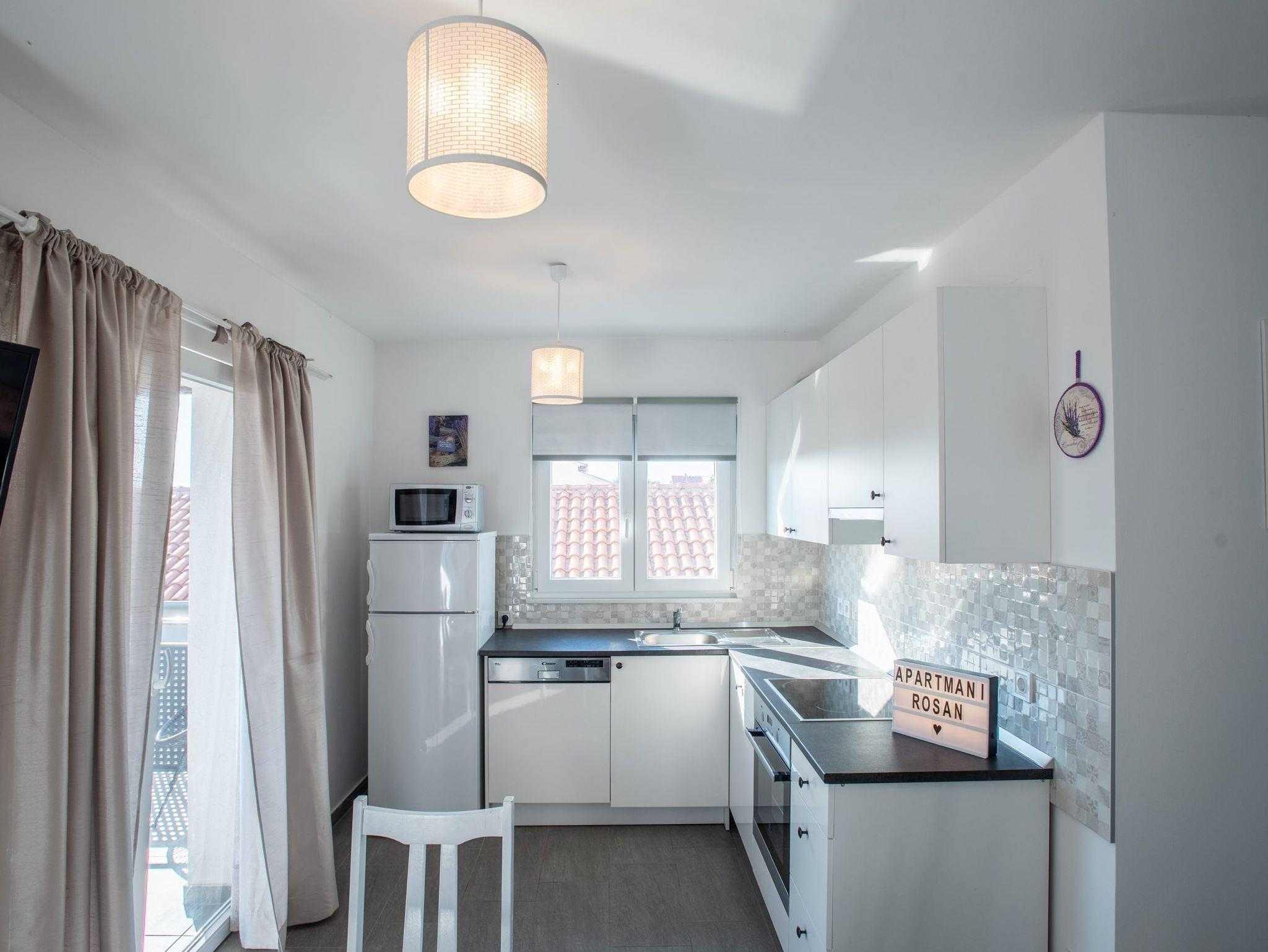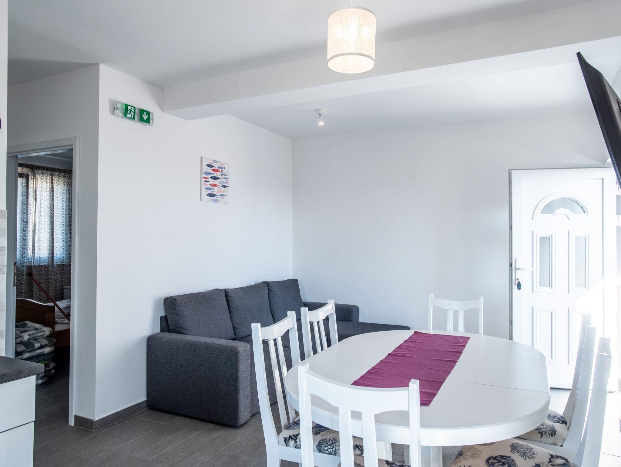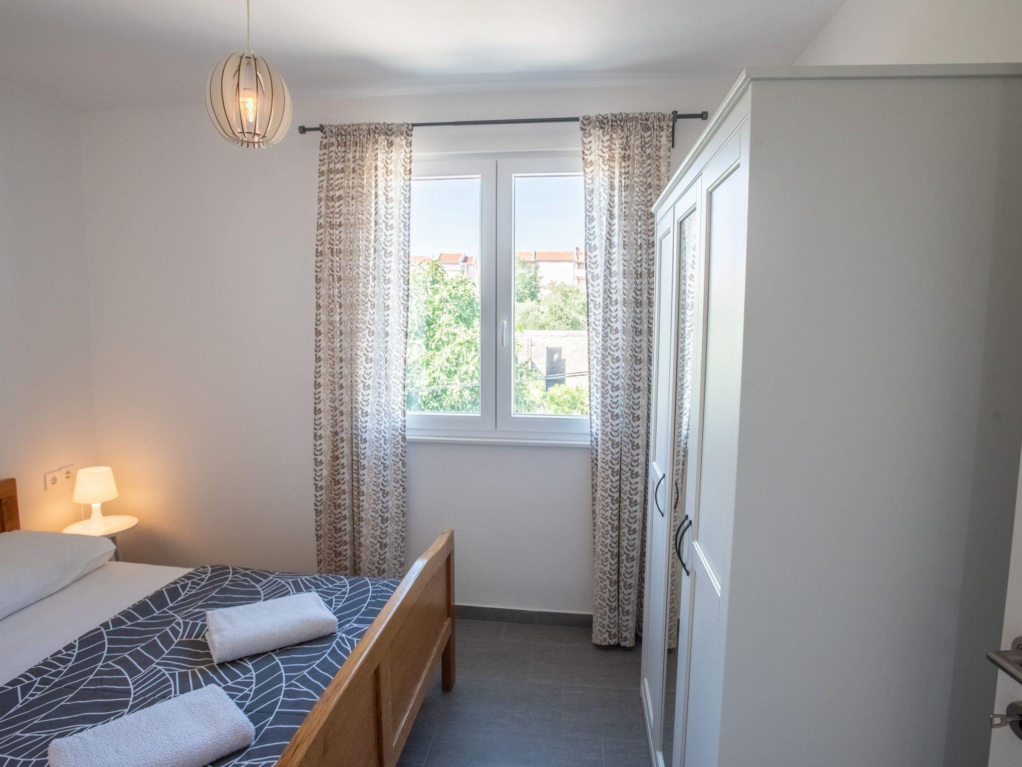 Ferienwohnung bietet Platz für 6 Gäste. Die Betten sind in Schlafzimmern, die es 2 gibt, und in Wohnzimmer, innerhalb einer Gesamtfläche von 43m2, angeordnet. Die Gäste haben eine eigene Terrasse zur Verfügung, auf der sie in warmen Sommernächten genießen können. Das Apartment bietet Meerblick. Es ist erlaubt, Speisen auf dem Gemeinschafts-Grill vorzubereiten. IM PREIS INBEGRIFFEN: Kurtaxe, Endreinigung, Klimatisierung, Parkplatz, Internet, Kinderbett, Föhn. VERBINDLICHE ZUSÄTZLICHE KOSTEN: Aufzahlung für Kurzaufenthalte (prozentualer Zuschlag pro Nächtigungsanzahl: 30% - 1, 20% - 2, 10% - 3). Die Verfügbarkeit zusätzlicher Dienstleistungen in Ihrem reservierten Termin und die Preise derselben (falls nicht aufgeführt) müssen im Voraus überprüft werden. Zusätzliche Dienstleistungen die in der Zahlungsaufforderung nicht aufgeführt sind werden direkt beim Vermieter bezahlt, angenommen der Gast nutzt auch diese.