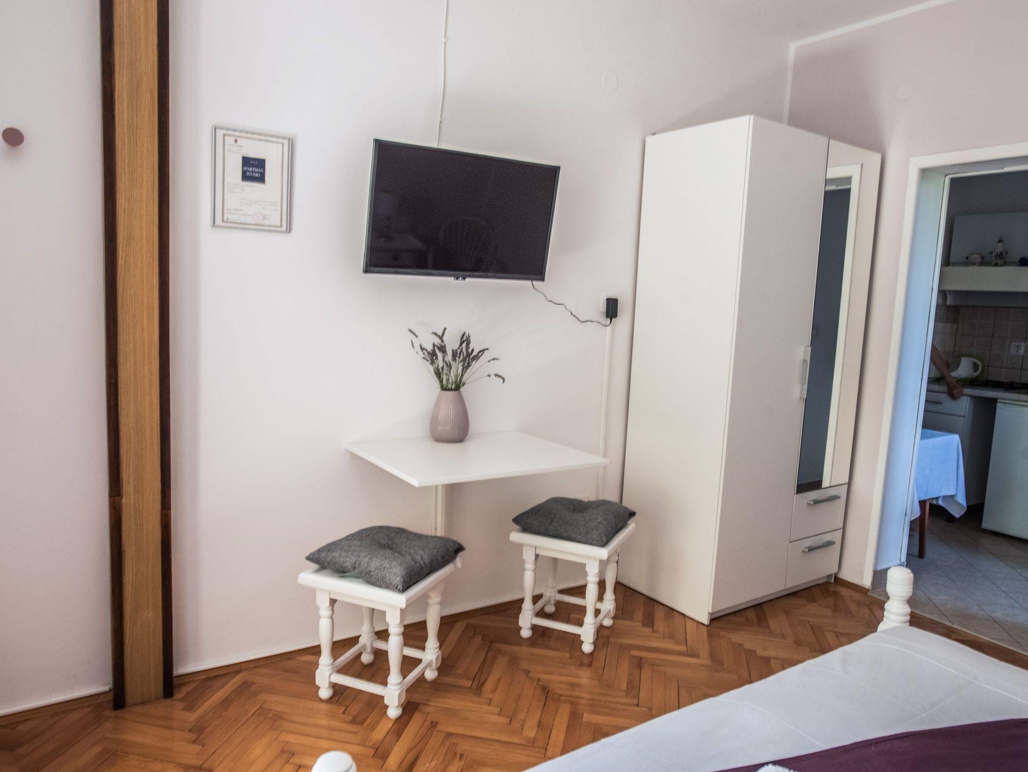 Studio bietet Platz für 2 Gäste. Die Betten sind in Schlafzimmern, die es 1 gibt, innerhalb einer Gesamtfläche von 25m2, angeordnet. Die Gäste haben einen eigenen Balkon zur Verfügung, auf der sie in warmen Sommernächten genießen können. Es ist erlaubt, Speisen auf dem Gemeinschafts-Grill vorzubereiten. IM PREIS INBEGRIFFEN: Kurtaxe, Endreinigung, Klimatisierung, Parkplatz, Internet, Kinderbett. VERBINDLICHE ZUSÄTZLICHE KOSTEN: Aufzahlung für Kurzaufenthalte (prozentualer Zuschlag pro Nächtigungsanzahl: 30% - 1, 20% - 2, 10% - 3). Die Verfügbarkeit zusätzlicher Dienstleistungen in Ihrem reservierten Termin und die Preise derselben (falls nicht aufgeführt) müssen im Voraus überprüft werden. Zusätzliche Dienstleistungen die in der Zahlungsaufforderung nicht aufgeführt sind werden direkt beim Vermieter bezahlt, angenommen der Gast nutzt auch diese.