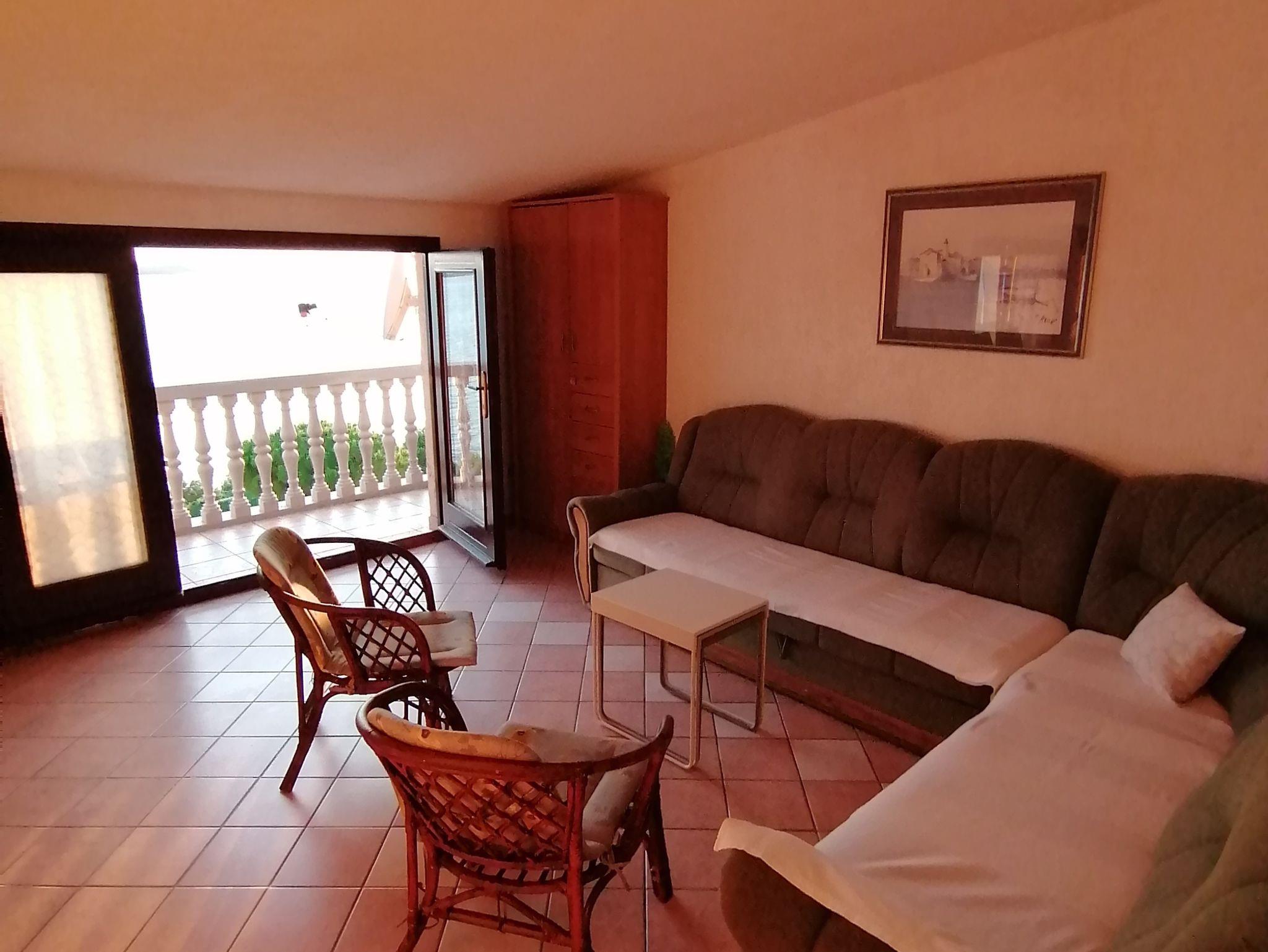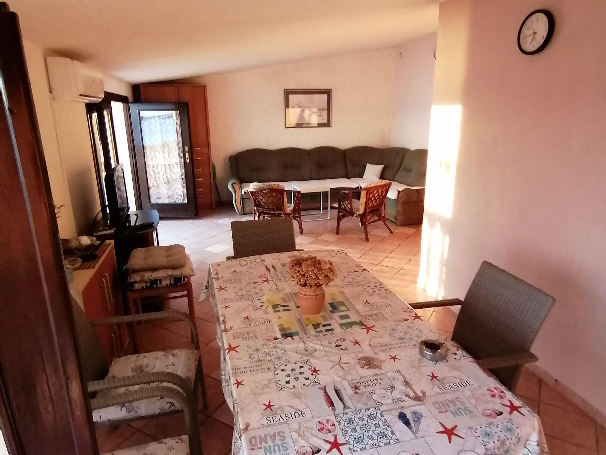 Ferienwohnung bietet Platz für 6 Gäste. Die Betten sind in Schlafzimmern, die es 2 gibt, und in Wohnzimmer, innerhalb einer Gesamtfläche von 62m2, angeordnet. Die Gäste haben einen eigenen Balkon zur Verfügung, auf der sie in warmen Sommernächten genießen können. Das Apartment bietet Meerblick. Es ist erlaubt, Speisen auf dem Gemeinschafts-Grill vorzubereiten. IM PREIS INBEGRIFFEN: Kurtaxe, Endreinigung, Klimatisierung, Parkplatz, Internet. VERBINDLICHE ZUSÄTZLICHE KOSTEN: Aufzahlung für Kurzaufenthalte (prozentualer Zuschlag pro Nächtigungsanzahl: 30% - 1, 20% - 2, 10% - 3). Die Verfügbarkeit zusätzlicher Dienstleistungen in Ihrem reservierten Termin und die Preise derselben (falls nicht aufgeführt) müssen im Voraus überprüft werden. Zusätzliche Dienstleistungen die in der Zahlungsaufforderung nicht aufgeführt sind werden direkt beim Vermieter bezahlt, angenommen der Gast nutzt auch diese.