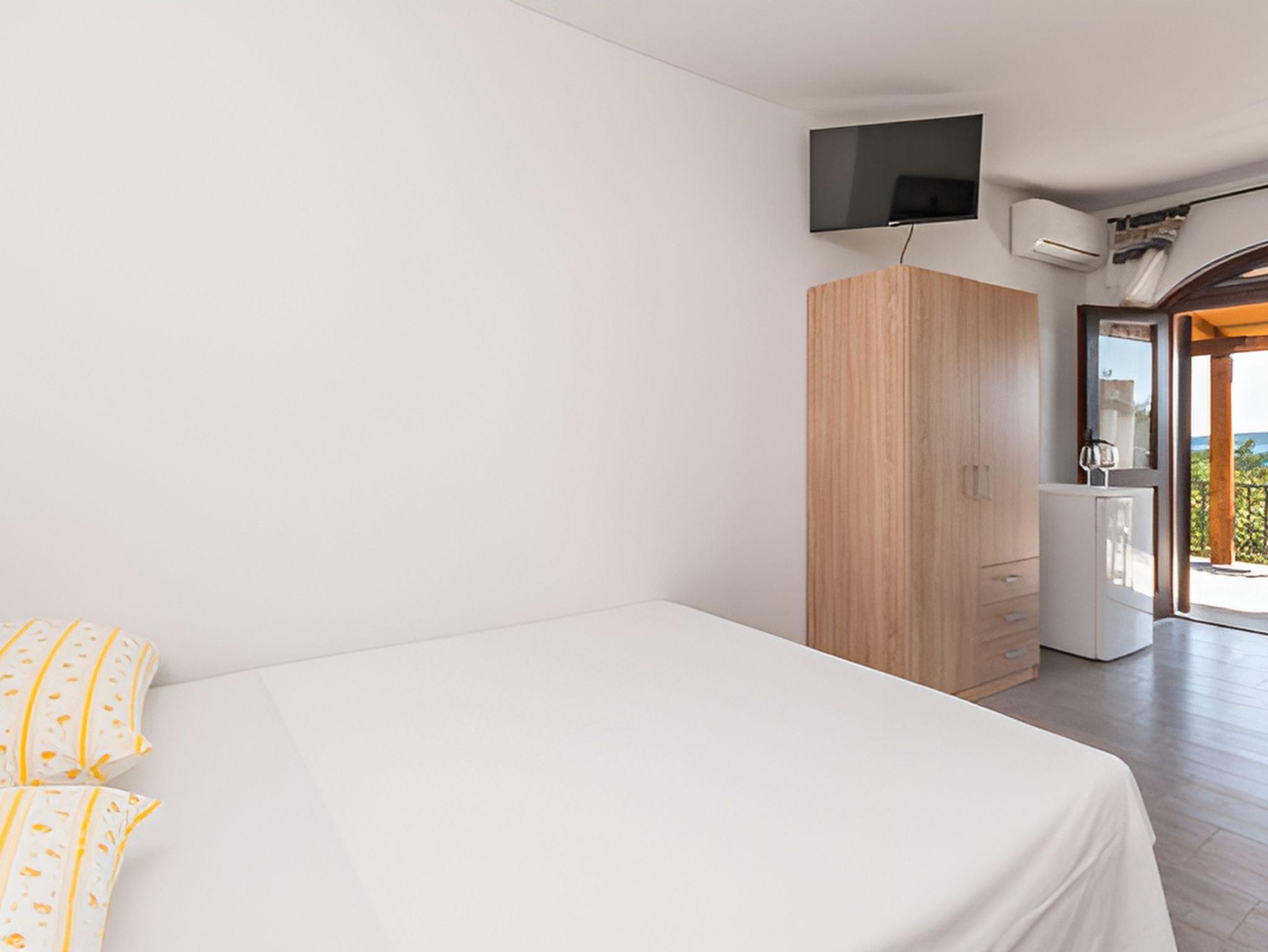 Studio bietet Platz für 3 Gäste. Die Betten sind in Schlafzimmern, die es 1 gibt, innerhalb einer Gesamtfläche von 21m2, angeordnet. Die Gäste haben eine eigene Terrasse zur Verfügung, auf der sie in warmen Sommernächten genießen können. Das Studio-Apartment bietet Meerblick. Es ist erlaubt, Speisen auf dem Gemeinschafts-Grill vorzubereiten. IM PREIS INBEGRIFFEN: Kurtaxe, Endreinigung, Klimatisierung, Parkplatz, Internet, Kinderbett, Bügeleisen, Föhn. UNVERBINDLICHE ZUSÄTZLICHE KOSTEN: Boot (80,00 € pro Nacht). Die Verfügbarkeit zusätzlicher Dienstleistungen in Ihrem reservierten Termin und die Preise derselben (falls nicht aufgeführt) müssen im Voraus überprüft werden. Zusätzliche Dienstleistungen die in der Zahlungsaufforderung nicht aufgeführt sind werden direkt beim Vermieter bezahlt, angenommen der Gast nutzt auch diese. Ermäßigung auf den Grundpreis: Gratistag 28=25 (bei einem Aufenthalt von 28 oder mehr Tagen erhalten Sie 3 kostenlose Tage für den Aufenthalt bis 31.12.26).