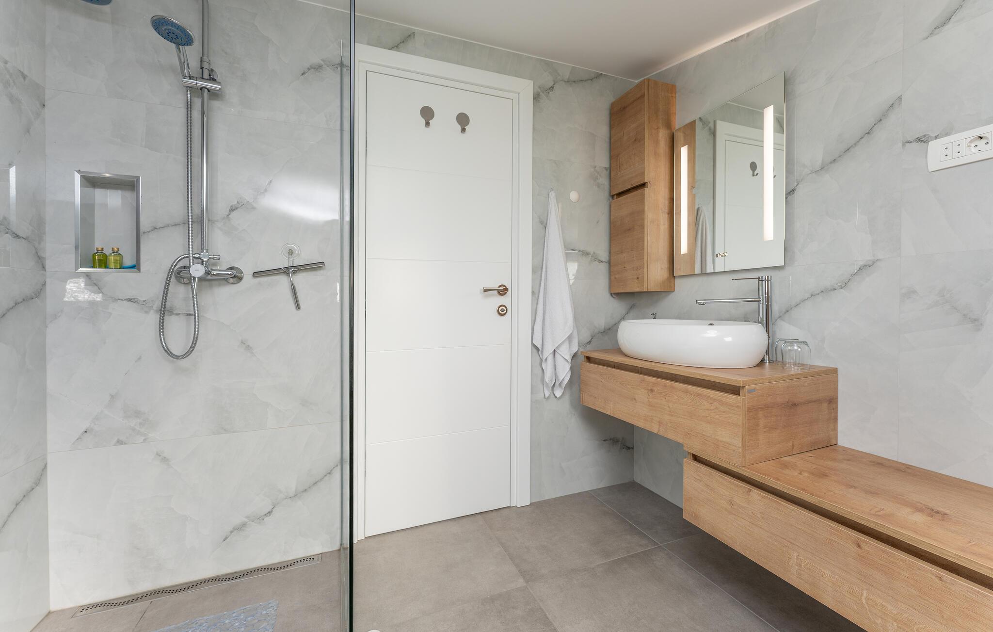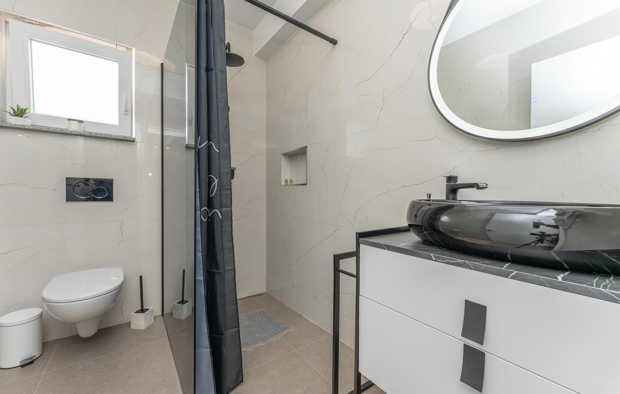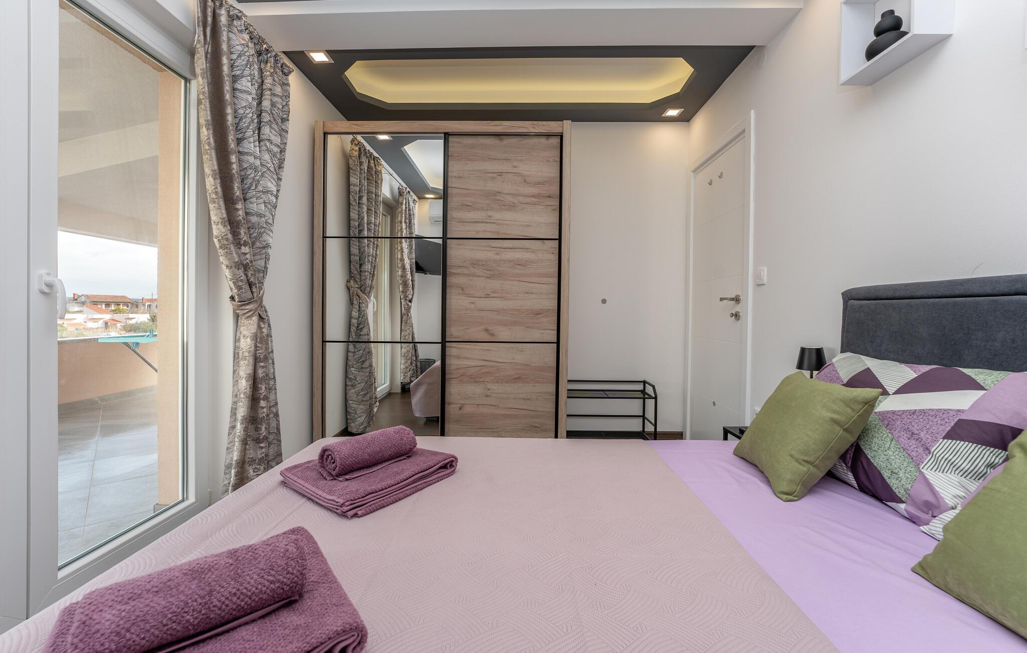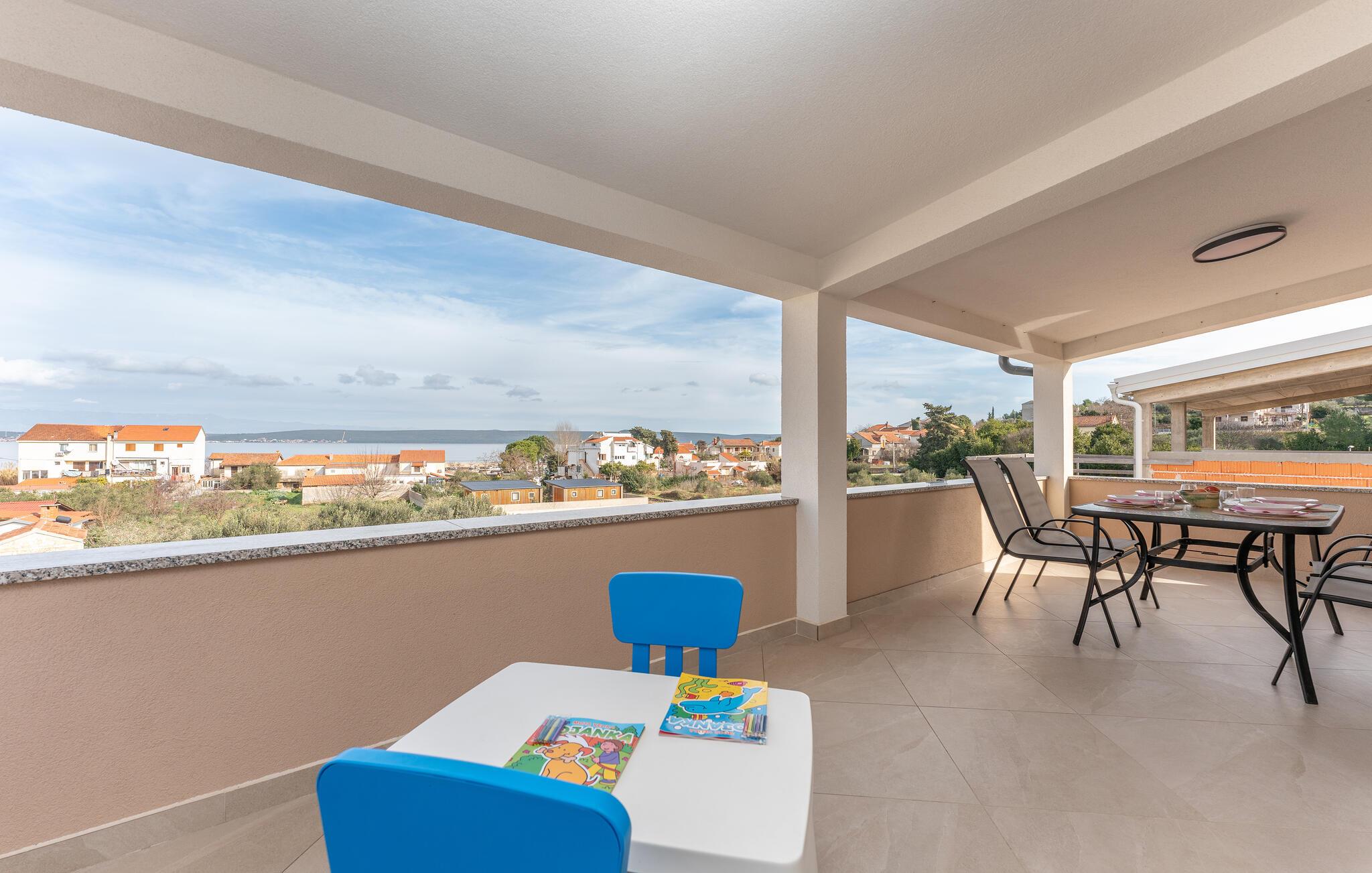 Nyd en uforglemmelig ferie i dette komfortable feriehus med pool og havudsigt. Dette moderne hus tilbyder de ideelle rammer for en afslappende pause fra hverdagen. Slap af og lad batterierne op, omgivet af komfort og en beroligende atmosfære. Det rolige design med et moderne trælook og diskrete farver er behageligt oplivet af friske, solrige accenter. Slap af i den store sofa med en god samtale, lyt til jeres yndlingspodcast, eller forkæl familien med et hjemmelavet måltid. Gå ud på terrassen om morgenen med en kop kaffe og nyd havudsigten. Forfrisk jer selv med en dukkert i poolen eller et spil vandpolo, før I slapper af på liggestolene med en kølig drink. Saml jer til en hyggelig grillaften og afslut dagen med en flaske kroatisk vin. Stranden ligger kun et stenkast væk og inviterer jer til at svømme, snorkle eller slappe af i det krystalklare vand. Oplev middelhavslandskabet omkring Banj på en vandretur med havudsigt eller en cykeltur gennem olivenlunde. Prøv friskfanget fisk og dalmatiske specialiteter i de hyggelige taverner ved vandet. Tag en dagstur til fastlandet eller naboøen Ugljan og oplev de kroatiske øers mangfoldighed.