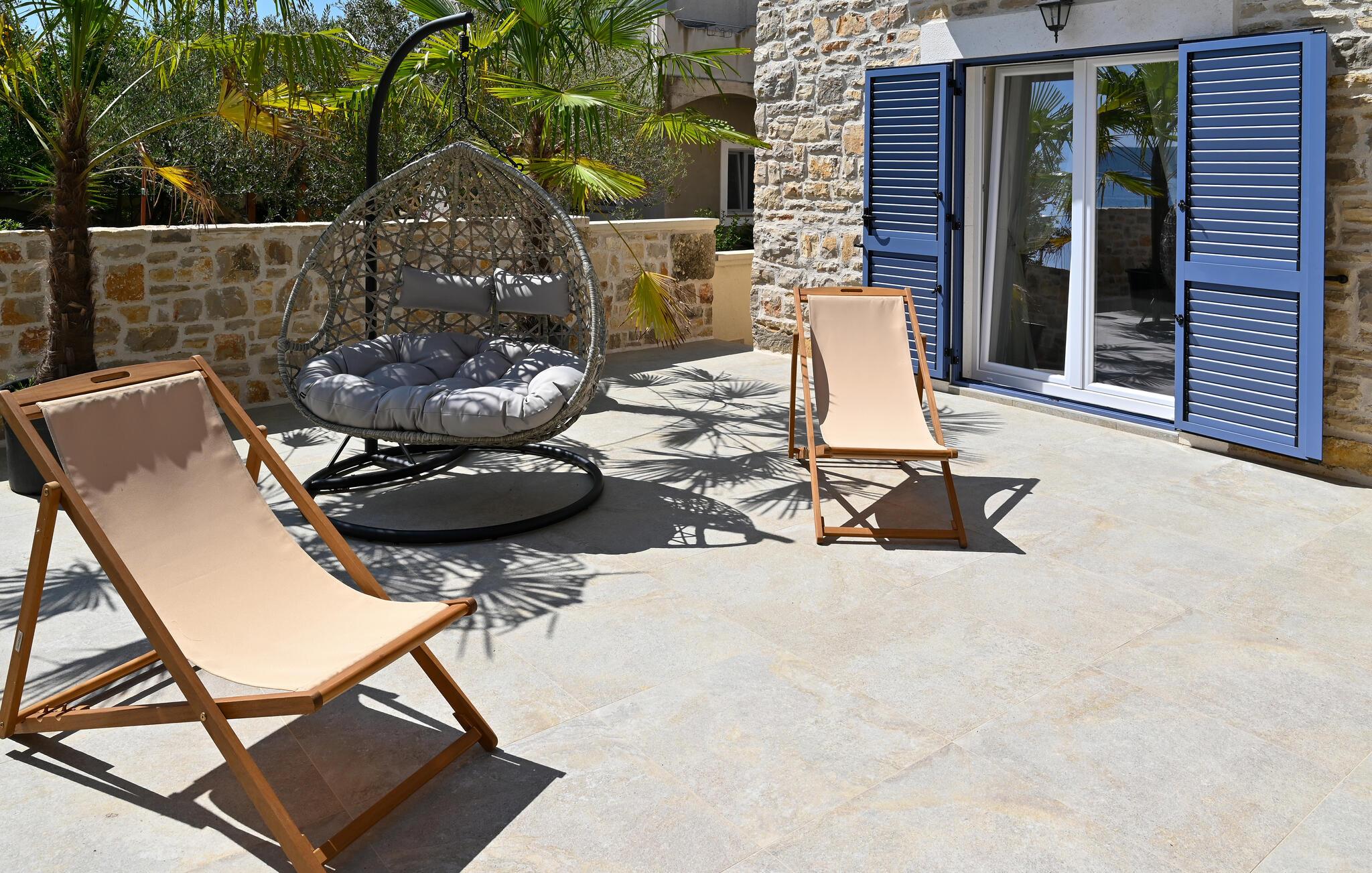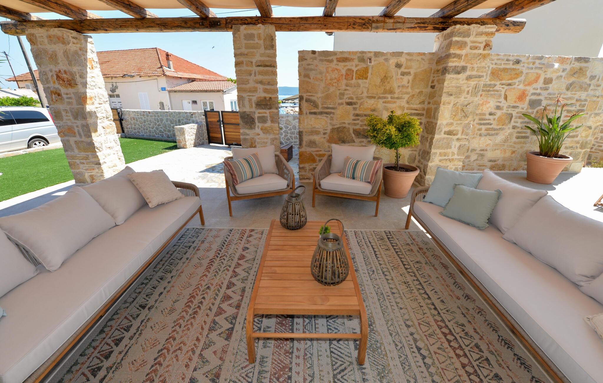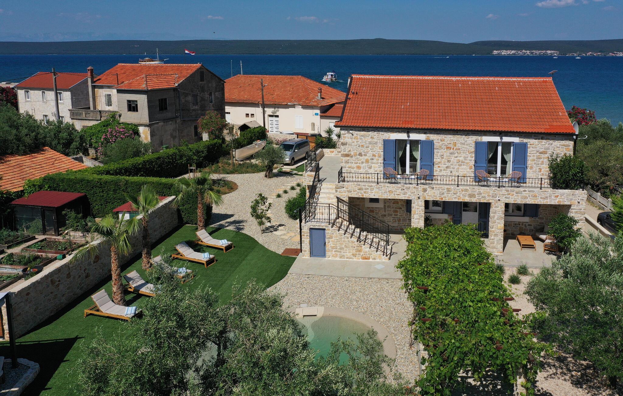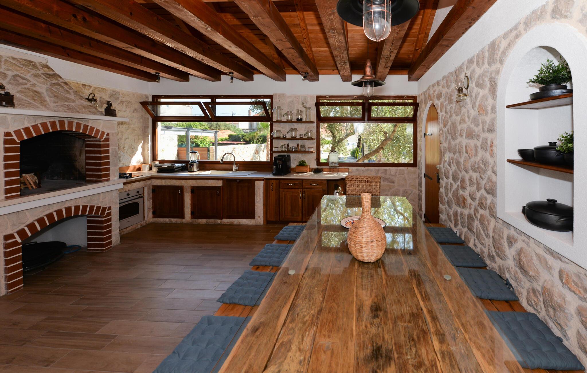 Dette charmerende stenhus ligger ikke kun i den første række af klitter, men imponerer også med sin hyggelige blanding af komfort og rustik charme. Tilbring hyggelige aftener med at streame en god serie eller tilberede lækre måltider i det rustikke køkken, mens I lytter til god musik. Spis med venner og familie og afslut dagen med en god kroatisk vin.
