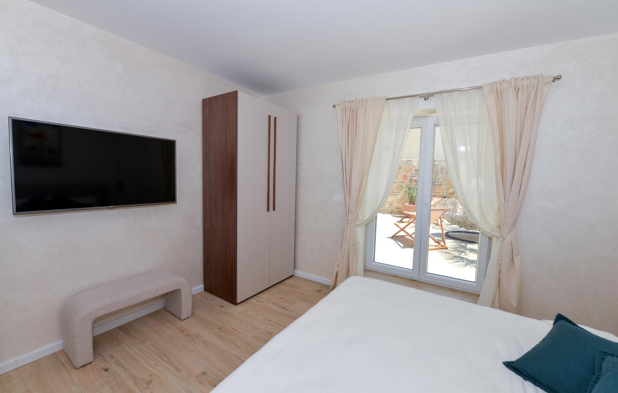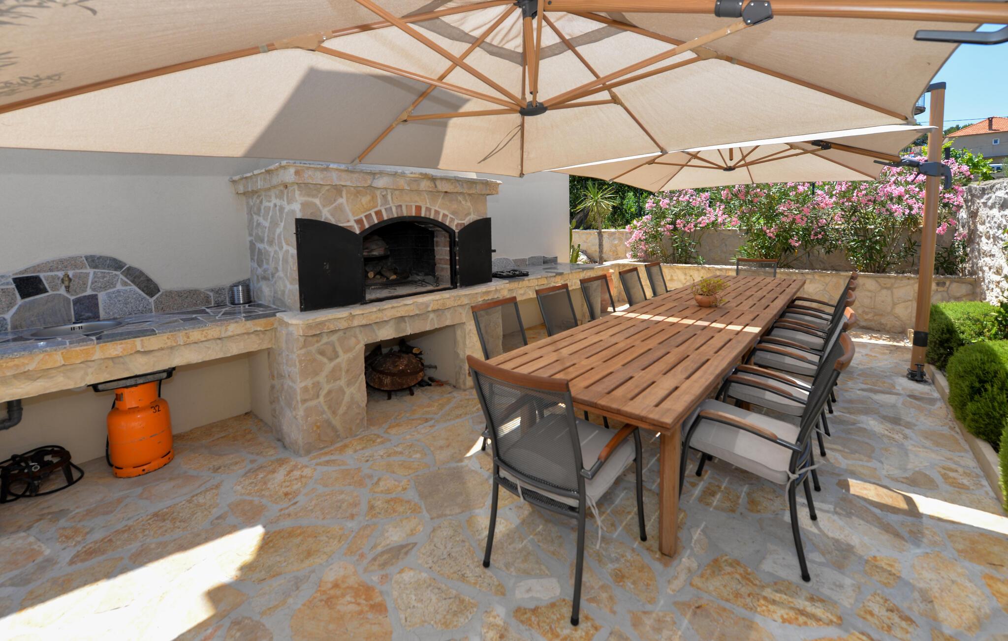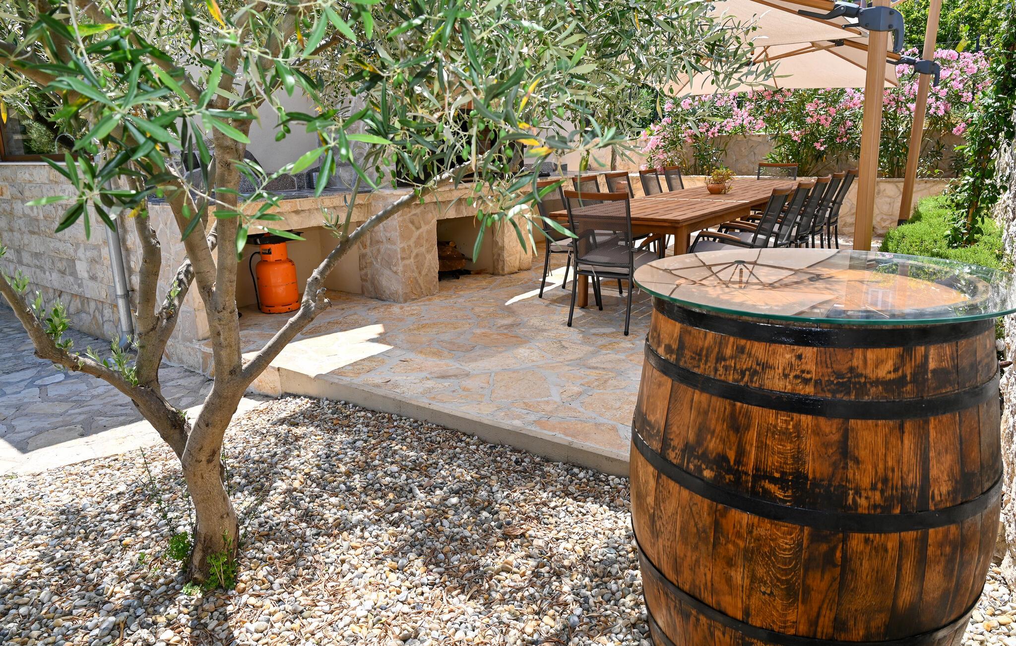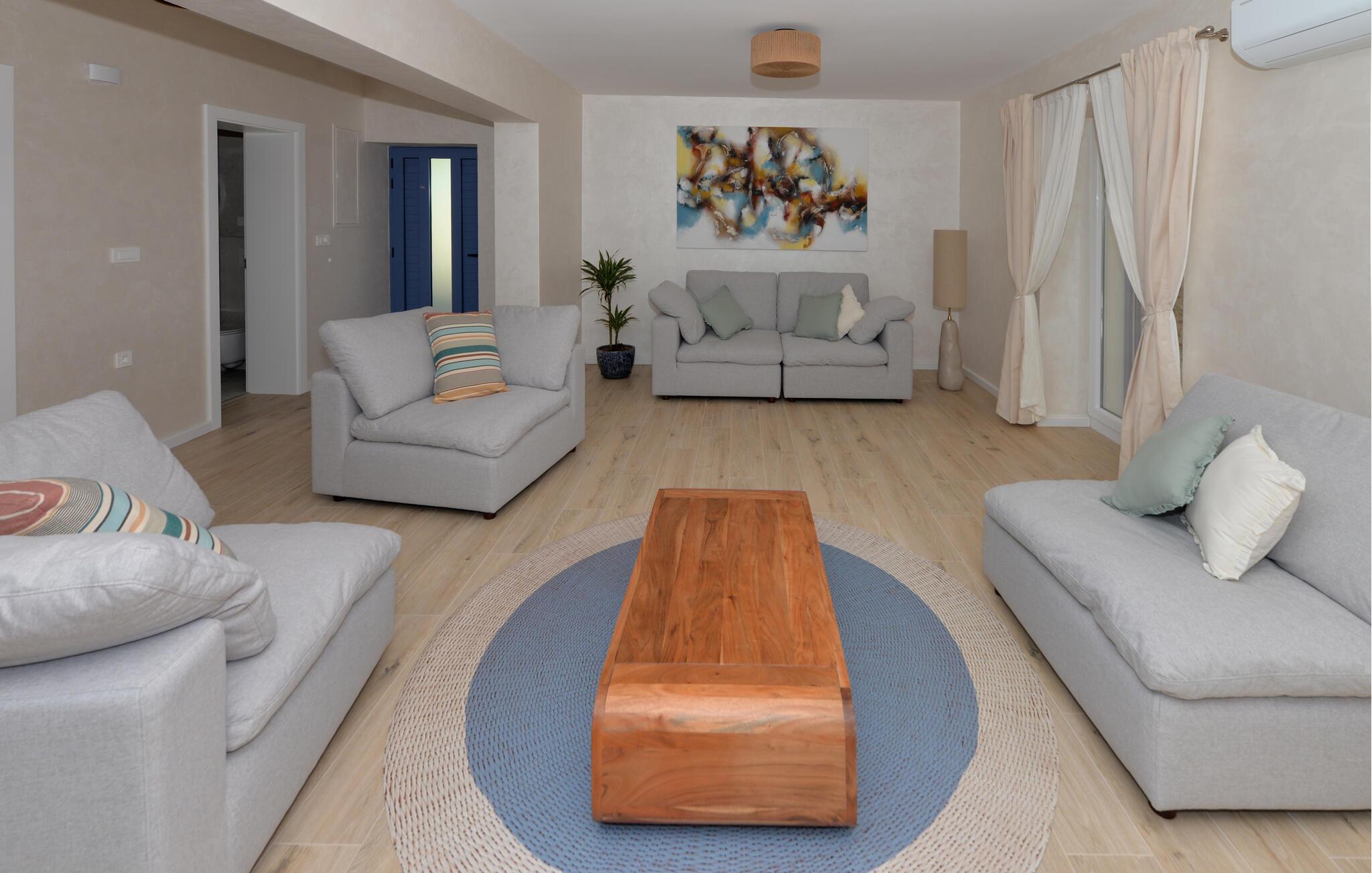 Dette charmerende stenhus ligger ikke kun i den første række af klitter, men imponerer også med sin hyggelige blanding af komfort og rustik charme. Tilbring hyggelige aftener med at streame en god serie eller tilberede lækre måltider i det rustikke køkken, mens I lytter til god musik. Spis med venner og familie og afslut dagen med en god kroatisk vin.
