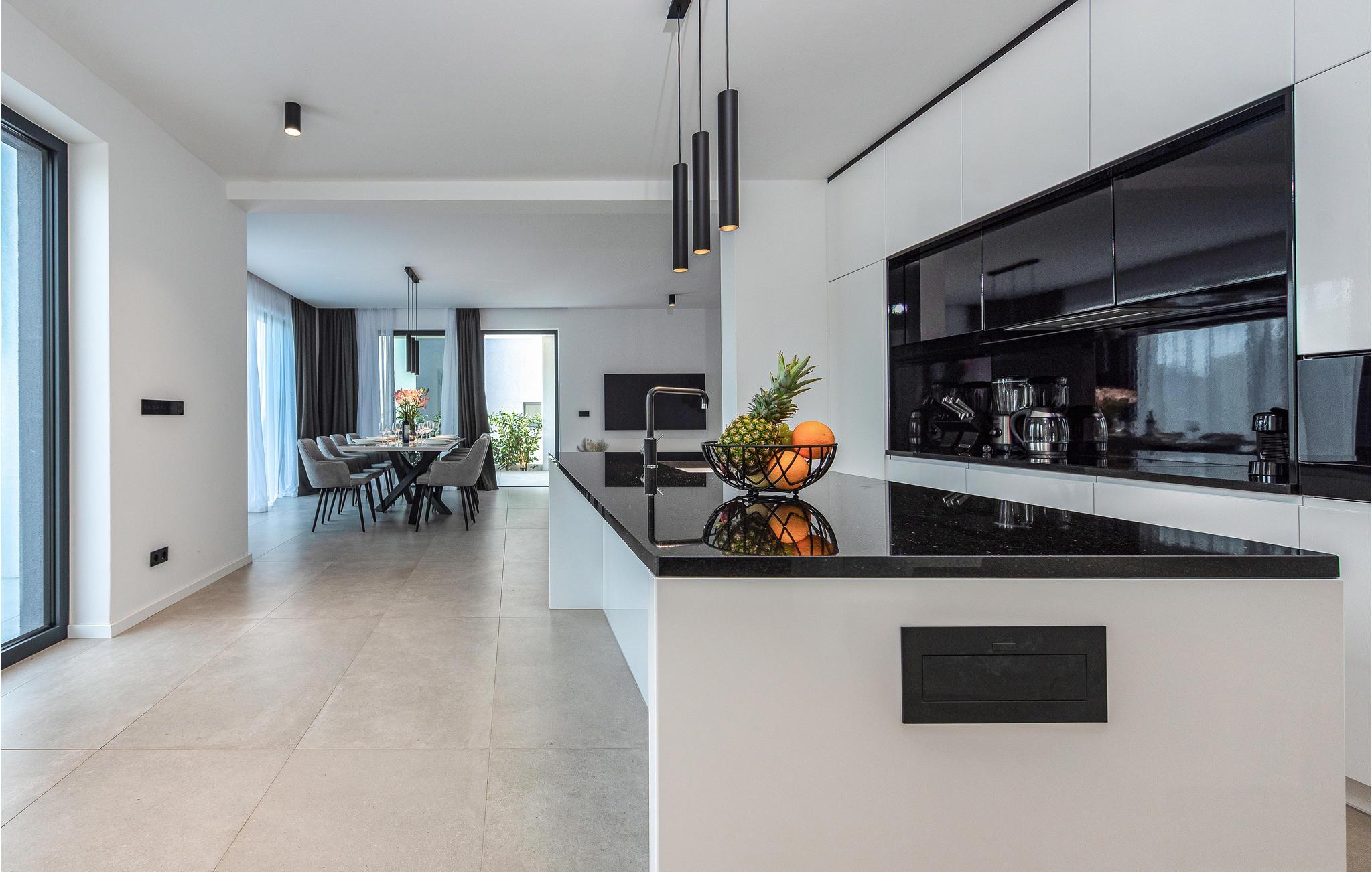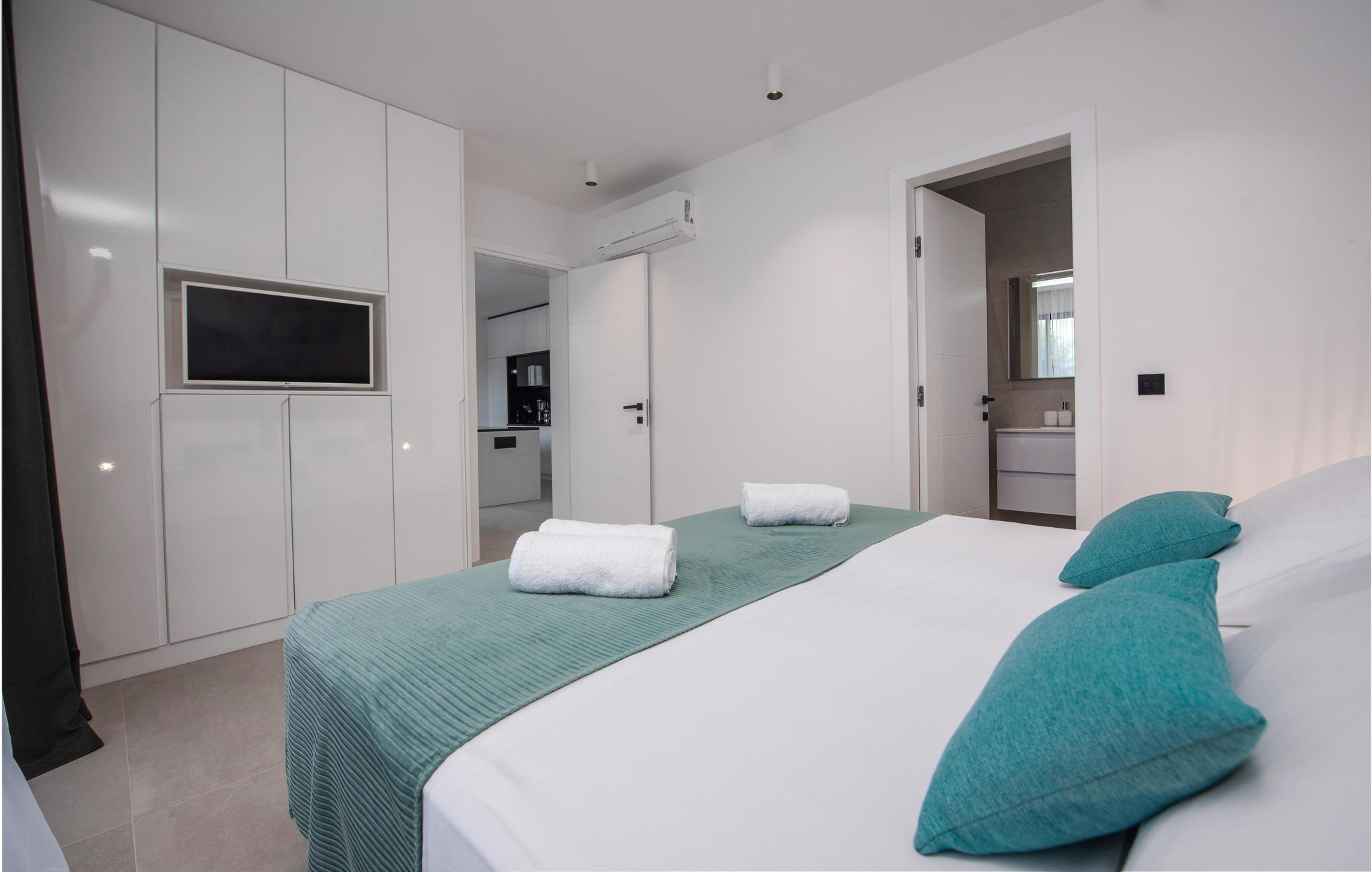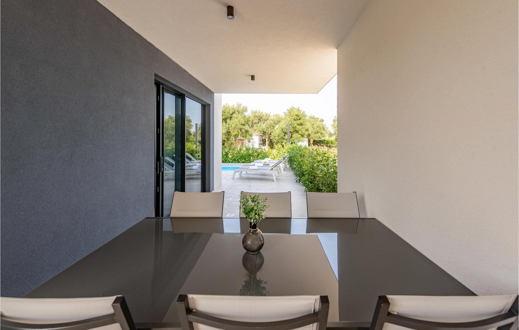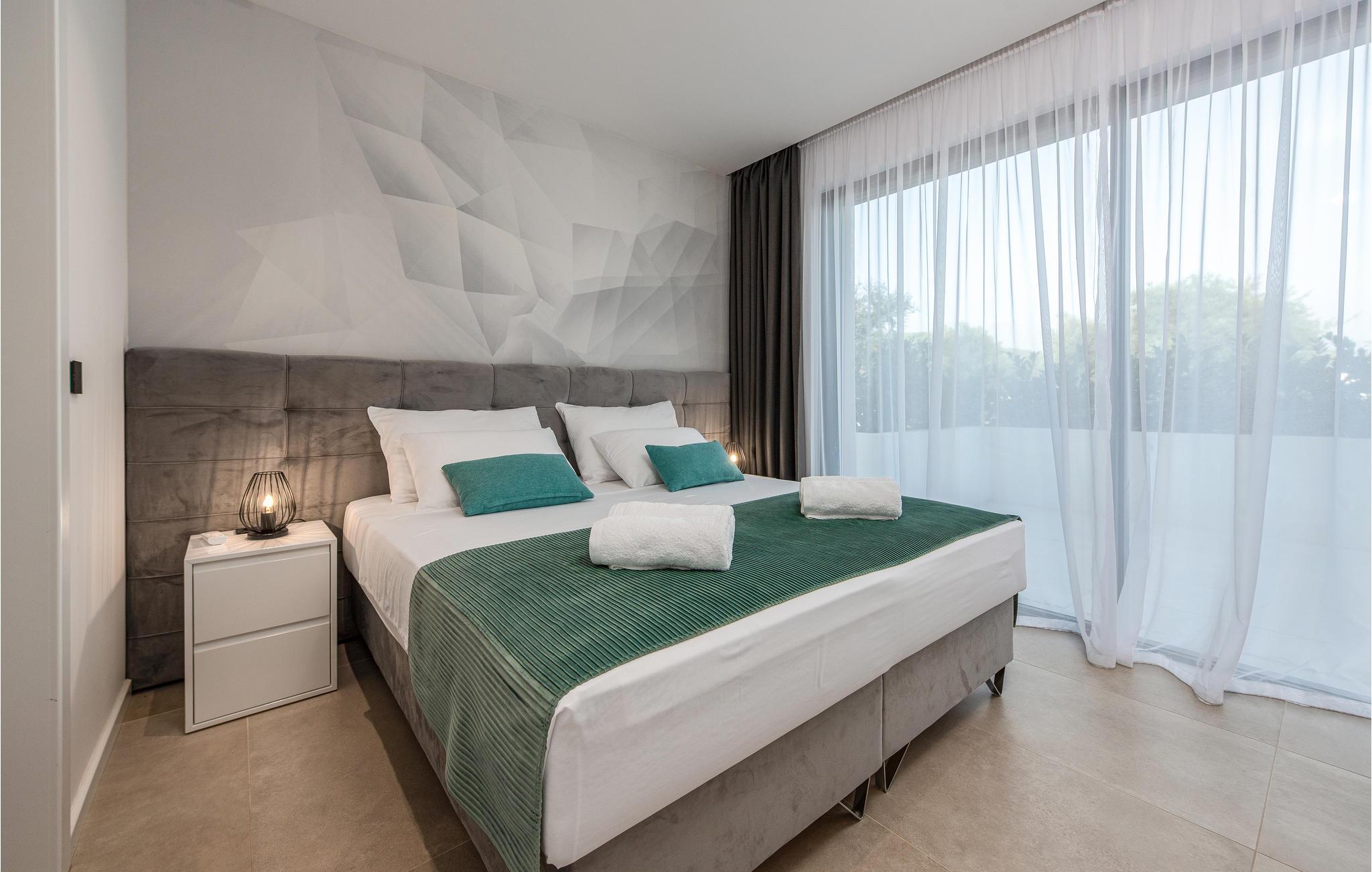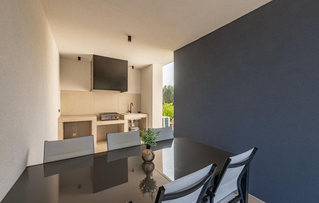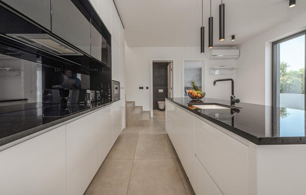 Dette moderne og rummelige feriehus med pool og jacuzzi ligger på øen Pasman, ikke langt fra stranden. Tilbring en uforglemmelig ferie i dette store og komfortable feriehus sammen med din udvidede familie eller par, du er venner med. Drømme går i opfyldelse her, for du kan fuldt ud nyde den højkvalitets indretning, den indbydende atmosfære og mange værelser og nyde socialt samvær og privatliv. Ikke alene har du det store opholdsrum til din rådighed, men hvis du træder udenfor, har du en smuk swimmingpool til din rådighed. Om aftenen kan I tilberede jeres yndlingsretter i udekøkkenet og spise dem sammen. Der er endnu et højdepunkt på taget, da en skøn tagterrasse strækker sig over hele gulvets areal, hvor I kan slappe af sammen i jacuzzien og havemøblerne og se ud over havet. Om natten kan du beundre den magiske himmel med dens stjerner. Rejser du med en stor familie eller med flere familier, der er venner, kan nabohuset også lejes. Grib din strandtaske og gå de få meter til stranden, som er en blanding af sand, beton og småsten. Dyk ned i det krystalklare vand og spil derefter beachvolley på stranden eller se dine børn lege på legepladsen. Pašman er synonymt med landskabets vilde skønhed, bugter og undervandsverden. Vandretur til Veliki Bokolj, et udsigtspunkt i sten, der giver et glimt af de fortryllende Kornati-øer. Du kan udforske offshore-øerne med båd og besøge den livlige havneby Biograd na Moru eller Zadar. Udforsk den historiske gamle bydel, mens du går gennem de små gader, er der mange smukke steder og attraktioner at opdage. Glæd dig til en afslappende ferie ved havet!