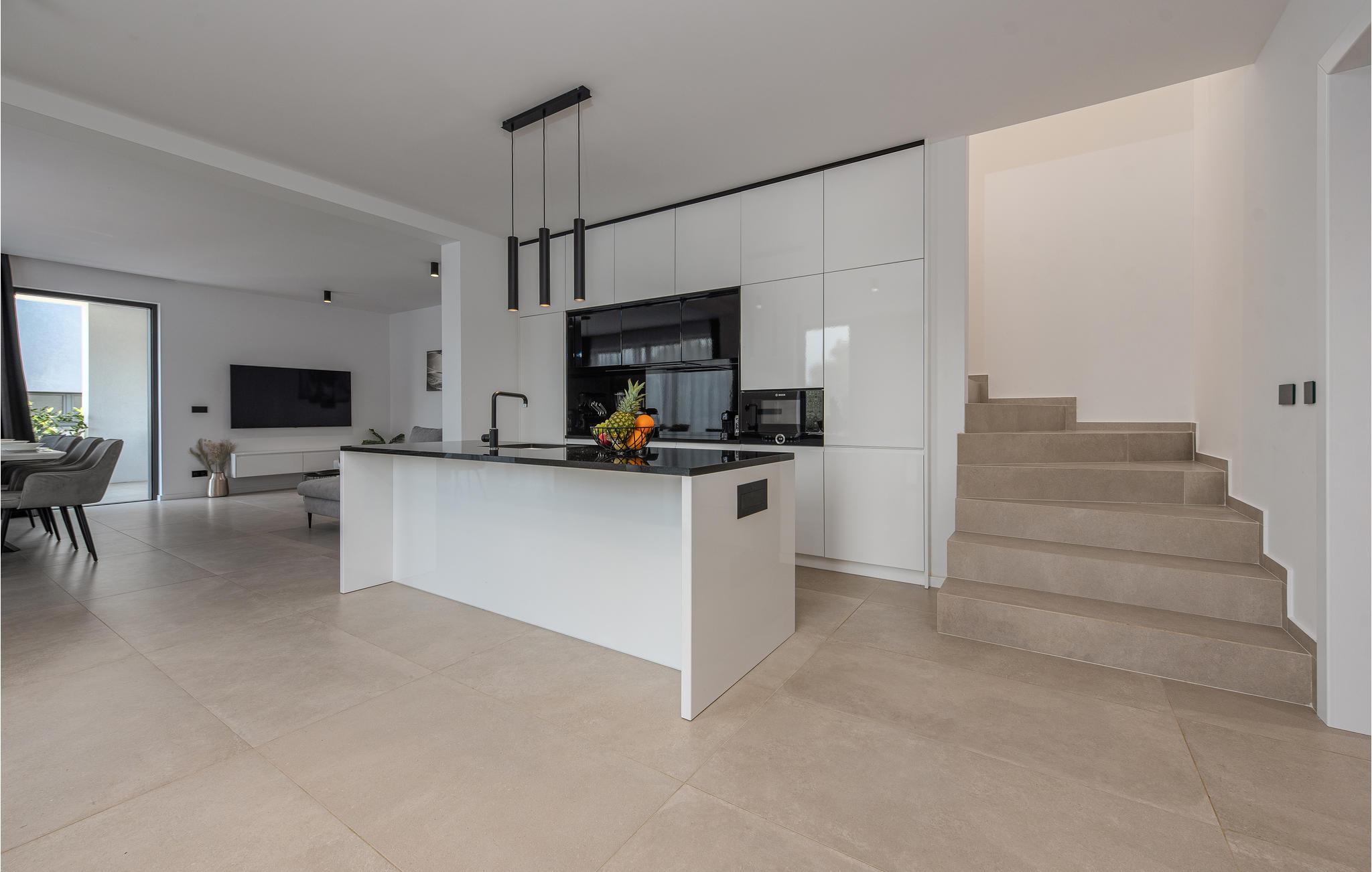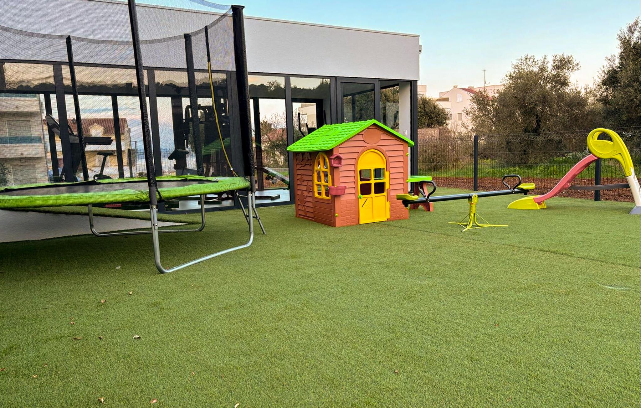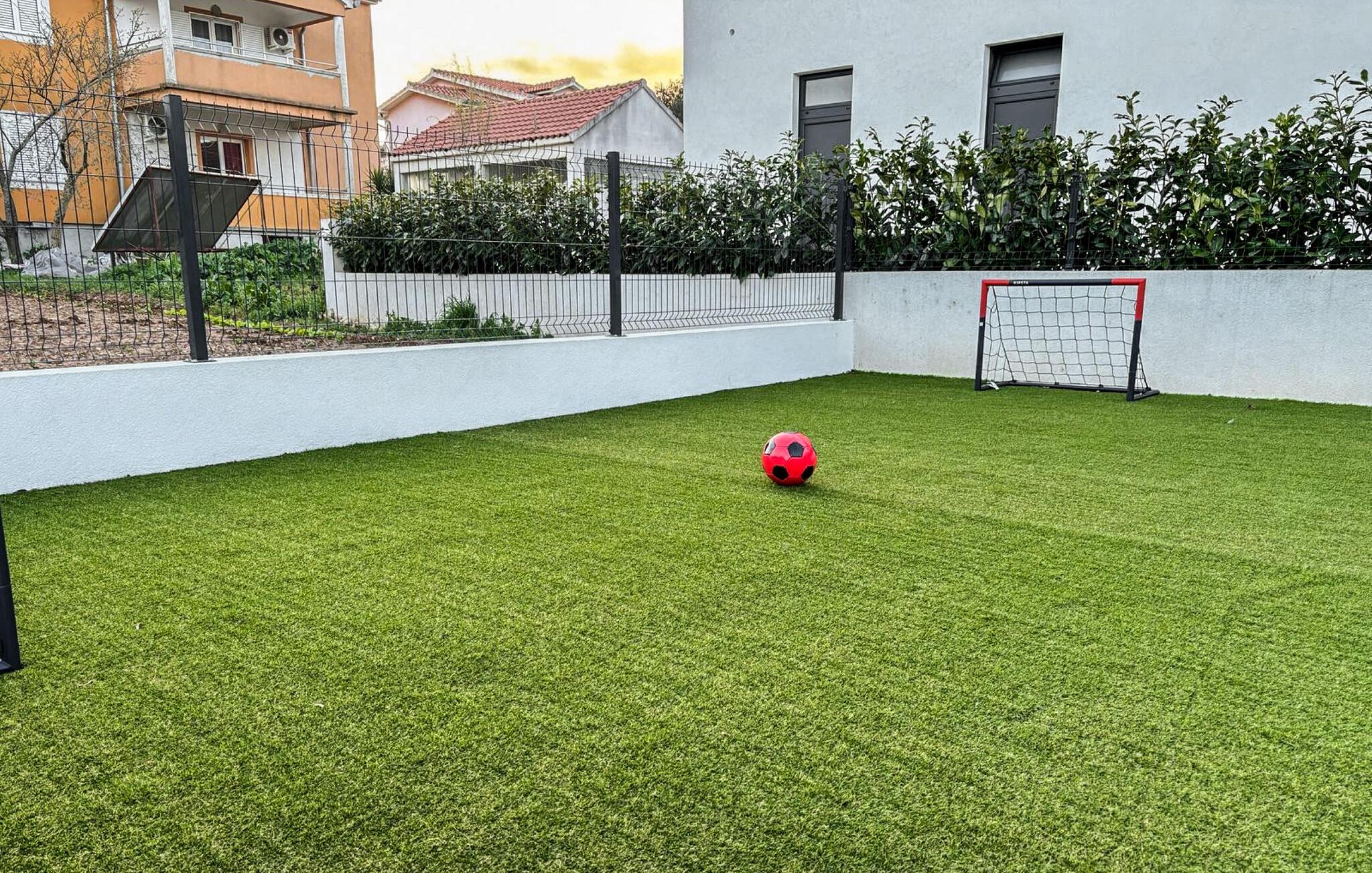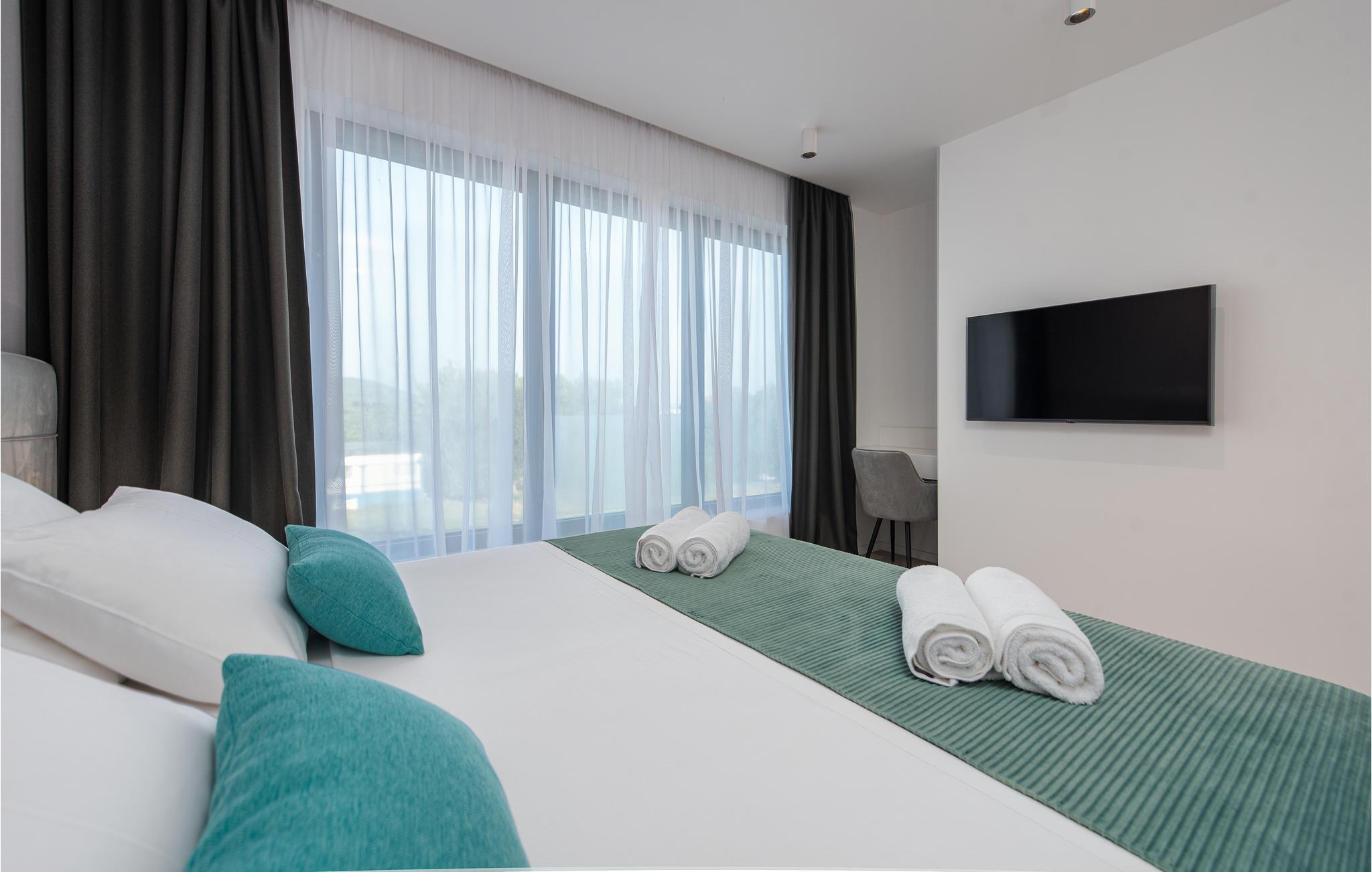Dette moderne og rummelige feriehus med pool og jacuzzi ligger på øen Pasman, ikke langt fra stranden. Tilbring en uforglemmelig ferie i dette store og komfortable feriehus sammen med din udvidede familie eller par, du er venner med. Drømme går i opfyldelse her, for du kan fuldt ud nyde den højkvalitets indretning, den indbydende atmosfære og mange værelser og nyde socialt samvær og privatliv. Ikke alene har du det store opholdsrum til din rådighed, men hvis du træder udenfor, har du en smuk swimmingpool til din rådighed. Om aftenen kan I tilberede jeres yndlingsretter i udekøkkenet og spise dem sammen. Der er endnu et højdepunkt på taget, da en skøn tagterrasse strækker sig over hele gulvets areal, hvor I kan slappe af sammen i jacuzzien og havemøblerne og se ud over havet. Om natten kan du beundre den magiske himmel med dens stjerner. Rejser du med en stor familie eller med flere familier, der er venner, kan nabohuset også lejes. Grib din strandtaske og gå de få meter til stranden, som er en blanding af sand, beton og småsten. Dyk ned i det krystalklare vand og spil derefter beachvolley på stranden eller se dine børn lege på legepladsen. Pašman er synonymt med landskabets vilde skønhed, bugter og undervandsverden. Vandretur til Veliki Bokolj, et udsigtspunkt i sten, der giver et glimt af de fortryllende Kornati-øer. Du kan udforske offshore-øerne med båd og besøge den livlige havneby Biograd na Moru eller Zadar. Udforsk den historiske gamle bydel, mens du går gennem de små gader, er der mange smukke steder og attraktioner at opdage. Glæd dig til en afslappende ferie ved havet!