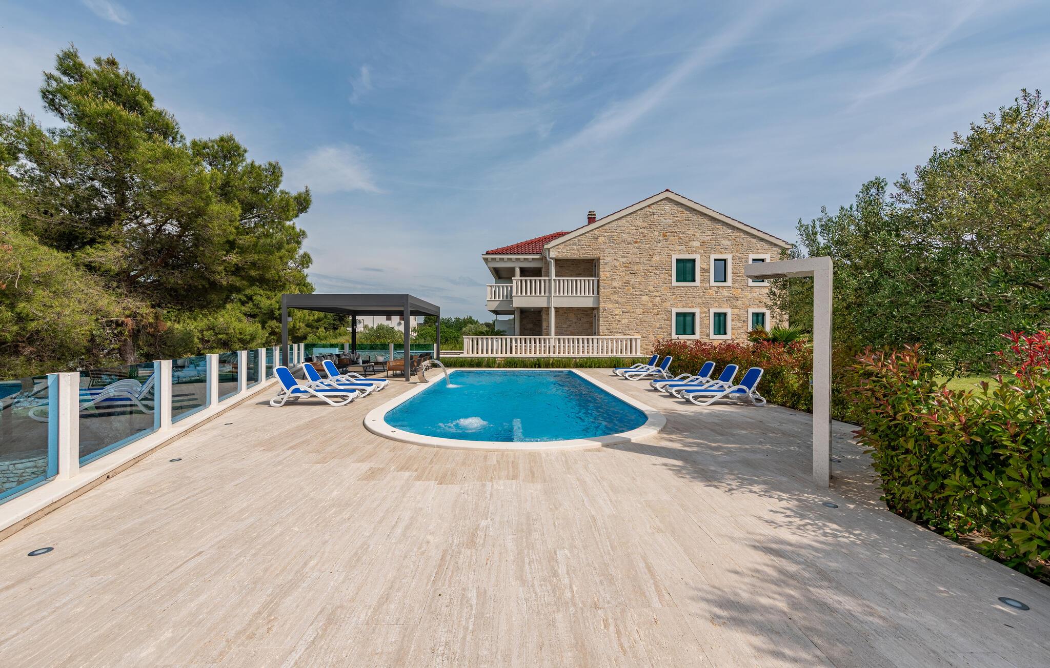 Tag den lille familie under armen og rejs til øen Pasman, hvor I i dette moderne kompleks finder flere ferielejligheder til årets bedste ø-ferie. Indretningen fremtræder stilsikkert og elegant, og med de mange gode faciliter får I her alt, I behøver for at kunne lade skuldrene falde og bare slappe af efter en aktiv feriedag.