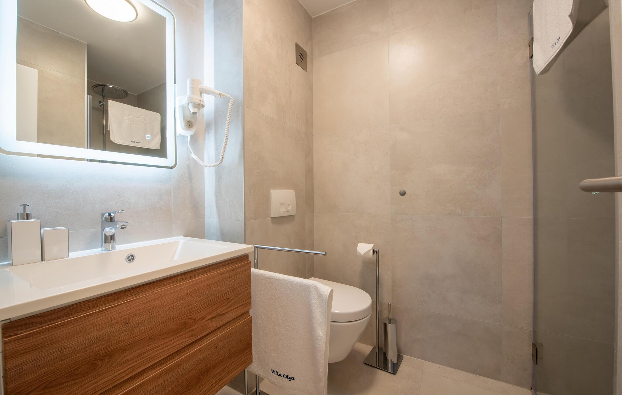 Badeværelse 4m2 (nr. 2) - WC. Varmt og koldt vand. Bruser
