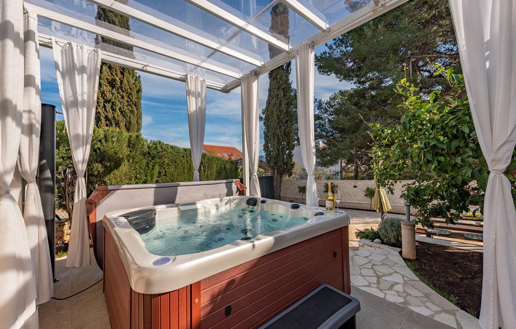 Velkommen til dette indbydende dobbelthus, bestående af to fuldt udstyrede ferielejligheder, som lover en behagelig ferie for en familie med børn eller vennepar. Både i stueetagen og på 1. salen, som er forbundet via udvendige trapper, vil I blive mødt af en lys og venlig atmosfære, smagfuld indretning og faciliteter, som ikke lader jer mangle noget. Nyd jeres morgenmad på en af terrasserne og se ud over det grønne kvarter. Husets udendørs, indhegnede areal indbyder til afslappende timer i det fri og wellness i spabadet.