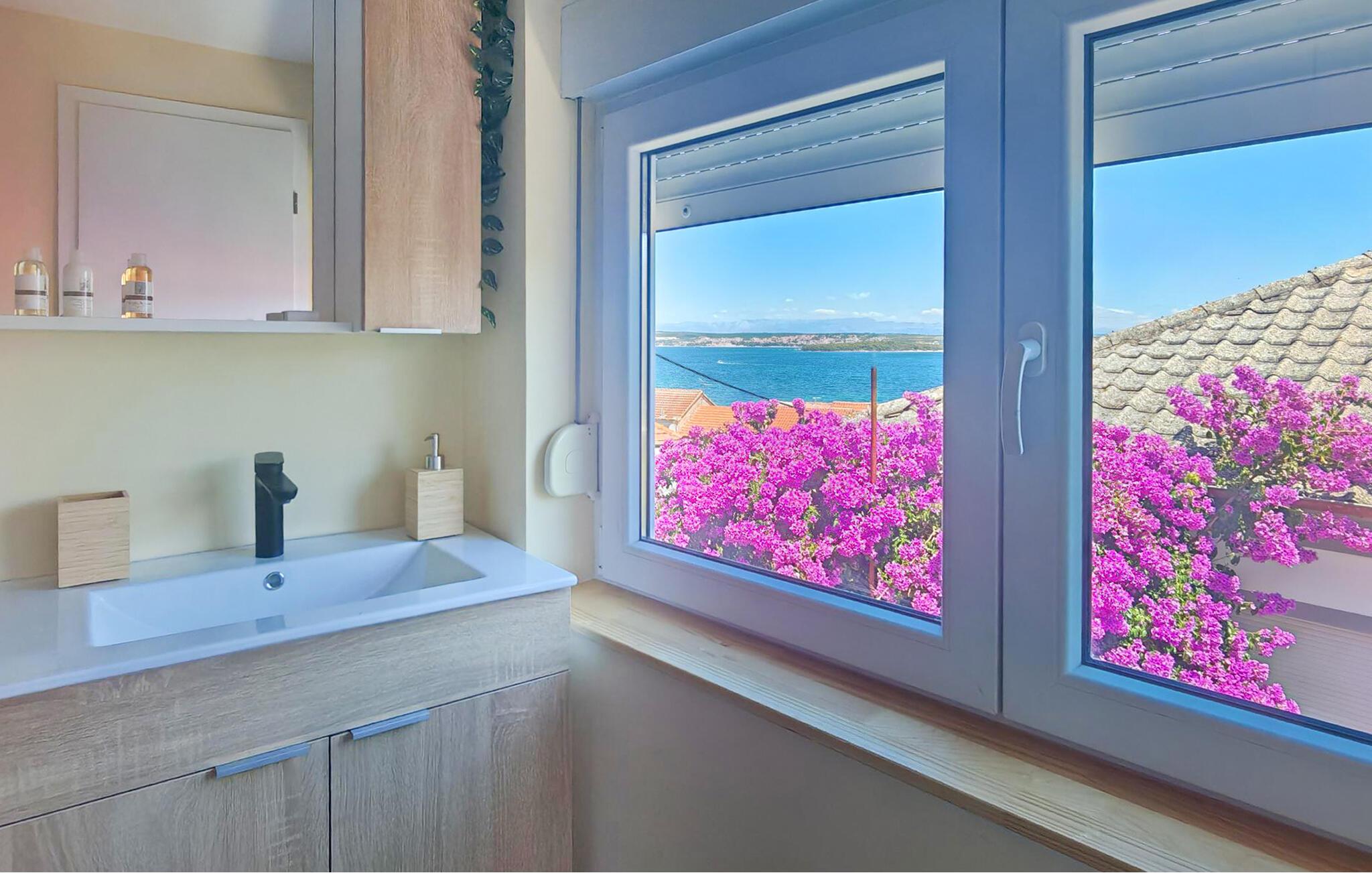 Tilbring afslappende dage i jeres ferielejlighed, som tilbyder den ideelle kombination af fred og ro og nærhed til havet. Nyd den unikke beliggenhed og oplev charmen ved den dalmatiske kyst. Brug den hyggelige stue med TV og spiseplads til at underholde gæster, og tilbered måltider i det funktionelt udstyrede køkken. Nyd den lyse atmosfære og den storslåede havudsigt gennem badeværelsesvinduet, og planlæg jeres ophold efter jeres ønsker.