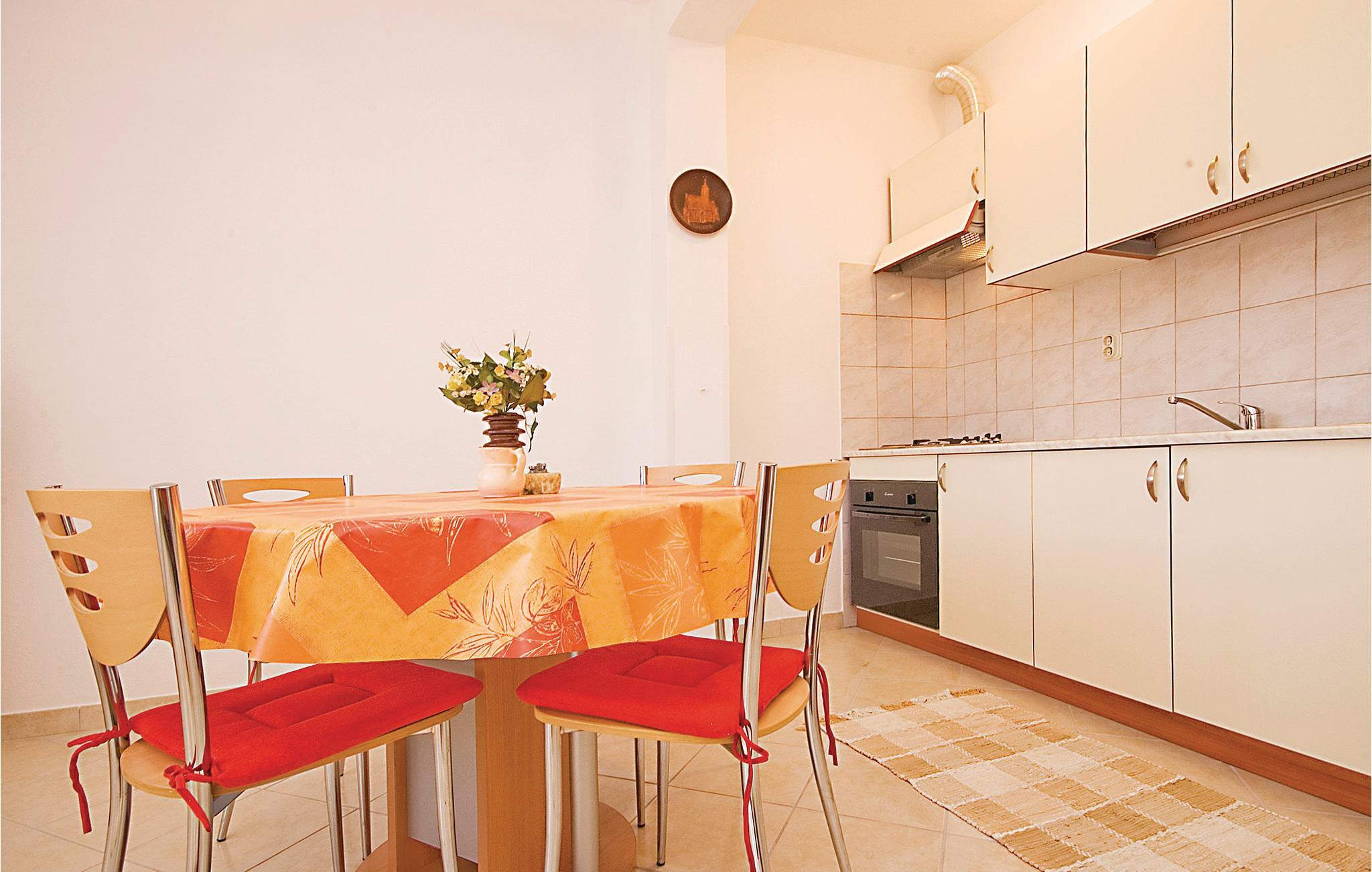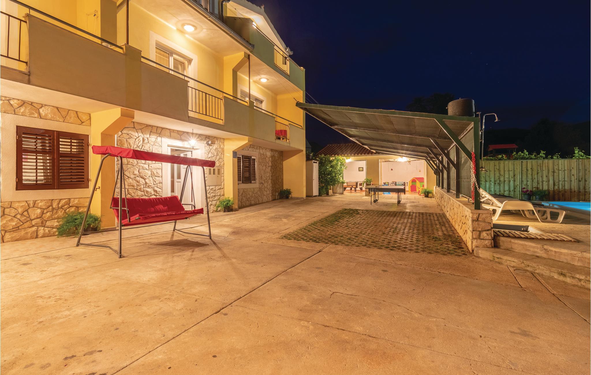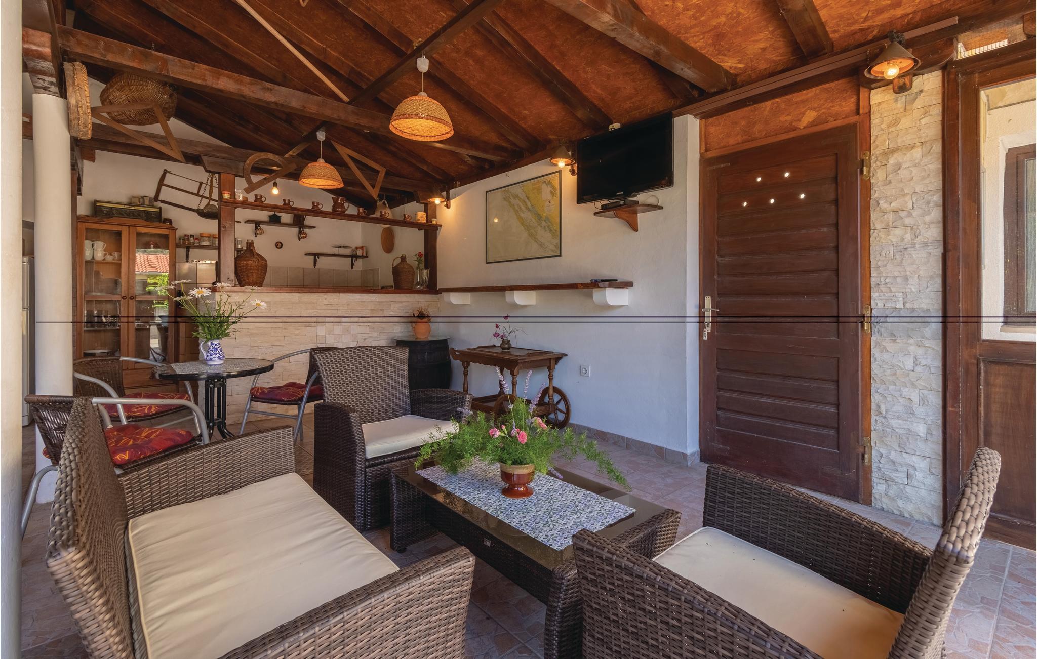 Dette dobbelthus består af 4 separate boligenheder, der er forbundet af en trappe. Hver boligenhed fremstår som en selvstændig bolig. I stueetagen er der et spilleværelse med bordfodbold og dart. I gården er der bordtennisbord, bocciabane og en gynge. I haven er der også et flot udendørs køkken med grill, gasblus, køleskab og vaskemaskine. Dobbelthuset ligger i smukke, rolige og afslappende omgivelser og er derfor det perfekte sted at tilbringe jeres rekreative ferie. Fra de nærliggende bakker er der en fantastisk udsigt over nationalparken Kornati med den smukke ø-gruppe.