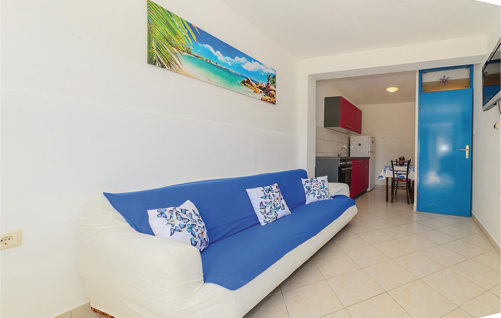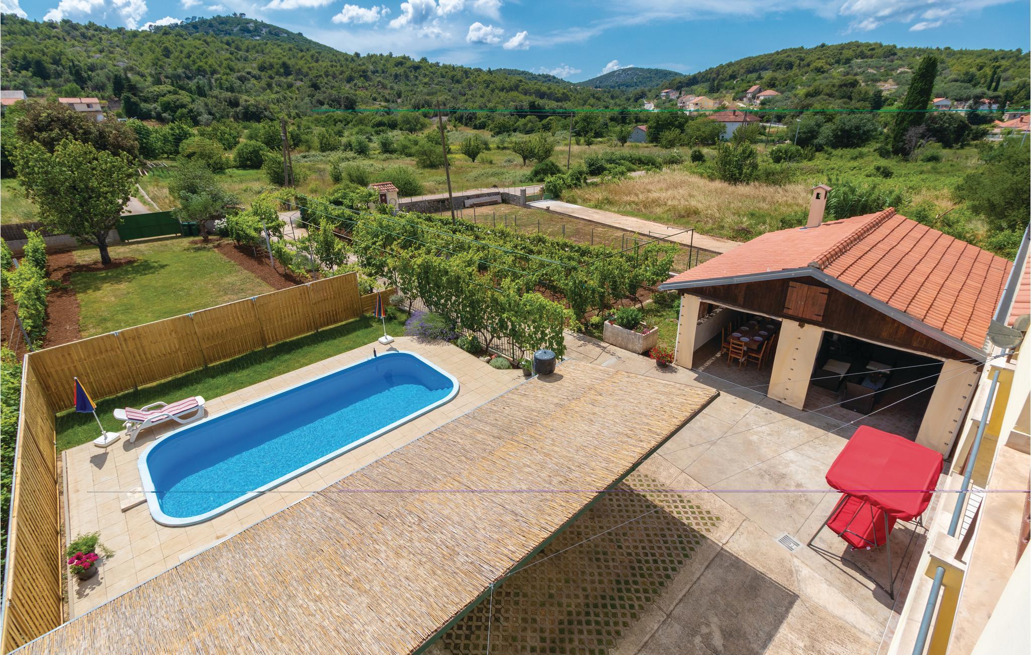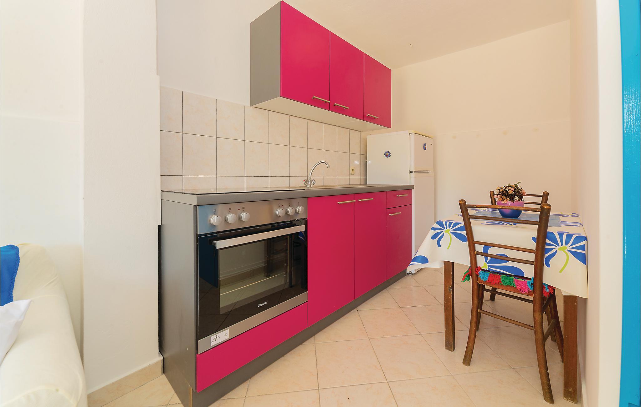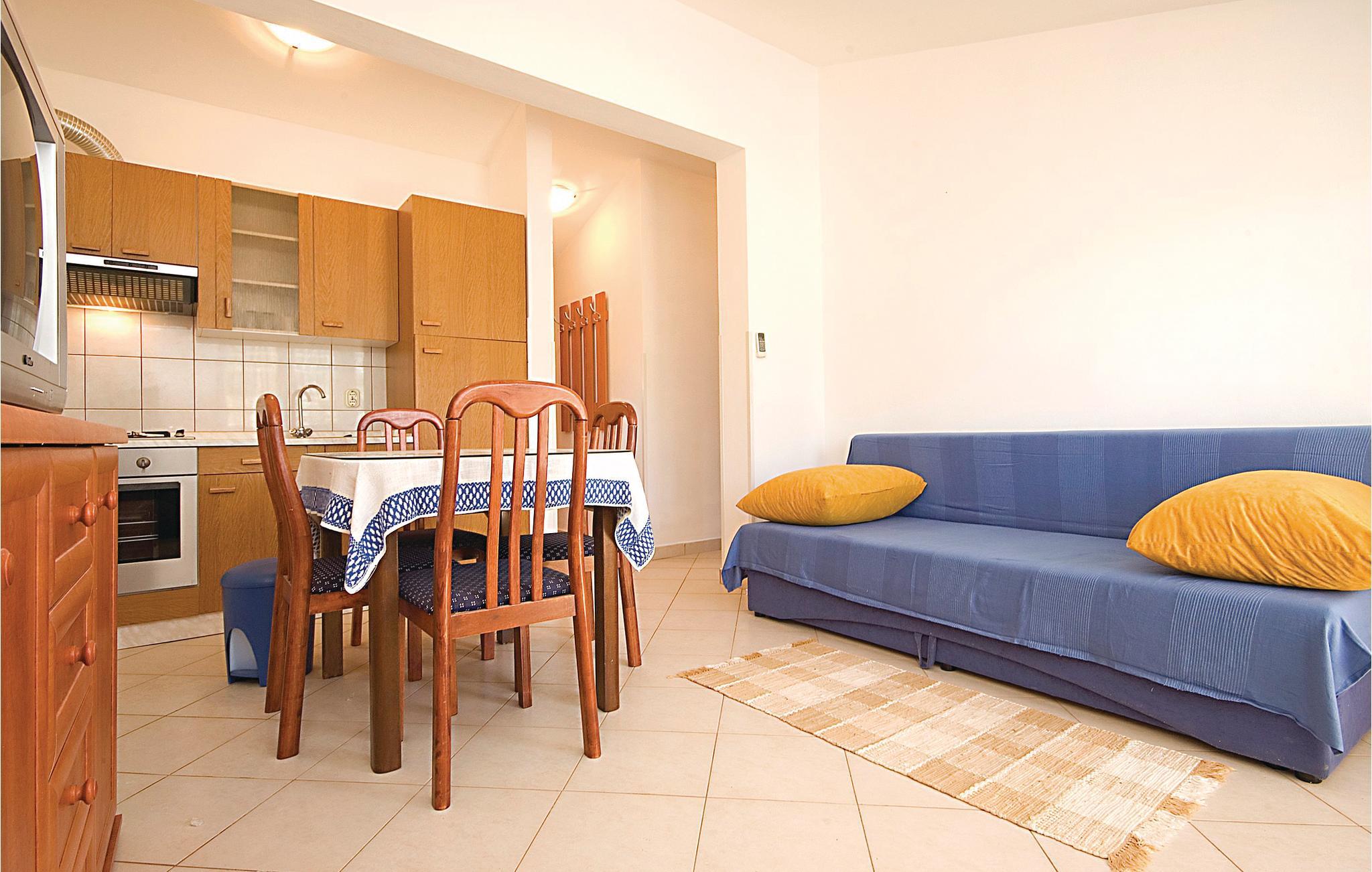 Dette dobbelthus består af 4 separate boligenheder, der er forbundet af en trappe. Hver boligenhed fremstår som en selvstændig bolig. I stueetagen er der et spilleværelse med bordfodbold og dart. I gården er der bordtennisbord, bocciabane og en gynge. I haven er der også et flot udendørs køkken med grill, gasblus, køleskab og vaskemaskine. Dobbelthuset ligger i smukke, rolige og afslappende omgivelser og er derfor det perfekte sted at tilbringe jeres rekreative ferie. Fra de nærliggende bakker er der en fantastisk udsigt over nationalparken Kornati med den smukke ø-gruppe.