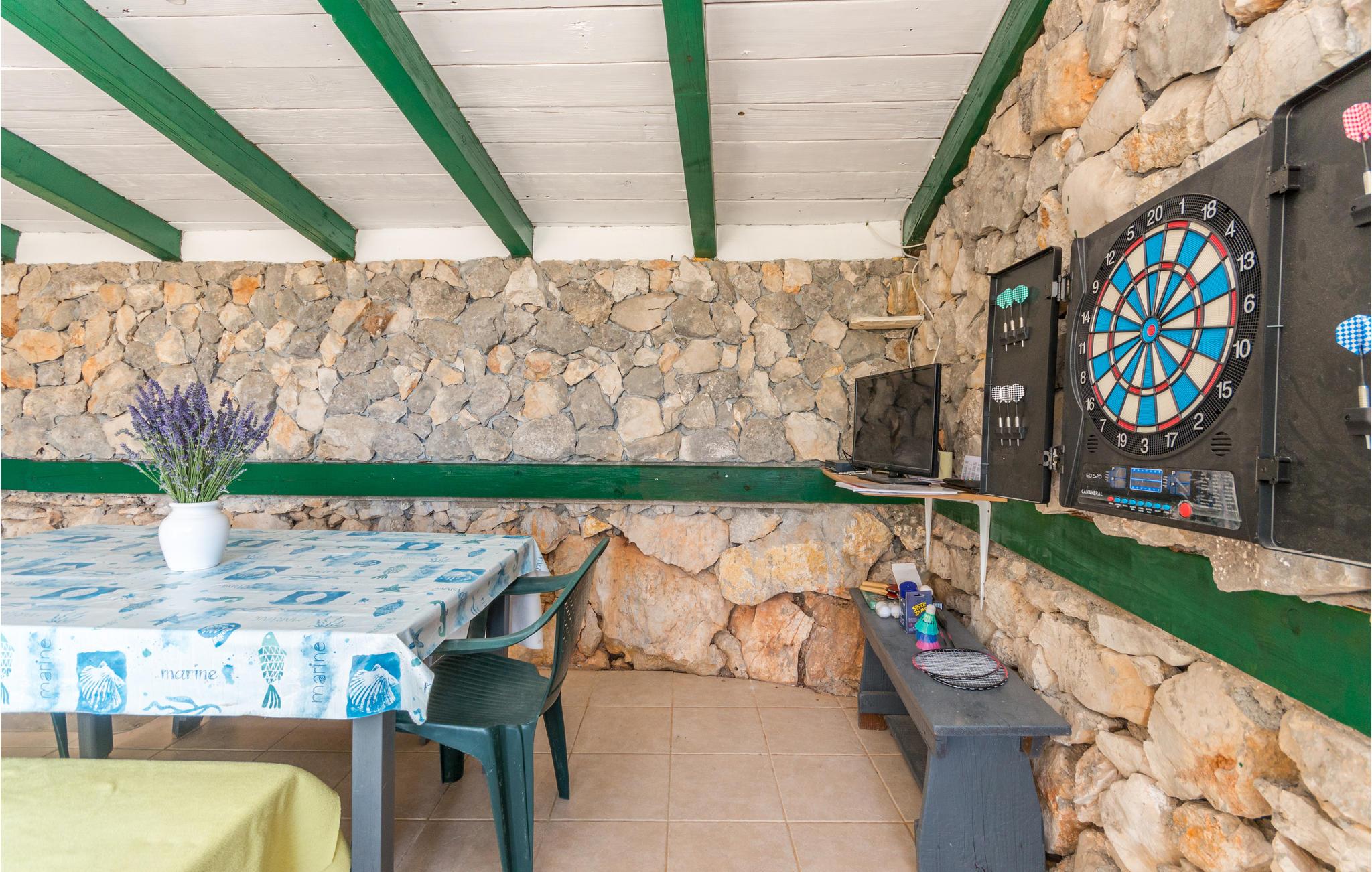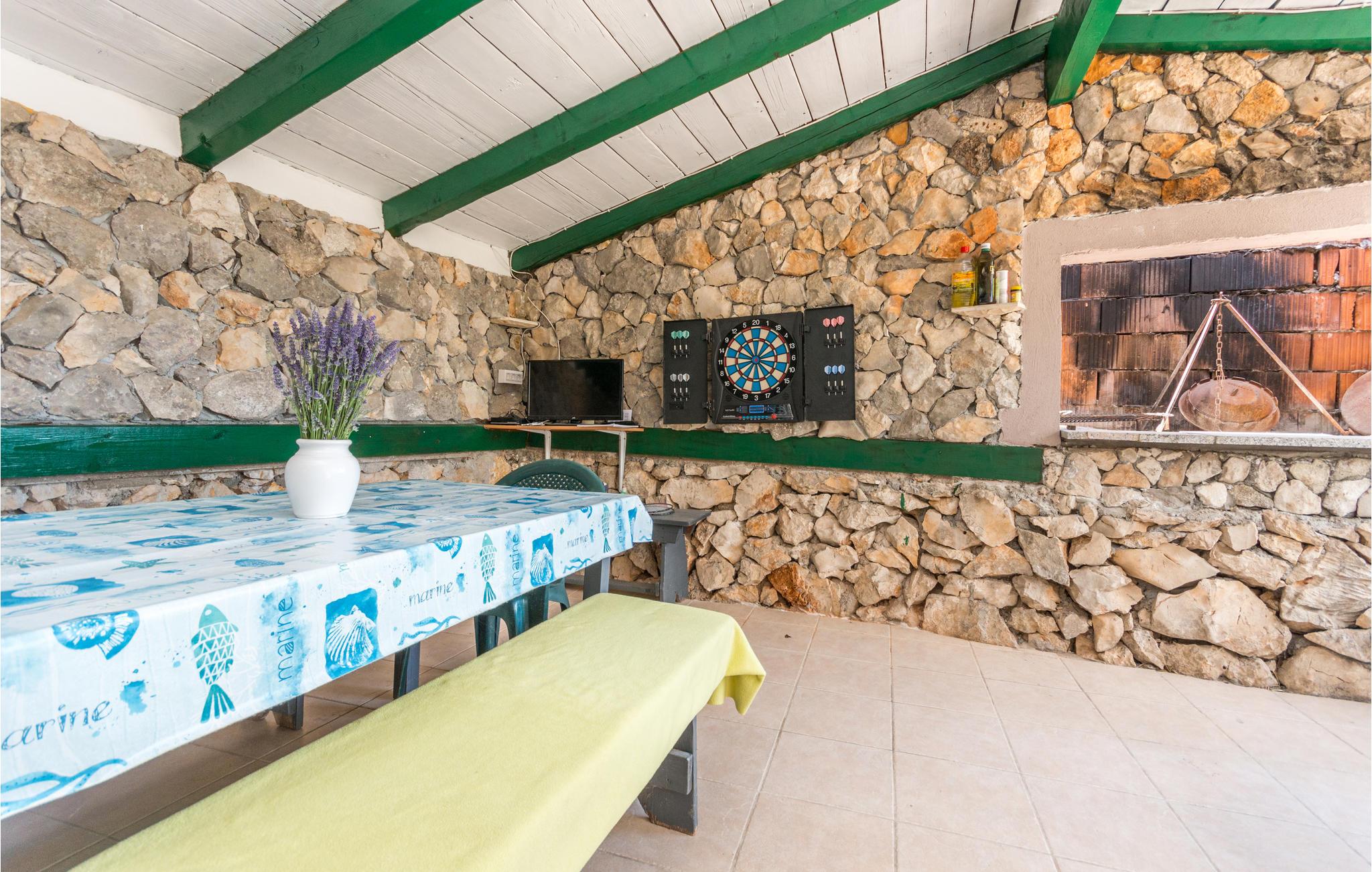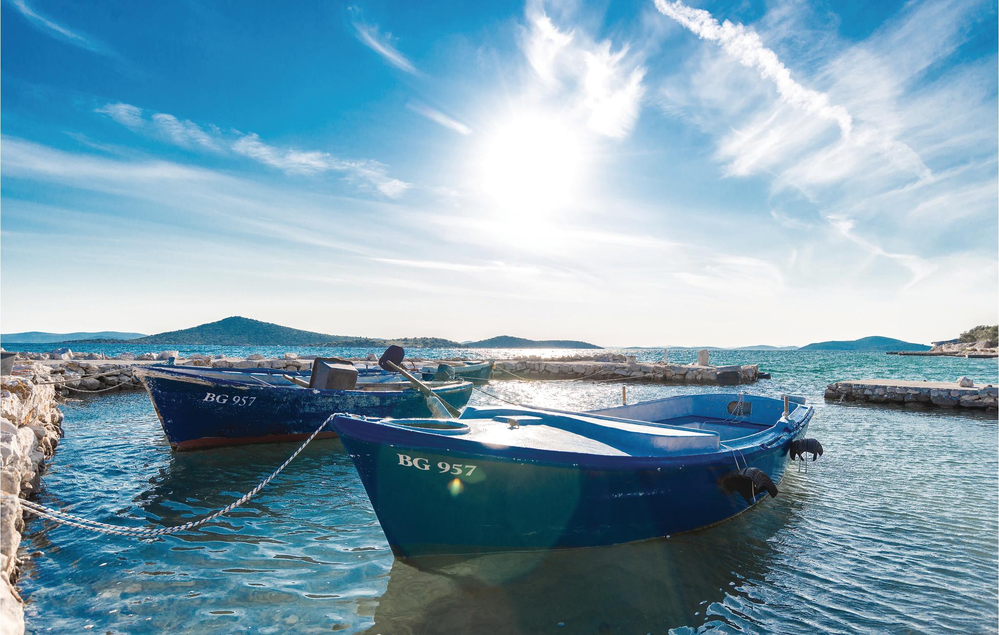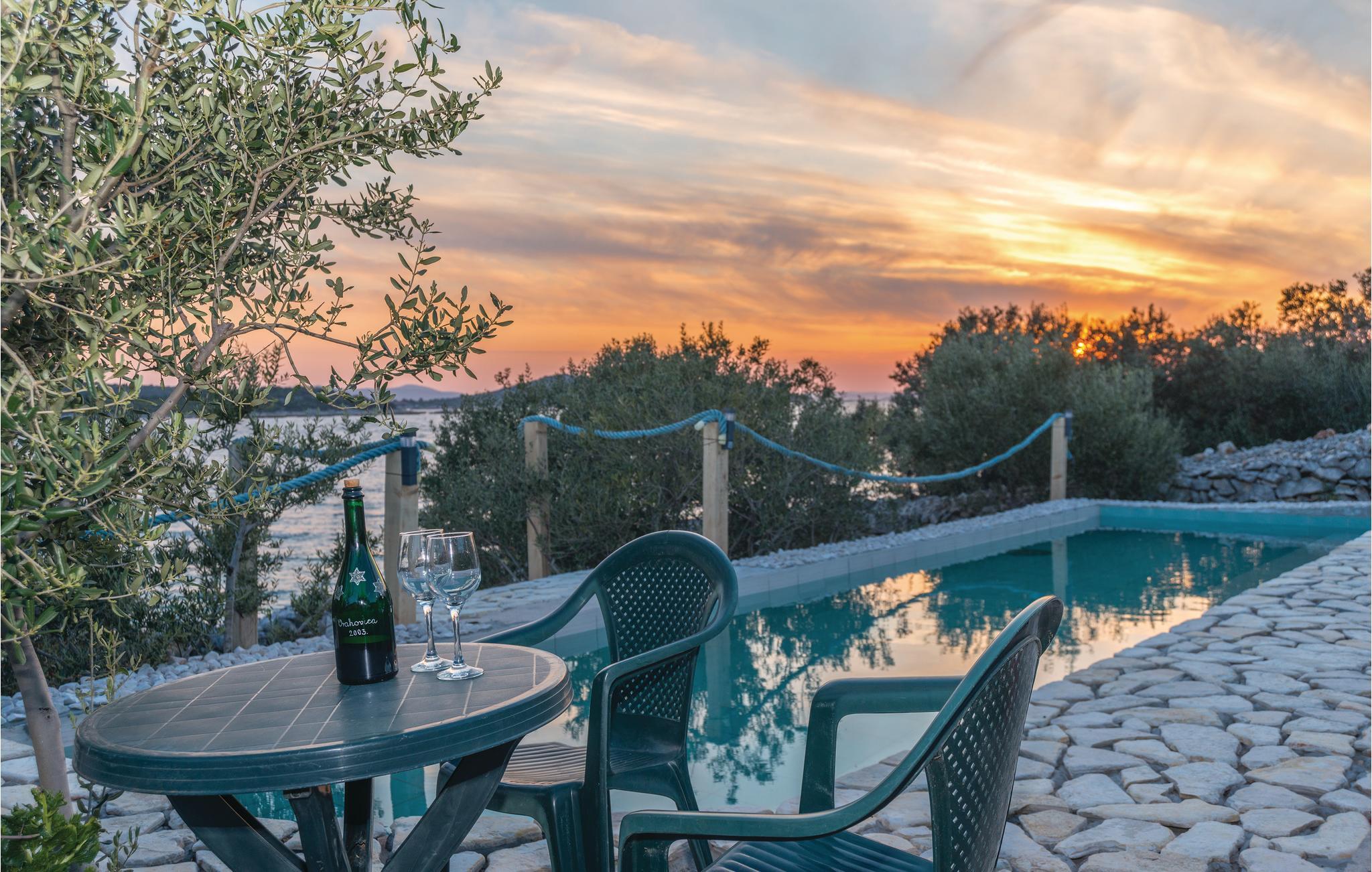 En helt paradisisk beliggenhed lige ved stranden, der udelukkende tilhører gæsterne i dette robinsonhus, vil tage mælet fra jer. Udendørs er der både en olivenlund, legeplads og pool med havvand. Feriedomicilet rummer tre soveværelser, køkken og to badeværelser, det ene med indgang udefra og fra soveværelset. Det er skønt at sidde på den overdækkede terrasse beskyttet mod sol og regn. Strømmen kommer fra solceller og det varme vand fra en gasopvarmet kedel. Efter aftale og mod betaling, kan der lejes båd hos ejer. Oplev jeres helt særlige ferie på øen Pašman.