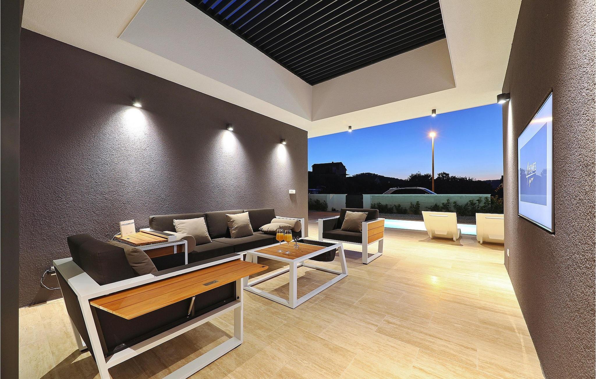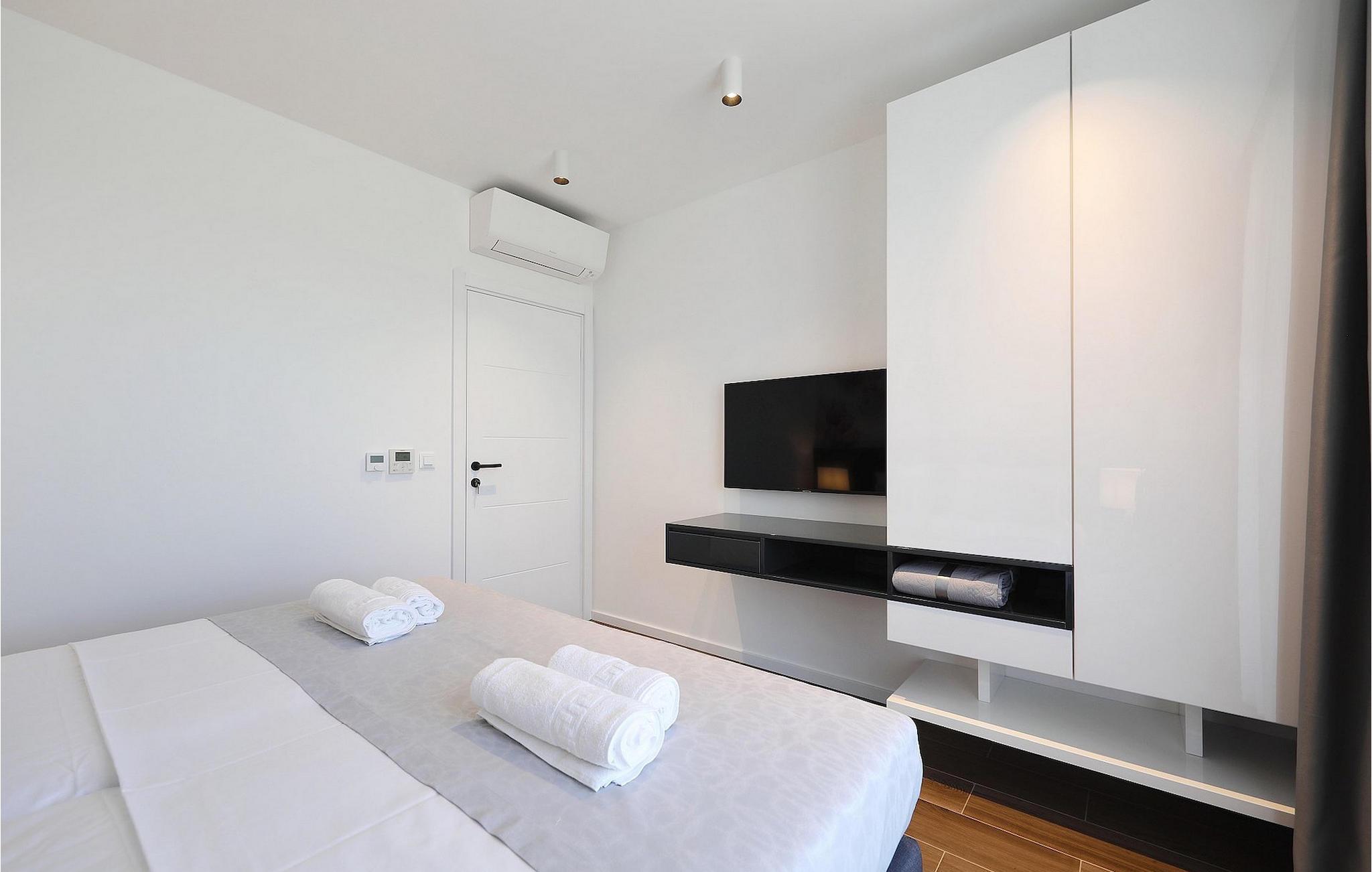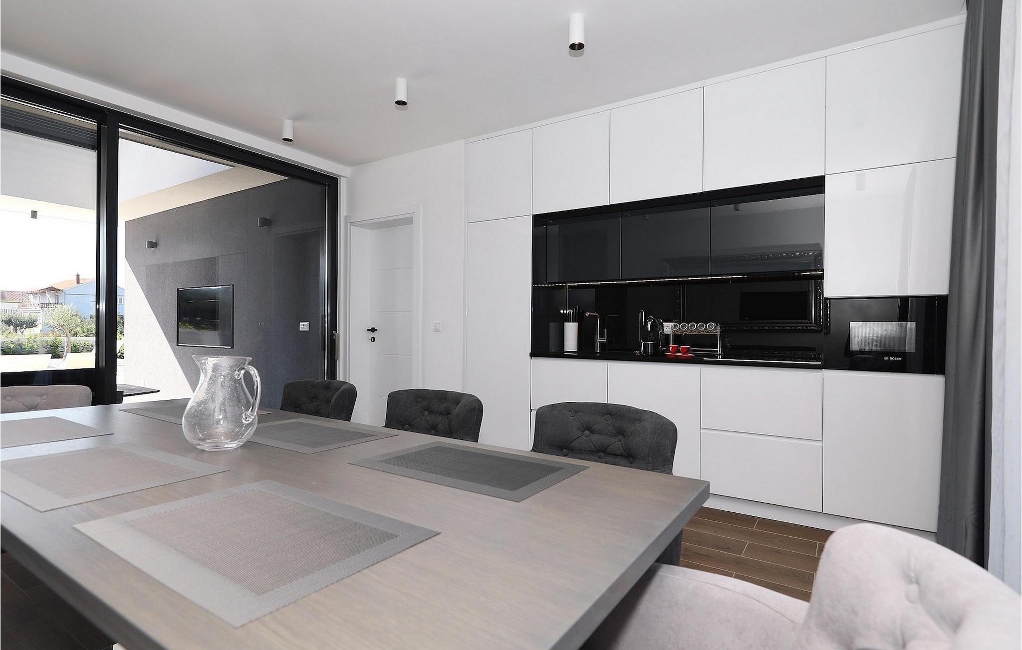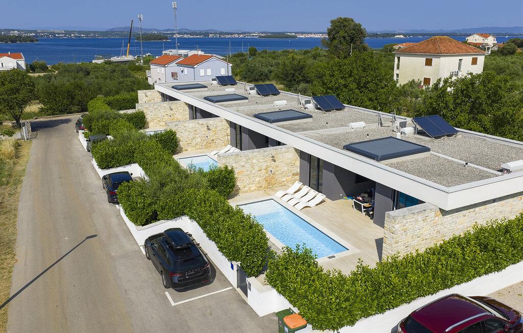 Die Villa K1 befindet sich in perfekter Lage auf der wunderschönen Insel Pasman in der Nähe von Zadar. Es ist das ideale Ferienhaus für kleine Familien oder Paare, die ihren Urlaub gemeinsam verbringen möchten. Die Villa verfügt über 3 Schlafzimmer, jedes mit TV und Klimaanlage. Zwei der Schlafzimmer verfügen über Doppelbetten, während das dritte über 2 Einzelbetten verfügt, die zu einem Doppelbett zusammengestellt werden können. Es gibt eine moderne, voll ausgestattete Küche mit Essbereich. Der Essbereich führt zum Loungebereich im Freien, der zum Entspannen einlädt und mit einem Sat-TV ausgestattet ist. Für Erfrischung sorgt der private Pool mit Liegestühlen, auf denen Sie sich im Sommer perfekt bräunen können. Die Villa ist Teil eines Komplexes von 4 Villen. Alle Villen sind gleich und haben identische Ausstattung. Wenn Sie also eine größere Gruppe sind, können Sie mehr als eine Villa mieten. Die Villen sind voll klimatisiert und verfügen über kostenfreies WLAN.Die Insel Pašman ist eine charmante Insel in der Nähe von Zadar und Biograd. Es ist eine wunderschöne Insel mit einer Fülle von Kräutern und Pinien, die für die intensiven und unwiderstehlichen mediterranen Düfte in der Luft verantwortlich sind. Die Insel ist nicht nur für ihre wunderschöne Natur und Strände bekannt, sondern auch für ihr reiches Kulturerbe und Architektur, die bis ins 12. Jahrhundert nach Christus zurückreicht. Die Insel ist auf jeden Fall einen Besuch wert und über eine Brücke mit der Insel Ugljan verbunden, sodass es noch mehr zu entdecken gibt.