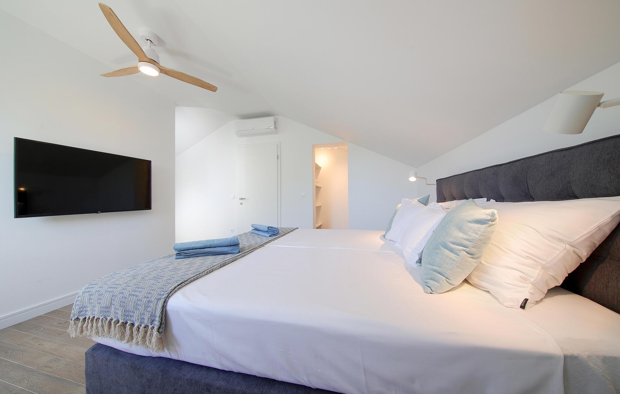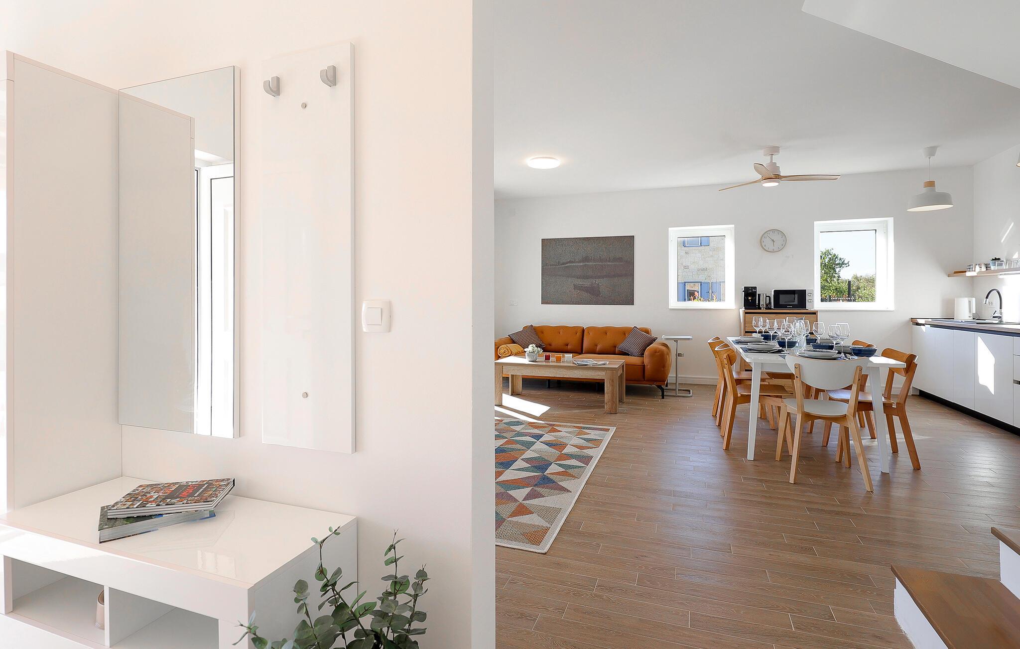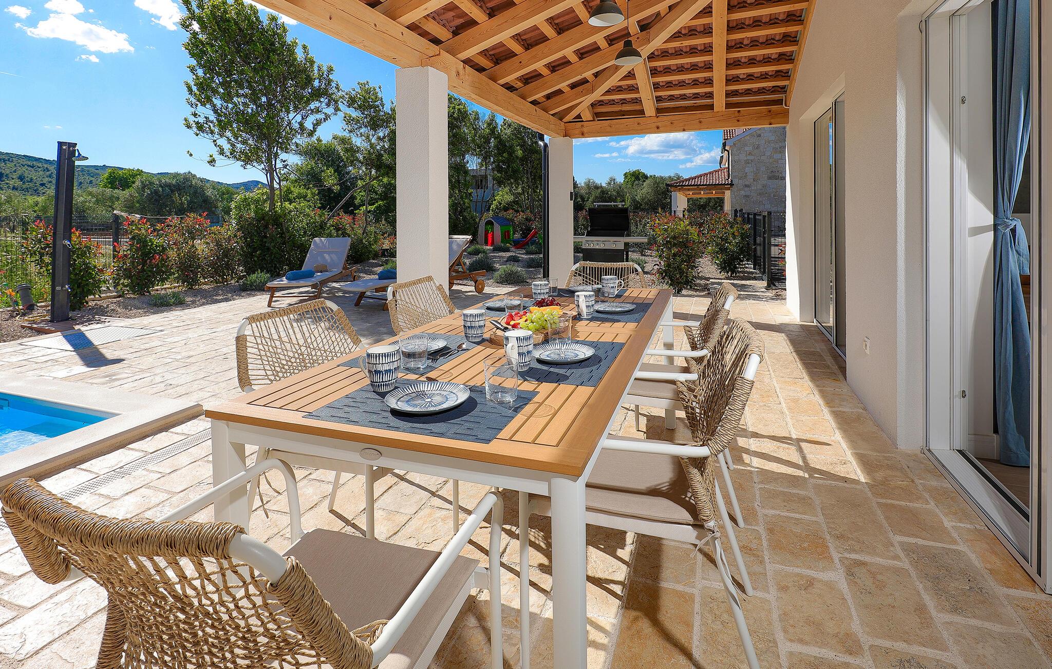 Lyst og moderne feriehus med privat pool nær stranden.