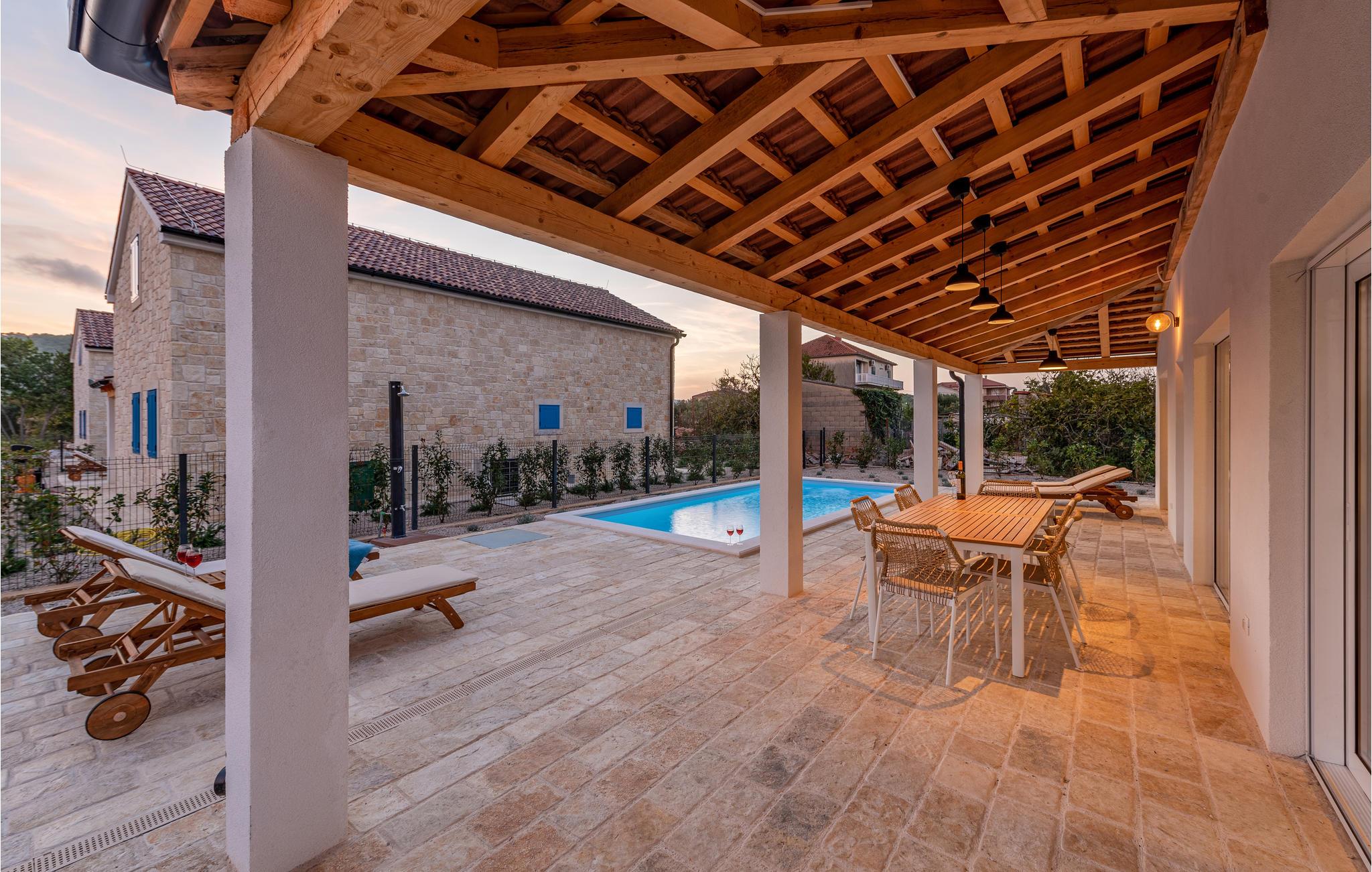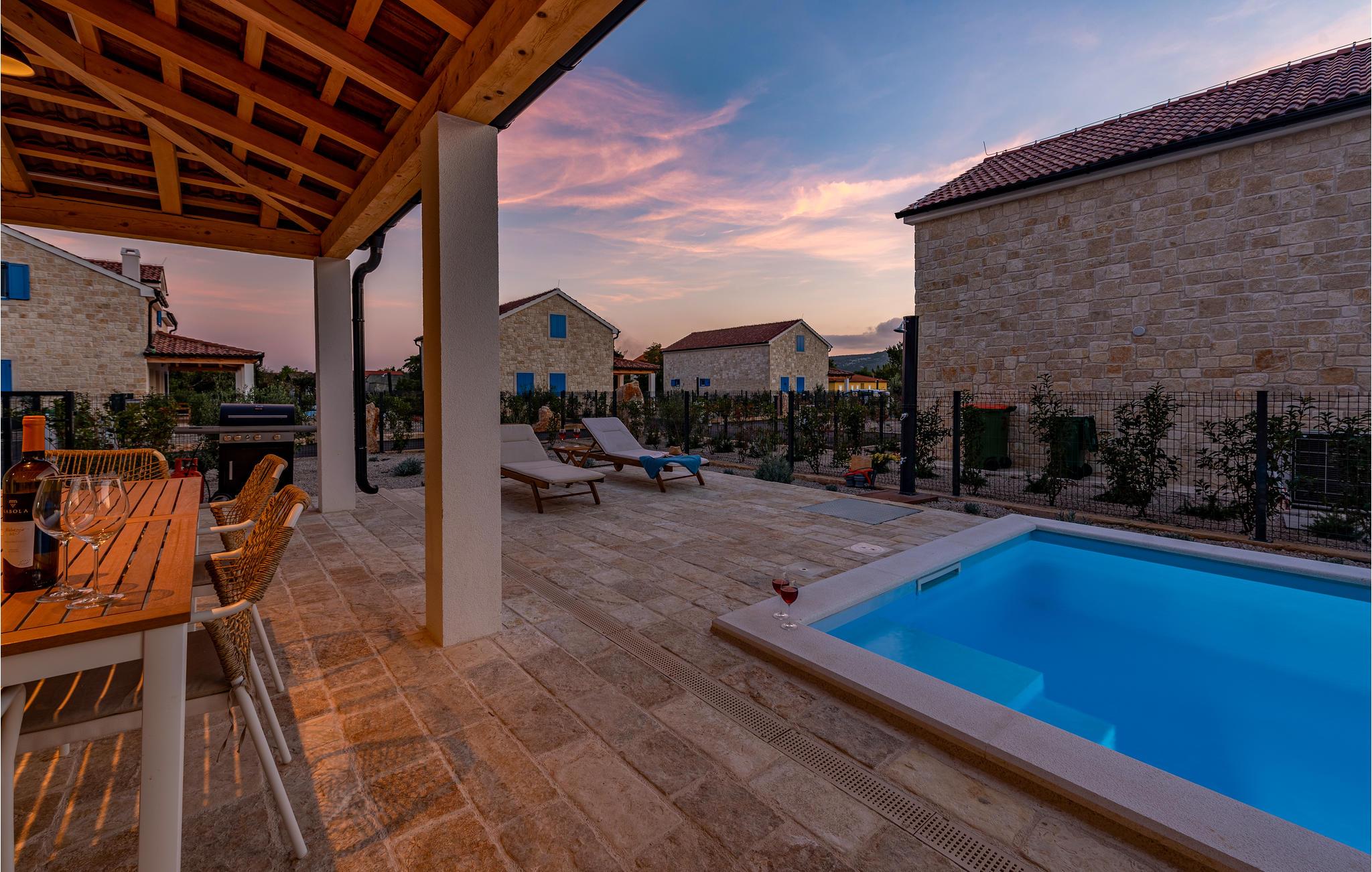 Glæd jer til en fantastisk familieferie i dette komfortable stenhus. Den fine indretning og de store rum skaber en skøn atmosfære, hvor I kan føle jer hjemme og bare slappe af. I kommer ikke til at mangle noget her, og efter rolige nætter i soveværelserne kan I samles til morgenmad i stuen eller på terrassen. Nyd morgenkaffen samt nogle lækre lokale råvarer fra området og læn jer derefter tilbage i liggestolene, mens børnene plasker rundt i poolen. Hvis I rejse med en anden familie, er der andre identiske huse i nabolaget.