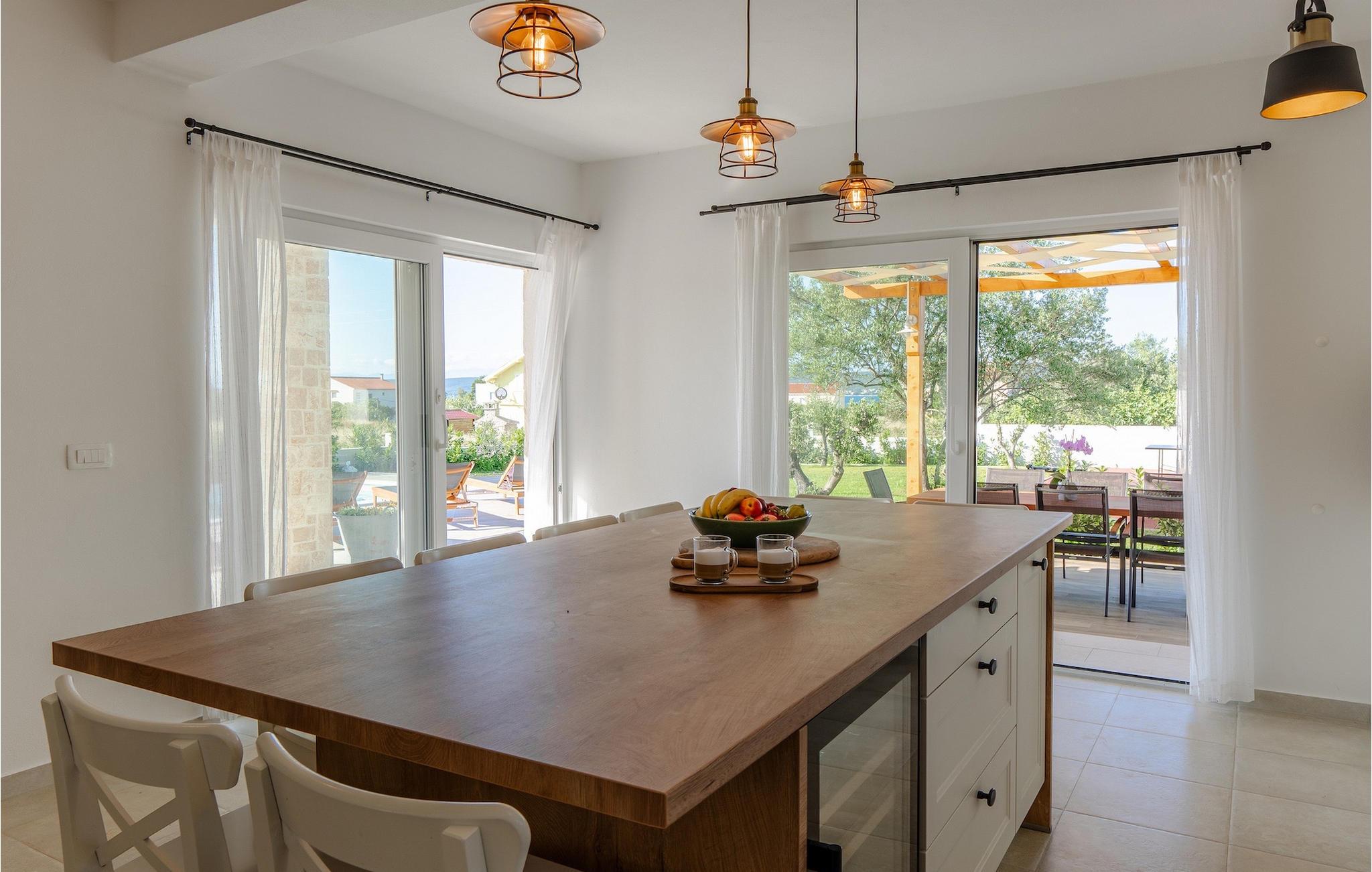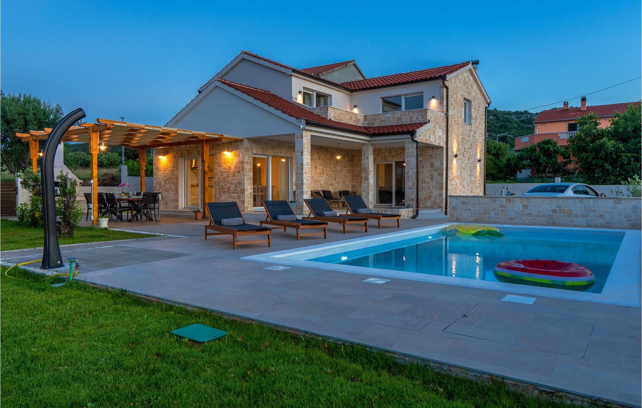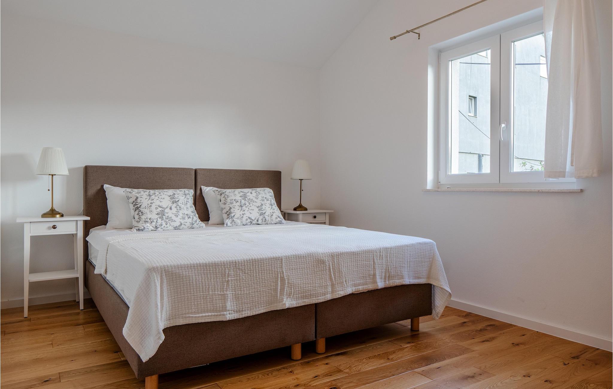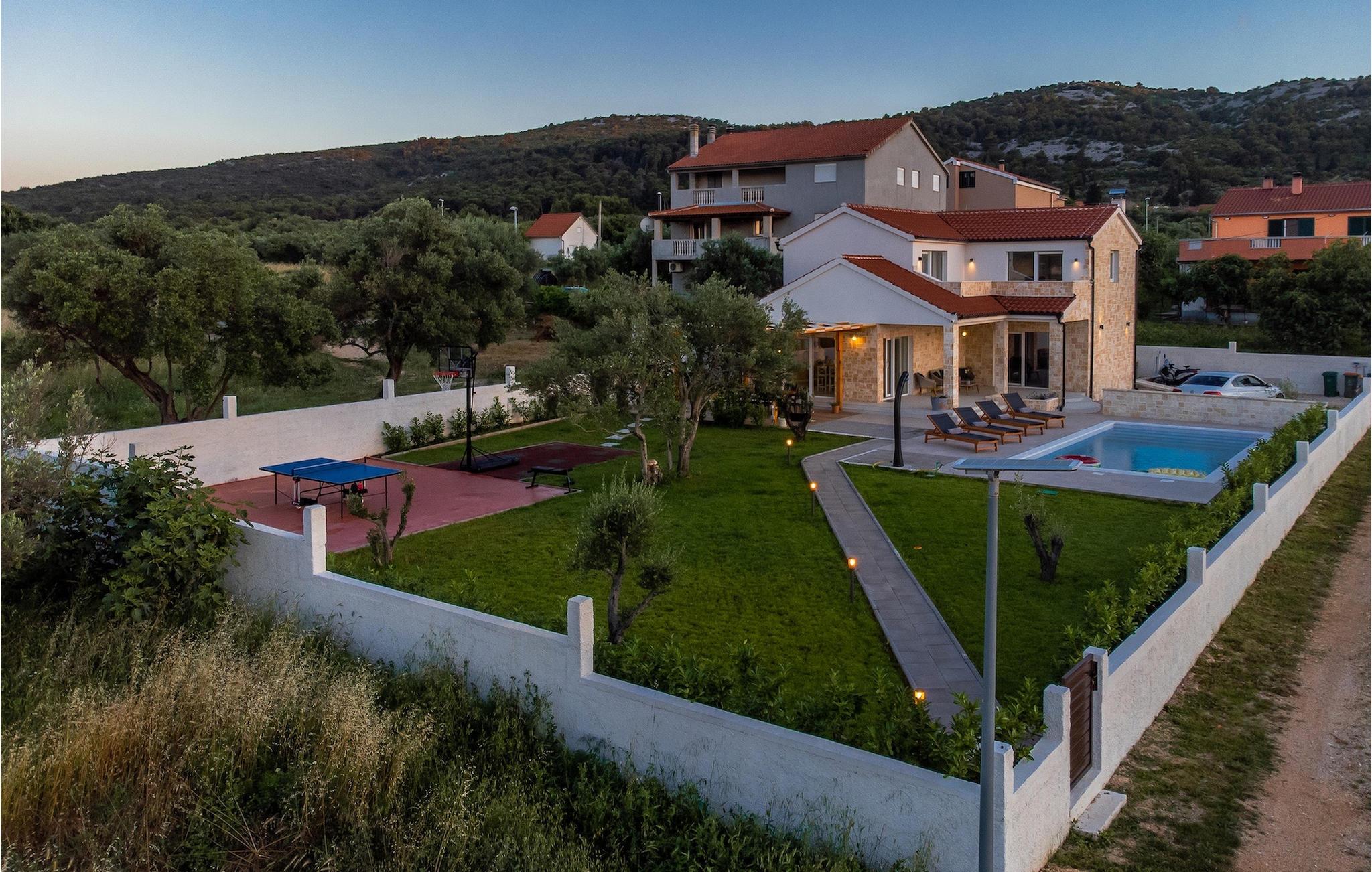 Tre lyse og komfortable værelser med aircondition er placeret på første sal. Et soveværelse har en dobbeltseng og eget badeværelse. De to andre har en dobbeltseng, som i et af værelserne kan skilles ad til to enkeltsenge, hvis det er nødvendigt, og de benytter badeværelset, der er placeret ovenpå. To værelser har udgang til terrasse. I stueetagen finder du endnu et soveværelse med aircondition med en seng til en person, der kan forvandles til en dobbeltseng efter anmodning og derfor giver mulighed for at rumme en ekstra person. Der er også et badeværelse mere, en opholdsstue med et tv og en pejs, som er forbundet med spisestuen og et fuldt udstyret køkken. Hele rummet har aircondition. Fra stuen har du adgang til haven, hvor du finder en swimmingpool og liggestole, hvor du kan slappe af og nyde den varme dalmatiske sol. Ved siden af huset er der en terrasse med spisebord, hvor du sammen med familie og venner kan nyde at smage de retter du har tilberedt på grillen, som også står til din rådighed. For gæster, der leder efter en aktiv ferie, er der et bordtennisbord og en basketballkurv til rådighed. Ejendommen er helt indhegnet og har privat parkering til 4 biler. Book din bolig i Villa Holiday Home Bodula og tilbring en afslappende ferie med familie og venner.Villa Holiday Home Bodula ligger på øen Pašman i Zadar-øgruppen. Du kan nå øen med færge fra Zadar eller Biograd. Det er en smuk ø med rige urter og fyrretræer, der er ansvarlige for de intense og uimodståelige middelhavsdufte i luften. Øen er dog ikke kun kendt for sin smukke natur og strande, men også for sin rige kultur og arkitektur helt tilbage til det 12. århundrede. Øen er bestemt et besøg værd, og den er forbundet med øen Ugljan med en bro, så der er meget mere at udforske. Pašman-kanalen er kendt for sit ekstremt rene hav på grund af havstrømmene i området. De nærmeste strande ligger kun en kort gåtur fra villaen. Pašman er et godt valg for fans af ekstremsport og cyklister, hvilket er en god måde at udforske denne øs naturlige skønhed. Vi anbefaler dig også at besøge nærliggende byer som Zadar, Nin eller Šibenik. Hvis du er i Zadar, så besøg kirken St. Donat, Salutation to the Sun og Havorgel. I Nin finder du smukke sandstrande, en saltpande og helbredende mudder. Besøg forlystelsesparken i Biograd, og er du naturelsker, så gå ikke glip af en tur til naturparken Vrana-søen, og nationalparkerne Kornati, Krka eller Paklenica.