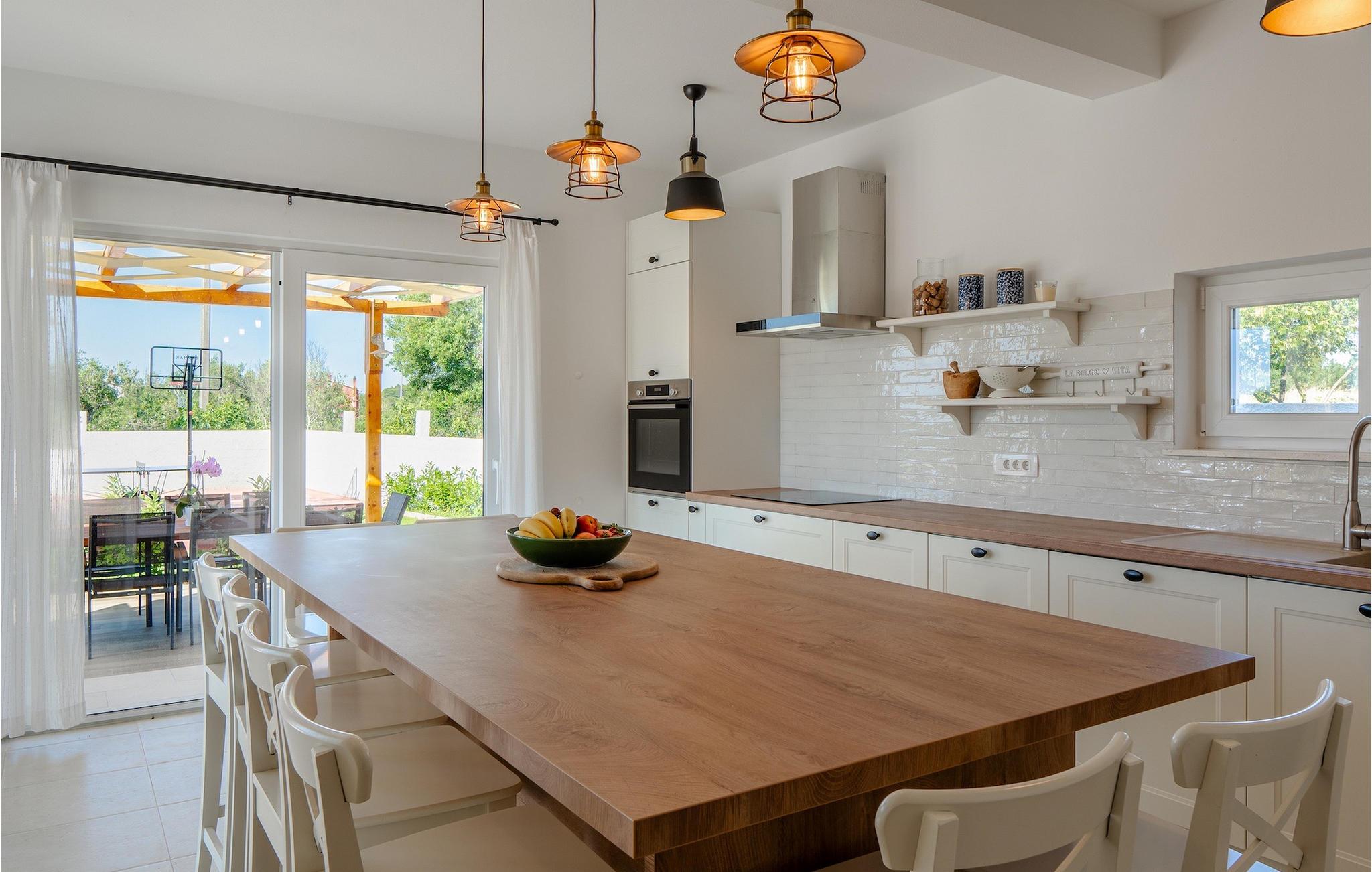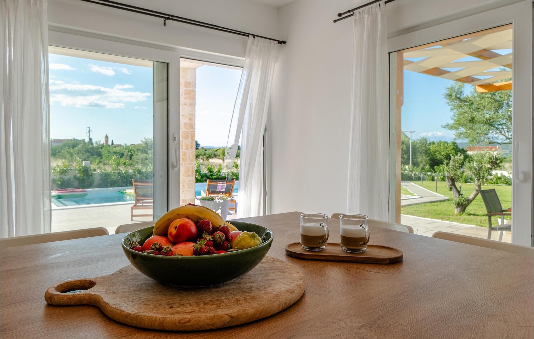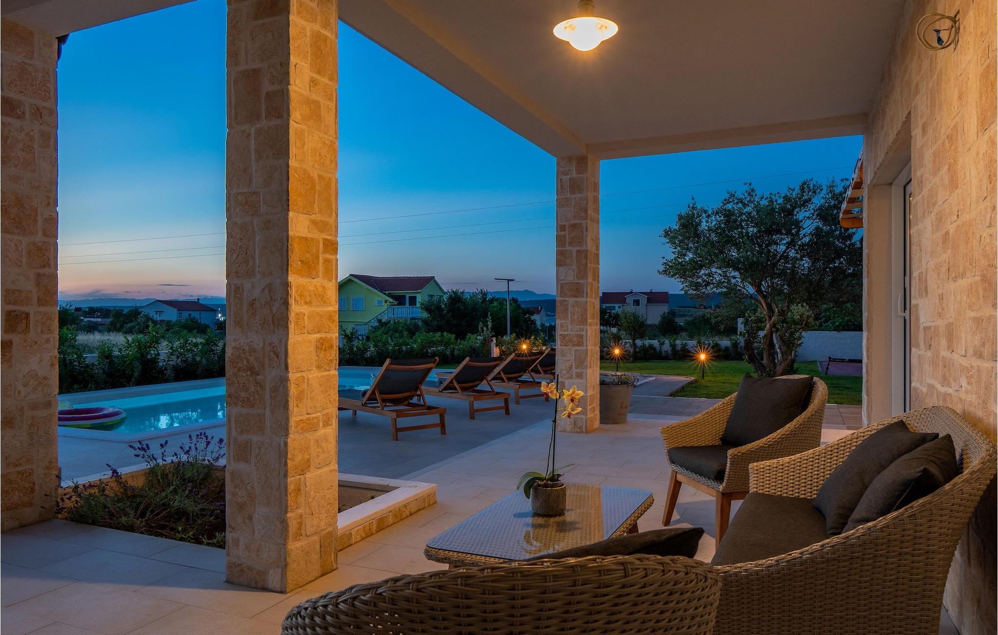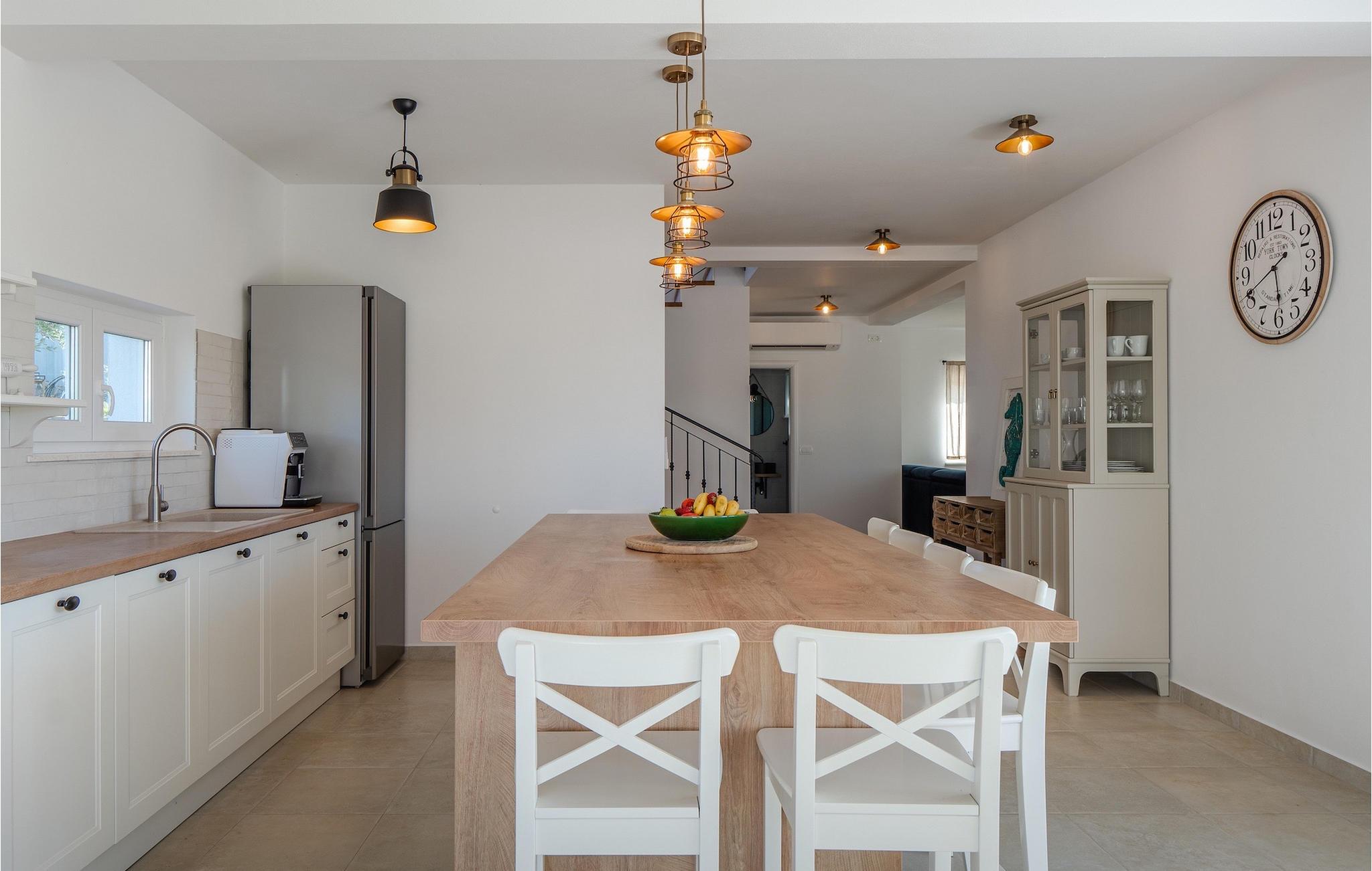 Tre lyse og komfortable værelser med aircondition er placeret på første sal. Et soveværelse har en dobbeltseng og eget badeværelse. De to andre har en dobbeltseng, som i et af værelserne kan skilles ad til to enkeltsenge, hvis det er nødvendigt, og de benytter badeværelset, der er placeret ovenpå. To værelser har udgang til terrasse. I stueetagen finder du endnu et soveværelse med aircondition med en seng til en person, der kan forvandles til en dobbeltseng efter anmodning og derfor giver mulighed for at rumme en ekstra person. Der er også et badeværelse mere, en opholdsstue med et tv og en pejs, som er forbundet med spisestuen og et fuldt udstyret køkken. Hele rummet har aircondition. Fra stuen har du adgang til haven, hvor du finder en swimmingpool og liggestole, hvor du kan slappe af og nyde den varme dalmatiske sol. Ved siden af huset er der en terrasse med spisebord, hvor du sammen med familie og venner kan nyde at smage de retter du har tilberedt på grillen, som også står til din rådighed. For gæster, der leder efter en aktiv ferie, er der et bordtennisbord og en basketballkurv til rådighed. Ejendommen er helt indhegnet og har privat parkering til 4 biler. Book din bolig i Villa Holiday Home Bodula og tilbring en afslappende ferie med familie og venner.Villa Holiday Home Bodula ligger på øen Pašman i Zadar-øgruppen. Du kan nå øen med færge fra Zadar eller Biograd. Det er en smuk ø med rige urter og fyrretræer, der er ansvarlige for de intense og uimodståelige middelhavsdufte i luften. Øen er dog ikke kun kendt for sin smukke natur og strande, men også for sin rige kultur og arkitektur helt tilbage til det 12. århundrede. Øen er bestemt et besøg værd, og den er forbundet med øen Ugljan med en bro, så der er meget mere at udforske. Pašman-kanalen er kendt for sit ekstremt rene hav på grund af havstrømmene i området. De nærmeste strande ligger kun en kort gåtur fra villaen. Pašman er et godt valg for fans af ekstremsport og cyklister, hvilket er en god måde at udforske denne øs naturlige skønhed. Vi anbefaler dig også at besøge nærliggende byer som Zadar, Nin eller Šibenik. Hvis du er i Zadar, så besøg kirken St. Donat, Salutation to the Sun og Havorgel. I Nin finder du smukke sandstrande, en saltpande og helbredende mudder. Besøg forlystelsesparken i Biograd, og er du naturelsker, så gå ikke glip af en tur til naturparken Vrana-søen, og nationalparkerne Kornati, Krka eller Paklenica.