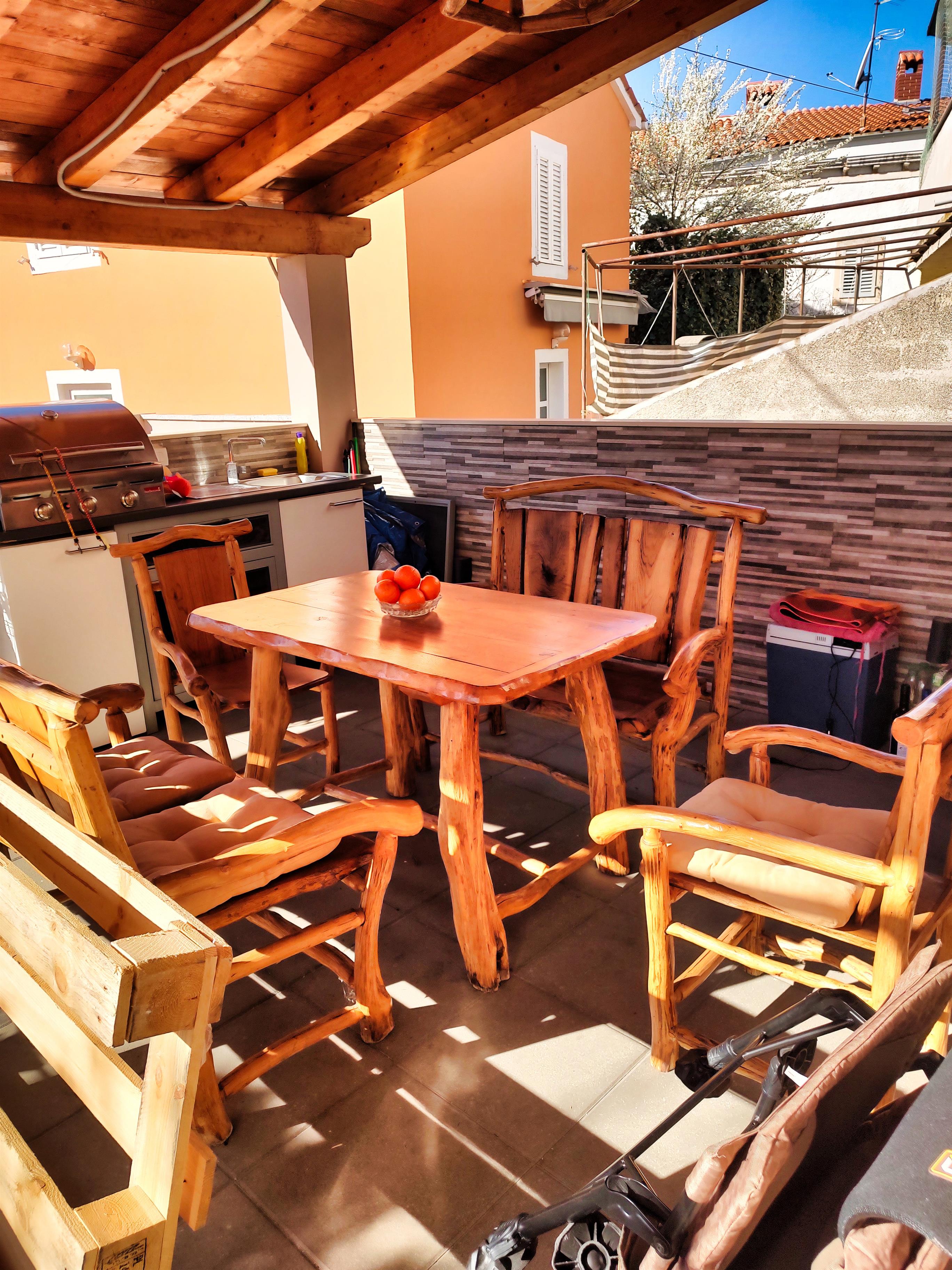 The Jacuzzi offers you in sunny days, with a cocktail in your hand, pleasant cooling and socializing. With only a few steps away from the Jacuzzi, enjoy the sunny hours in the covered seating area with outdoor kitchen and BBQ.