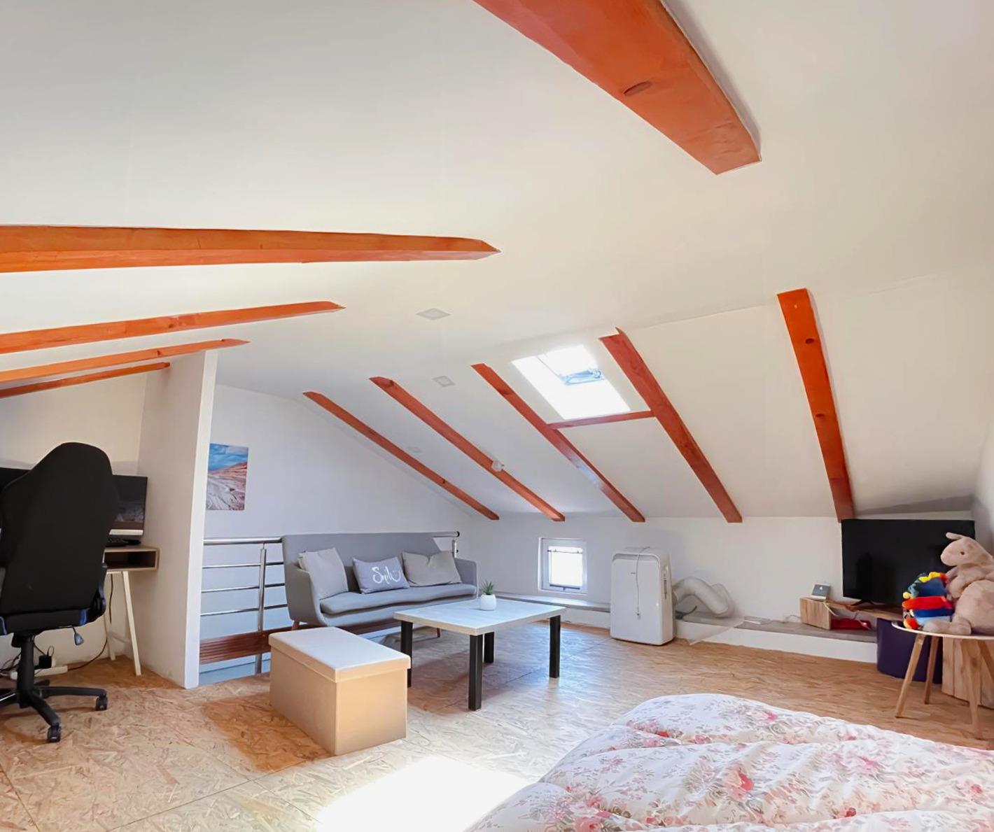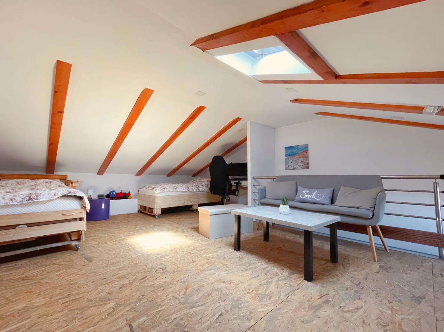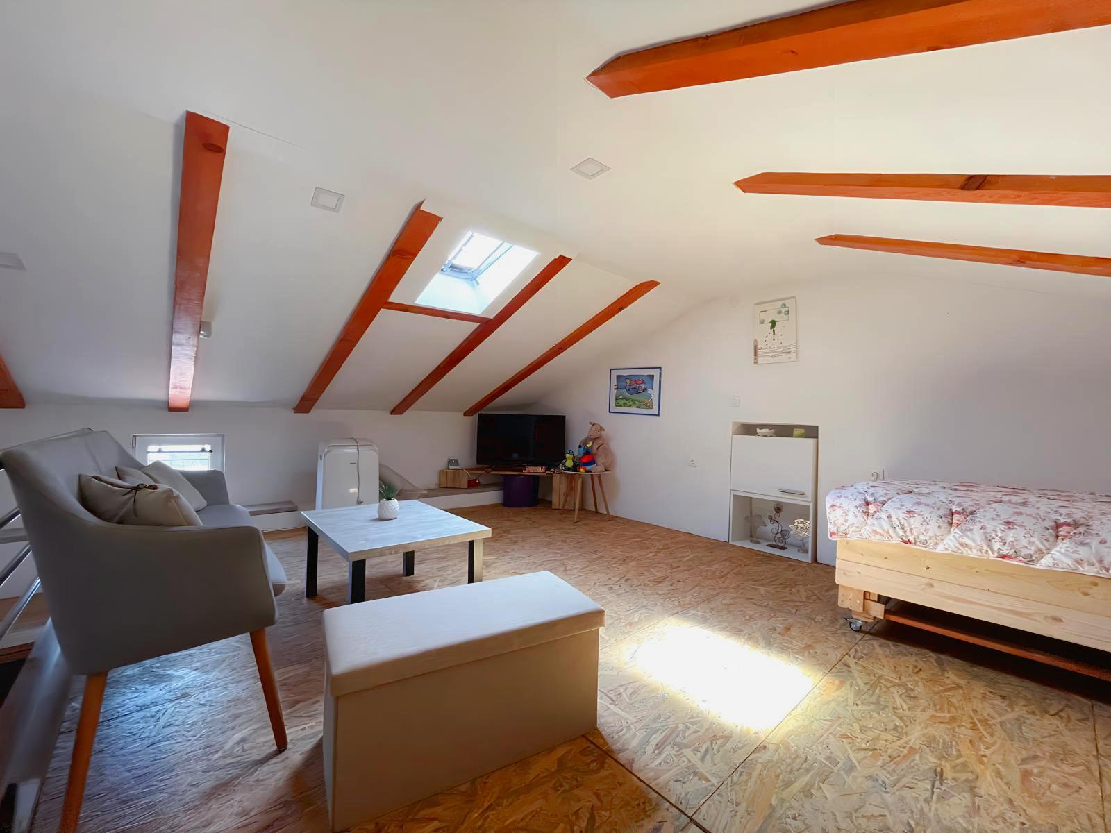 Our vacation house Maja offers you on three floors a kitchen-living room, bathroom, 2 bedrooms and in the attic a large living area with another 2 full sleeping possibilities.