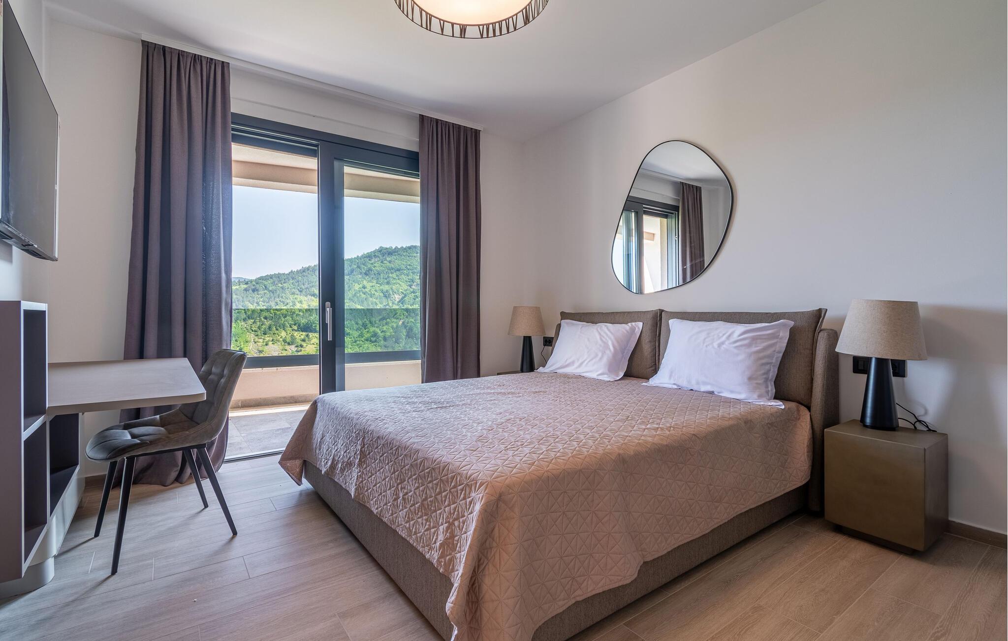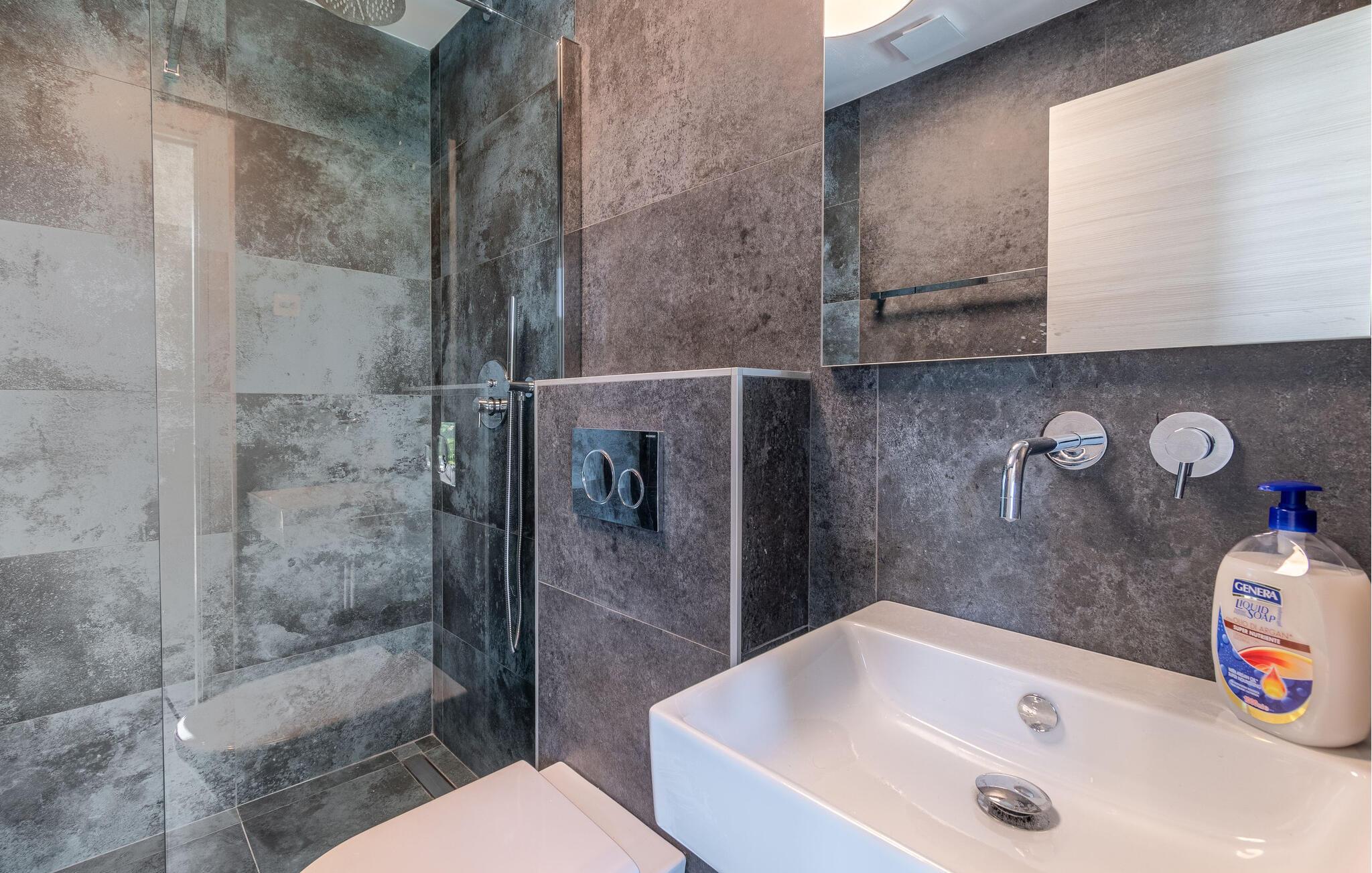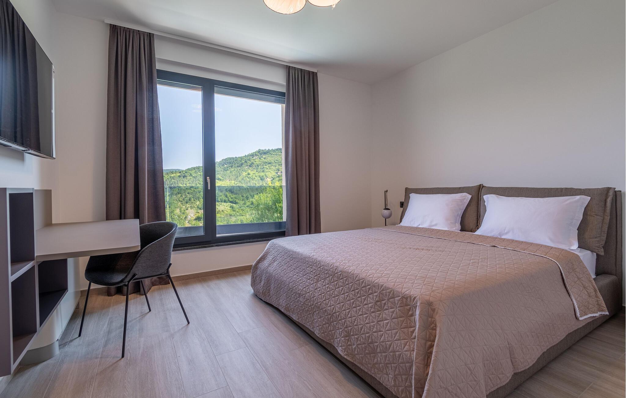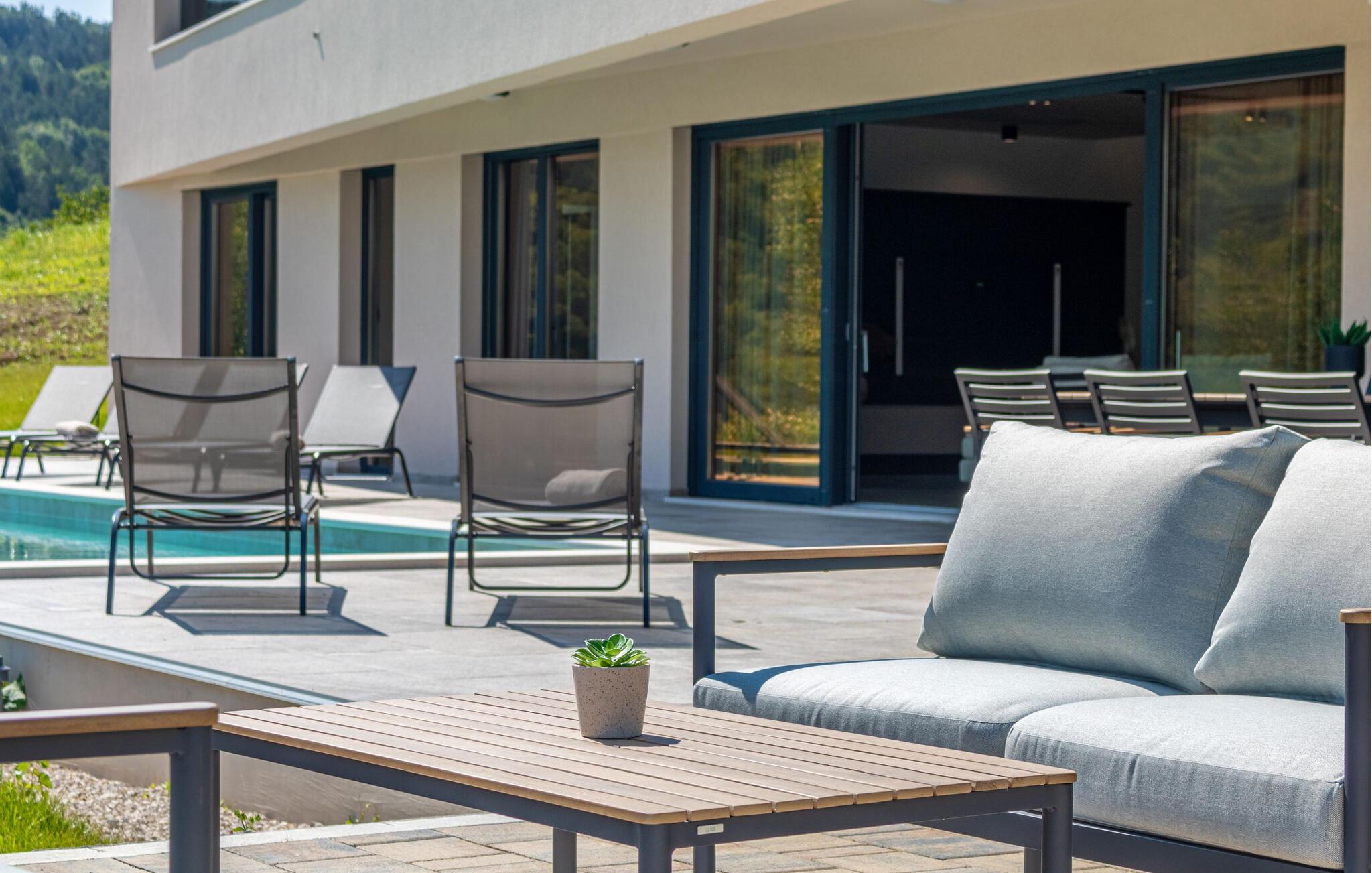 Dette stilfulde feriehus nær Pazin lægger op til at nyde livet og have det rart med sit moderne design og komfortable møbler. Nyd afslappende timer på den solrige terrasse, som er udstyret med komfortable udendørsmøbler eller snup en frisk dukkert i poolen, som byder på en fantastisk udsigt over de omkringliggende grønne bakker. Begynd dagene med en afslappet morgenmad på den rummelige terrasse eller afslut aftenen med en grillmiddag. Husets åbne opholdsstue byder på masser af plads til at slappe af og et veludstyret køkken, hvor I kan lave mad sammen. Fitness kommer I heller ikke til at mangle. Brug fitnessrummet til at holde jer i form, mens I er på ferie.