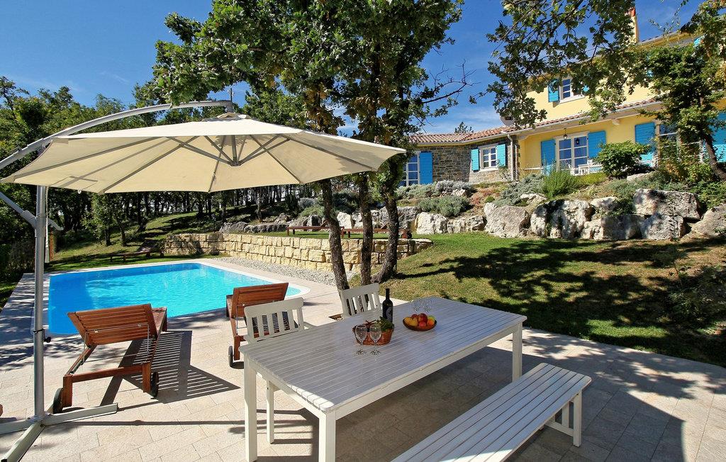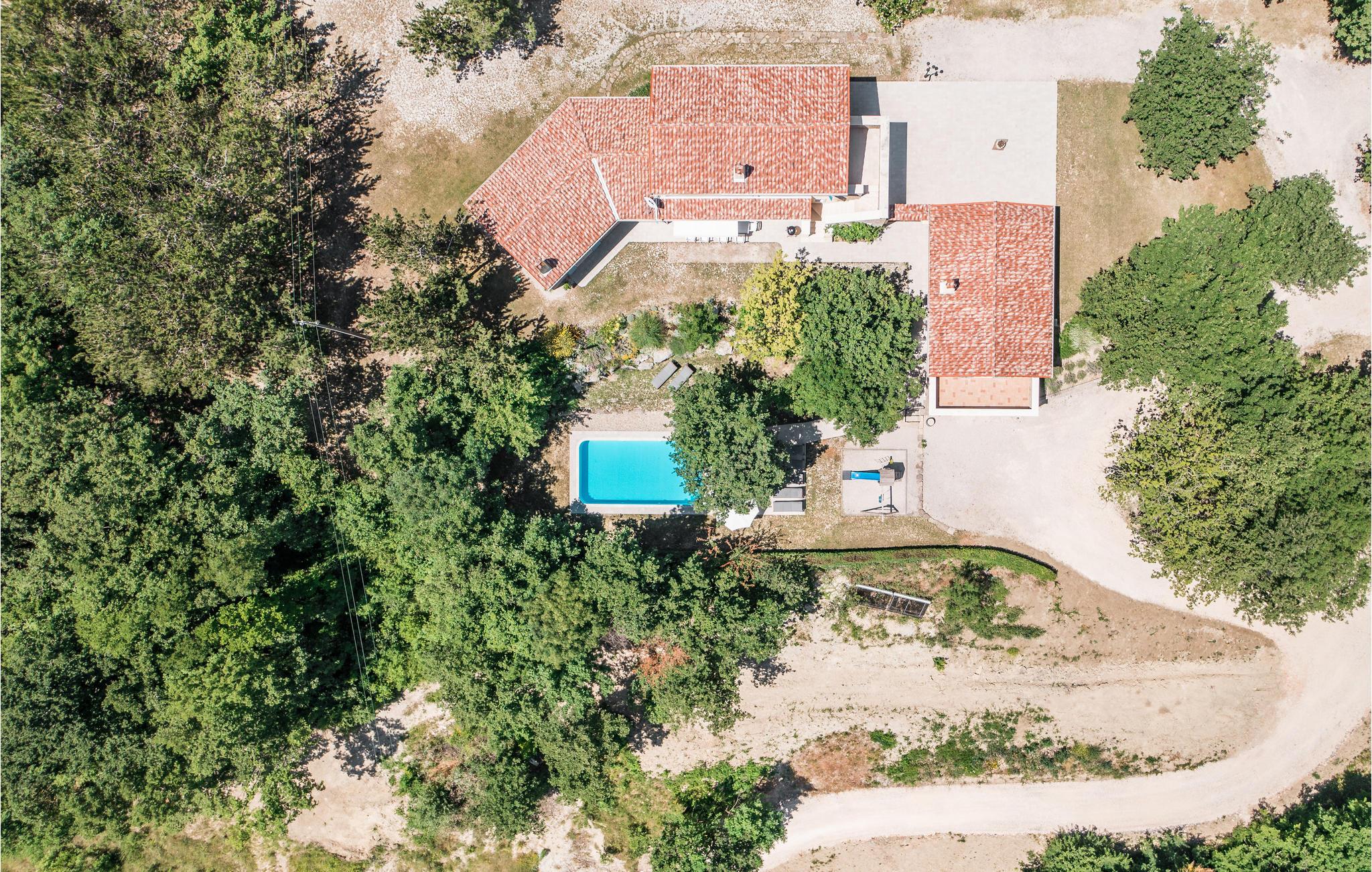 Dette specielle og moderne hus med pool ligger ude på landet, i et bakket område i den lille by Buici, ikke langt fra Pazin, omgivet af en betagende natur.