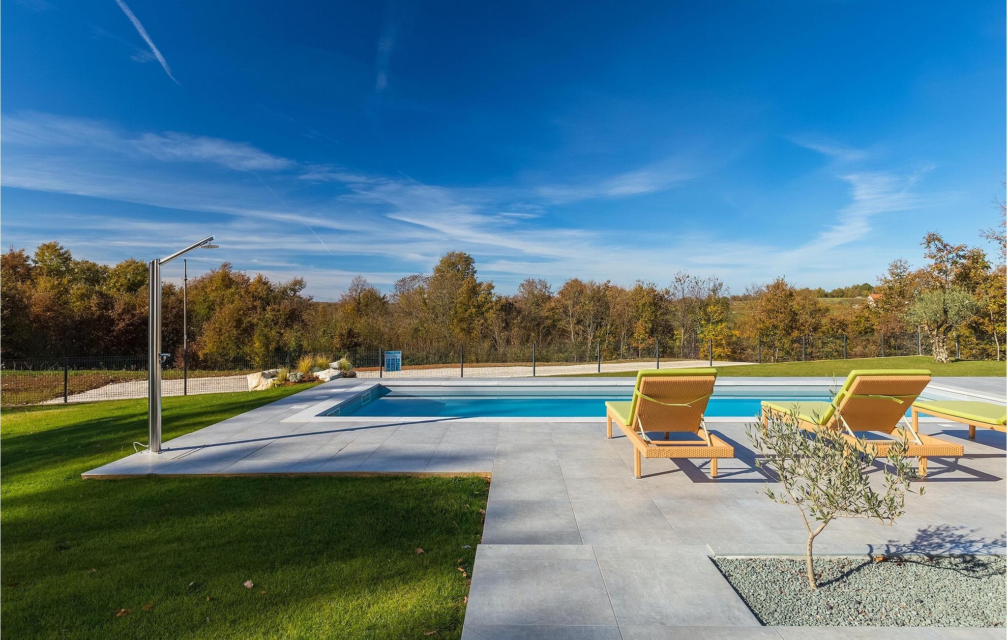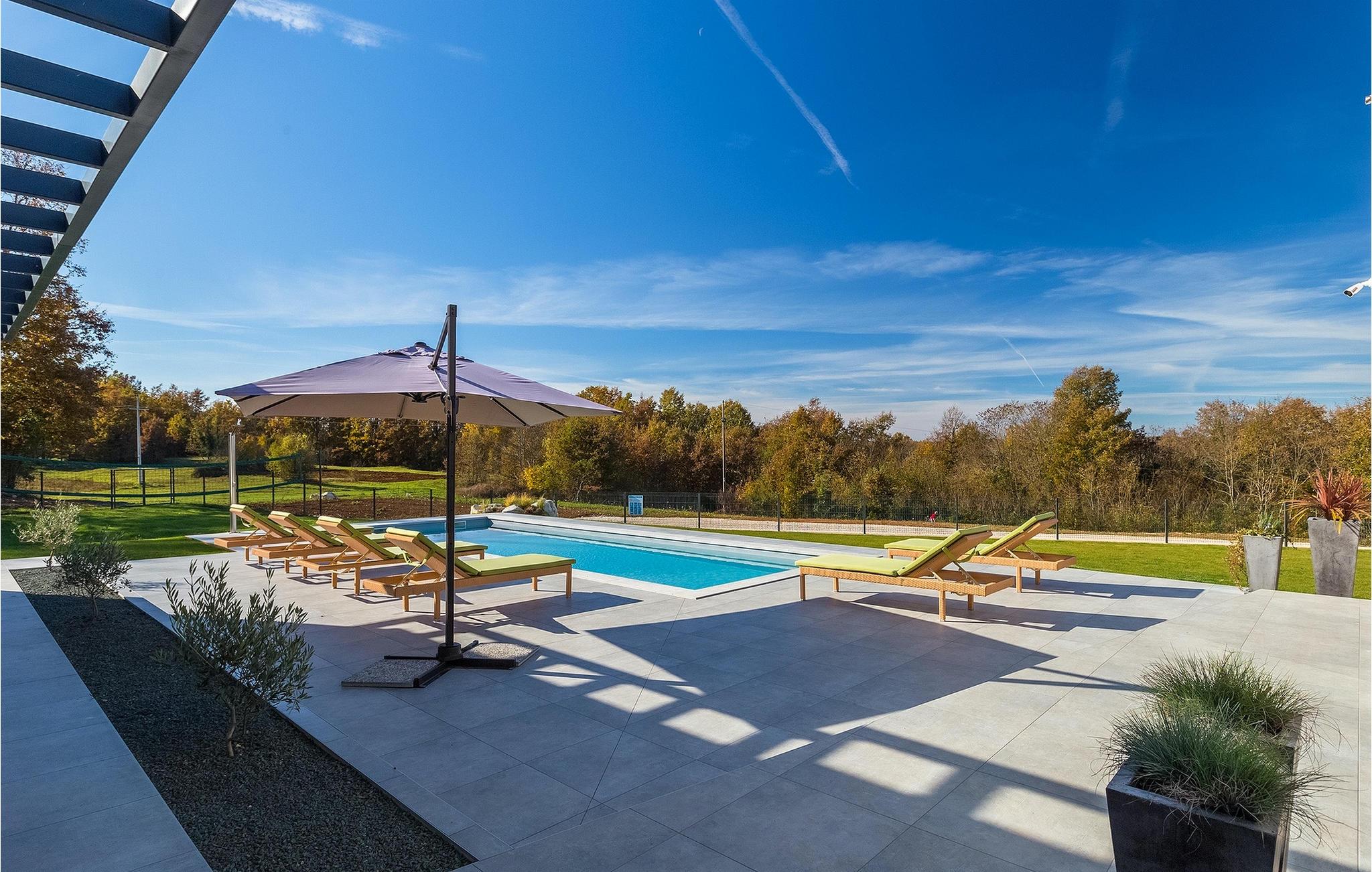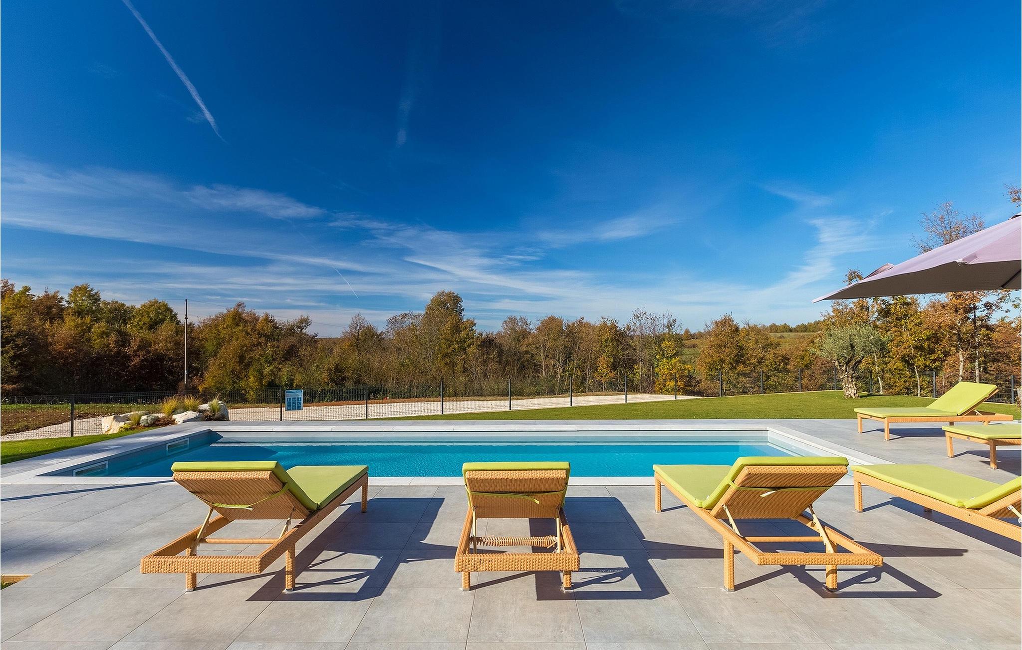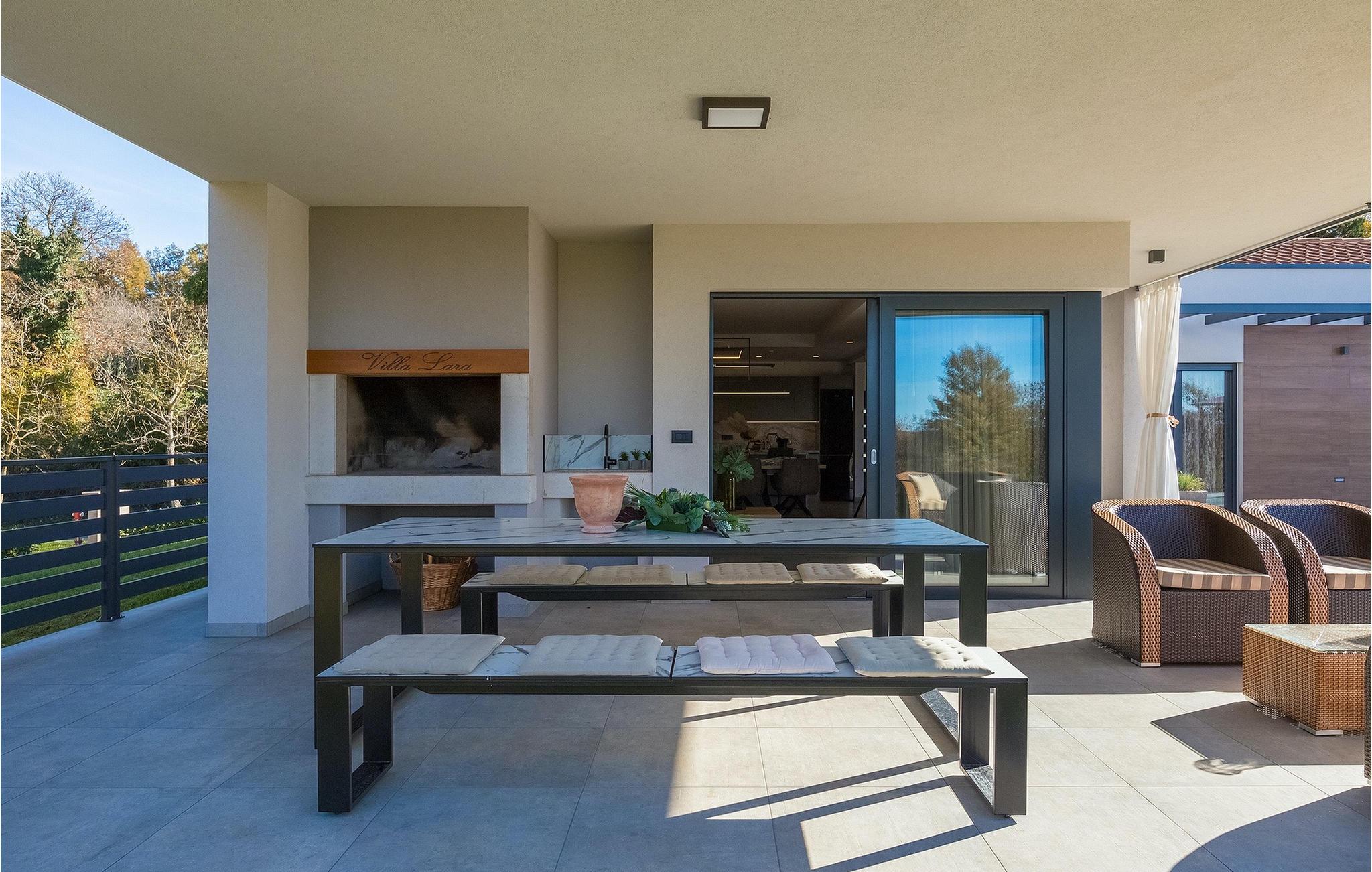 Den nybyggede Villa Lara Baksi, omgivet af natur, ligger i en stille landsby nær den maleriske by Gracisce. Den kan rumme op til 8 personer og er derfor perfekt til familier eller par. I det indre af den helt klimatiserede villa vil du bemærke, at der er brugt enkle farver, som virker beroligende. Den åbne opholds- og spiseafdeling er stilfuldt indrettet, hvor du vil opleve en harmonisk atmosfære. Det fuldt udstyrede køkken med en ø byder på masser af plads til at lave lækre måltider. Villaen har 4 komfortable soveværelser. Tre af dem har en dobbeltseng, tv og moderne ensuite badeværelse og en har en køjeseng. Udendørsområdet omfatter en helt indhegnet grøn have, hvor den private pool med liggestole og parasoller er placeret. Den overdækkede terrasse med siddepladser er perfekt til at nyde din morgenkaffe og den maleriske naturudsigt. Der er også en grill, som indbyder til dejlige grillaftener med dine kære. Børn kan more sig på den private legeplads. En volleyballbane er placeret på ejendommen - måske du får lyst til en volleyballkamp? 3 private parkeringspladser og internetadgang er også tilgængelige. Book Villa Lara Baksi og tilbring en uforglemmelig ferie, hvor ingen ønsker forbliver uopfyldt.Villa Lara Baksi ligger i den rolige landsby Mandalencici. I nærheden på en bakke ligger den maleriske by Gracisce, centrum af den enslydende kommune. Du vil opleve middelalderlig stil, mens du går gennem gyderne i den lille by. På vejen møder du gamle bygninger, paladser og pladser, der helt sikkert vil fortrylle dig. Istriens grønne uendelige bakkede landskaber inviterer dig til at tage på vandre- og cykelture. En kort køretur væk ligger byen Pazin. Det administrative centrum i regionen Istrien blev kaldt "Istriens hjerte" i det 19. århundrede på grund af dets centrale beliggenhed. Det tilbyder en række seværdigheder, som du skal besøge. På cirka 40 minutters kørsel kan du nå de berømte kystbyer Rovinj, Porec og Rabac, hvor du kan finde en bred vifte af caféer, restauranter, seværdigheder, sportsfaciliteter og smukke strande og bugter.