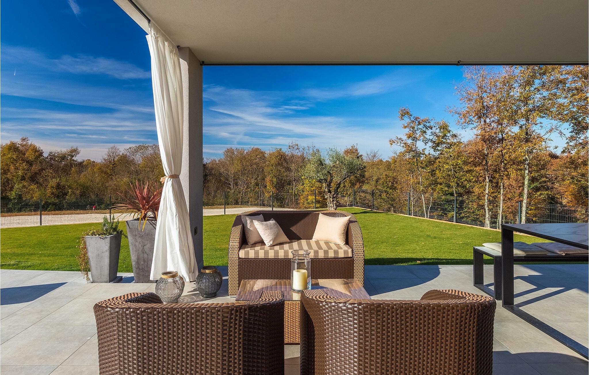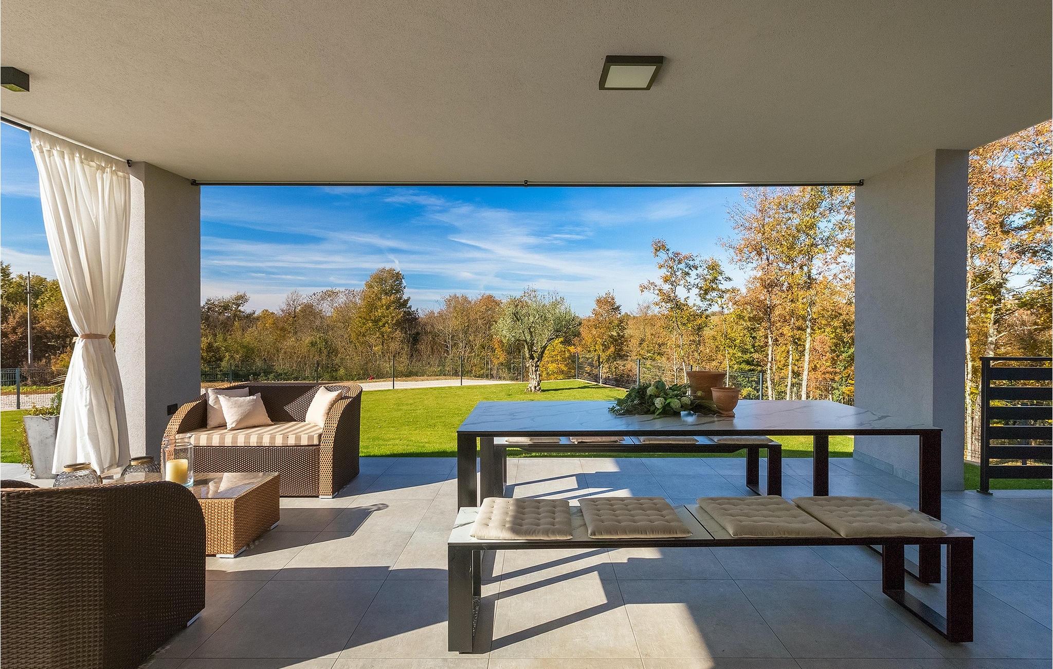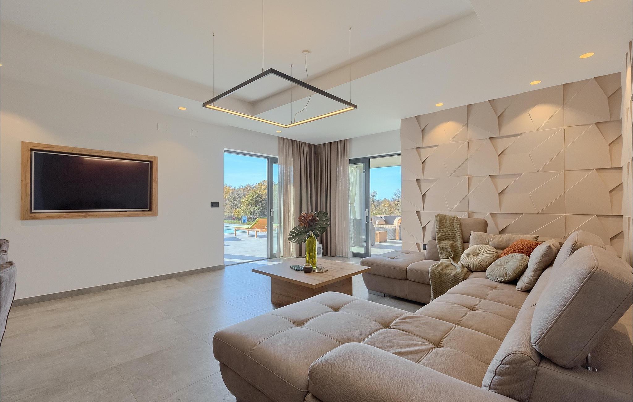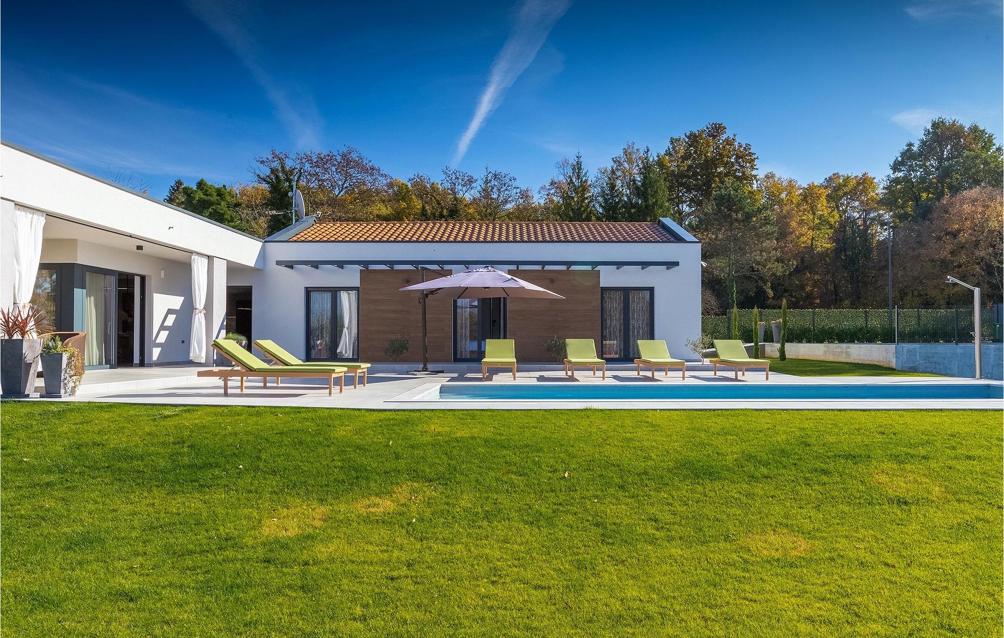 Den nybyggede Villa Lara Baksi, omgivet af natur, ligger i en stille landsby nær den maleriske by Gracisce. Den kan rumme op til 8 personer og er derfor perfekt til familier eller par. I det indre af den helt klimatiserede villa vil du bemærke, at der er brugt enkle farver, som virker beroligende. Den åbne opholds- og spiseafdeling er stilfuldt indrettet, hvor du vil opleve en harmonisk atmosfære. Det fuldt udstyrede køkken med en ø byder på masser af plads til at lave lækre måltider. Villaen har 4 komfortable soveværelser. Tre af dem har en dobbeltseng, tv og moderne ensuite badeværelse og en har en køjeseng. Udendørsområdet omfatter en helt indhegnet grøn have, hvor den private pool med liggestole og parasoller er placeret. Den overdækkede terrasse med siddepladser er perfekt til at nyde din morgenkaffe og den maleriske naturudsigt. Der er også en grill, som indbyder til dejlige grillaftener med dine kære. Børn kan more sig på den private legeplads. En volleyballbane er placeret på ejendommen - måske du får lyst til en volleyballkamp? 3 private parkeringspladser og internetadgang er også tilgængelige. Book Villa Lara Baksi og tilbring en uforglemmelig ferie, hvor ingen ønsker forbliver uopfyldt.Villa Lara Baksi ligger i den rolige landsby Mandalencici. I nærheden på en bakke ligger den maleriske by Gracisce, centrum af den enslydende kommune. Du vil opleve middelalderlig stil, mens du går gennem gyderne i den lille by. På vejen møder du gamle bygninger, paladser og pladser, der helt sikkert vil fortrylle dig. Istriens grønne uendelige bakkede landskaber inviterer dig til at tage på vandre- og cykelture. En kort køretur væk ligger byen Pazin. Det administrative centrum i regionen Istrien blev kaldt "Istriens hjerte" i det 19. århundrede på grund af dets centrale beliggenhed. Det tilbyder en række seværdigheder, som du skal besøge. På cirka 40 minutters kørsel kan du nå de berømte kystbyer Rovinj, Porec og Rabac, hvor du kan finde en bred vifte af caféer, restauranter, seværdigheder, sportsfaciliteter og smukke strande og bugter.