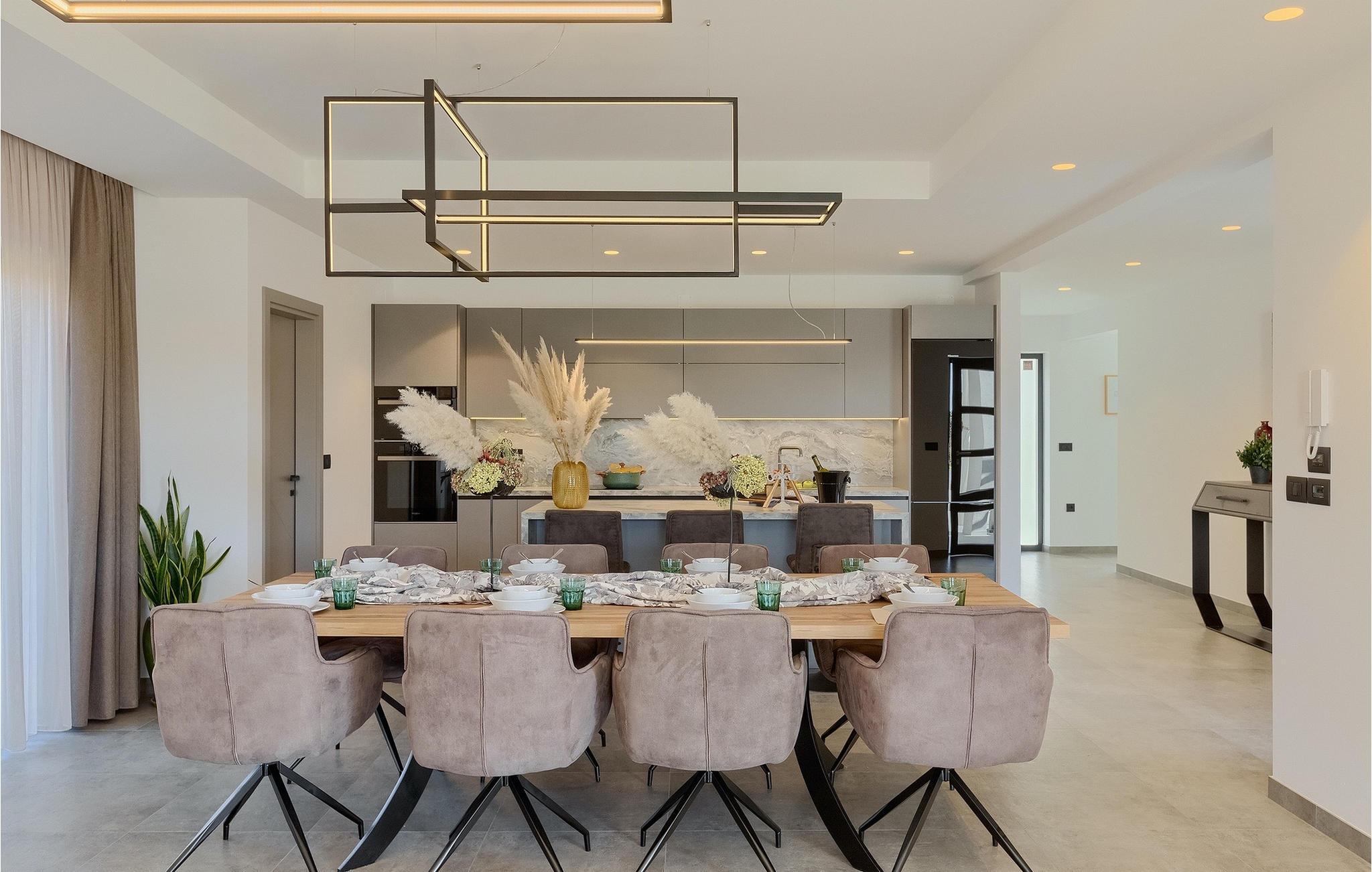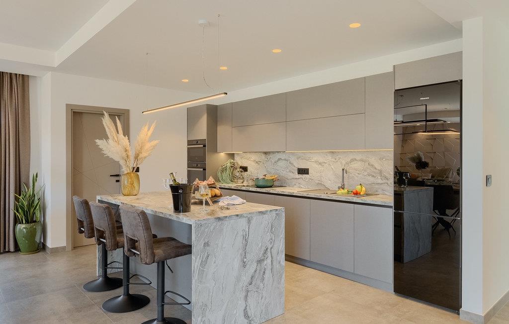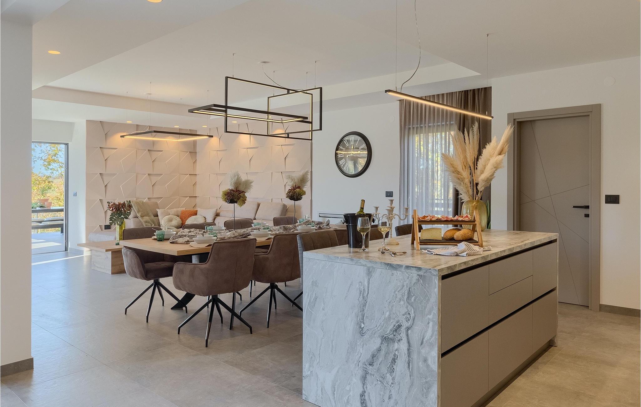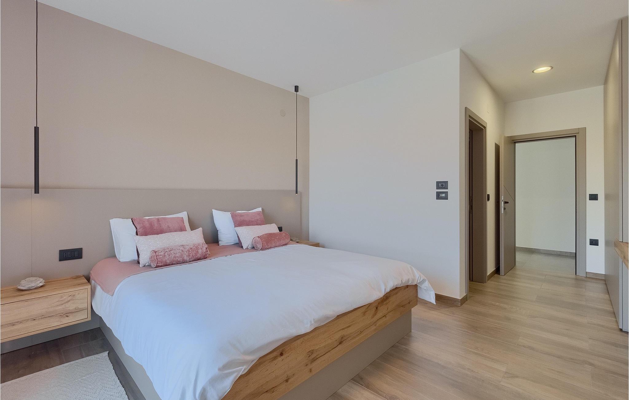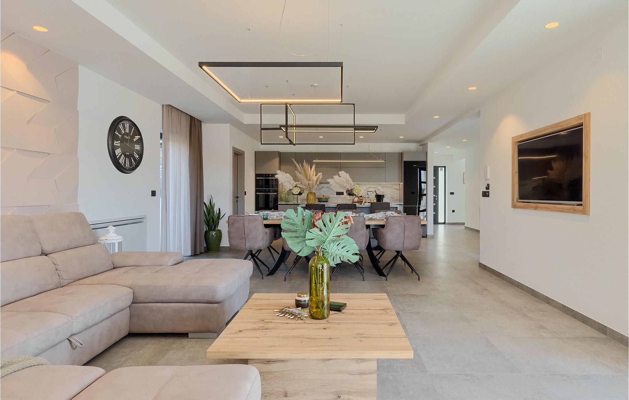 Den nybyggede Villa Lara Baksi, omgivet af natur, ligger i en stille landsby nær den maleriske by Gracisce. Den kan rumme op til 8 personer og er derfor perfekt til familier eller par. I det indre af den helt klimatiserede villa vil du bemærke, at der er brugt enkle farver, som virker beroligende. Den åbne opholds- og spiseafdeling er stilfuldt indrettet, hvor du vil opleve en harmonisk atmosfære. Det fuldt udstyrede køkken med en ø byder på masser af plads til at lave lækre måltider. Villaen har 4 komfortable soveværelser. Tre af dem har en dobbeltseng, tv og moderne ensuite badeværelse og en har en køjeseng. Udendørsområdet omfatter en helt indhegnet grøn have, hvor den private pool med liggestole og parasoller er placeret. Den overdækkede terrasse med siddepladser er perfekt til at nyde din morgenkaffe og den maleriske naturudsigt. Der er også en grill, som indbyder til dejlige grillaftener med dine kære. Børn kan more sig på den private legeplads. En volleyballbane er placeret på ejendommen - måske du får lyst til en volleyballkamp? 3 private parkeringspladser og internetadgang er også tilgængelige. Book Villa Lara Baksi og tilbring en uforglemmelig ferie, hvor ingen ønsker forbliver uopfyldt.Villa Lara Baksi ligger i den rolige landsby Mandalencici. I nærheden på en bakke ligger den maleriske by Gracisce, centrum af den enslydende kommune. Du vil opleve middelalderlig stil, mens du går gennem gyderne i den lille by. På vejen møder du gamle bygninger, paladser og pladser, der helt sikkert vil fortrylle dig. Istriens grønne uendelige bakkede landskaber inviterer dig til at tage på vandre- og cykelture. En kort køretur væk ligger byen Pazin. Det administrative centrum i regionen Istrien blev kaldt "Istriens hjerte" i det 19. århundrede på grund af dets centrale beliggenhed. Det tilbyder en række seværdigheder, som du skal besøge. På cirka 40 minutters kørsel kan du nå de berømte kystbyer Rovinj, Porec og Rabac, hvor du kan finde en bred vifte af caféer, restauranter, seværdigheder, sportsfaciliteter og smukke strande og bugter.