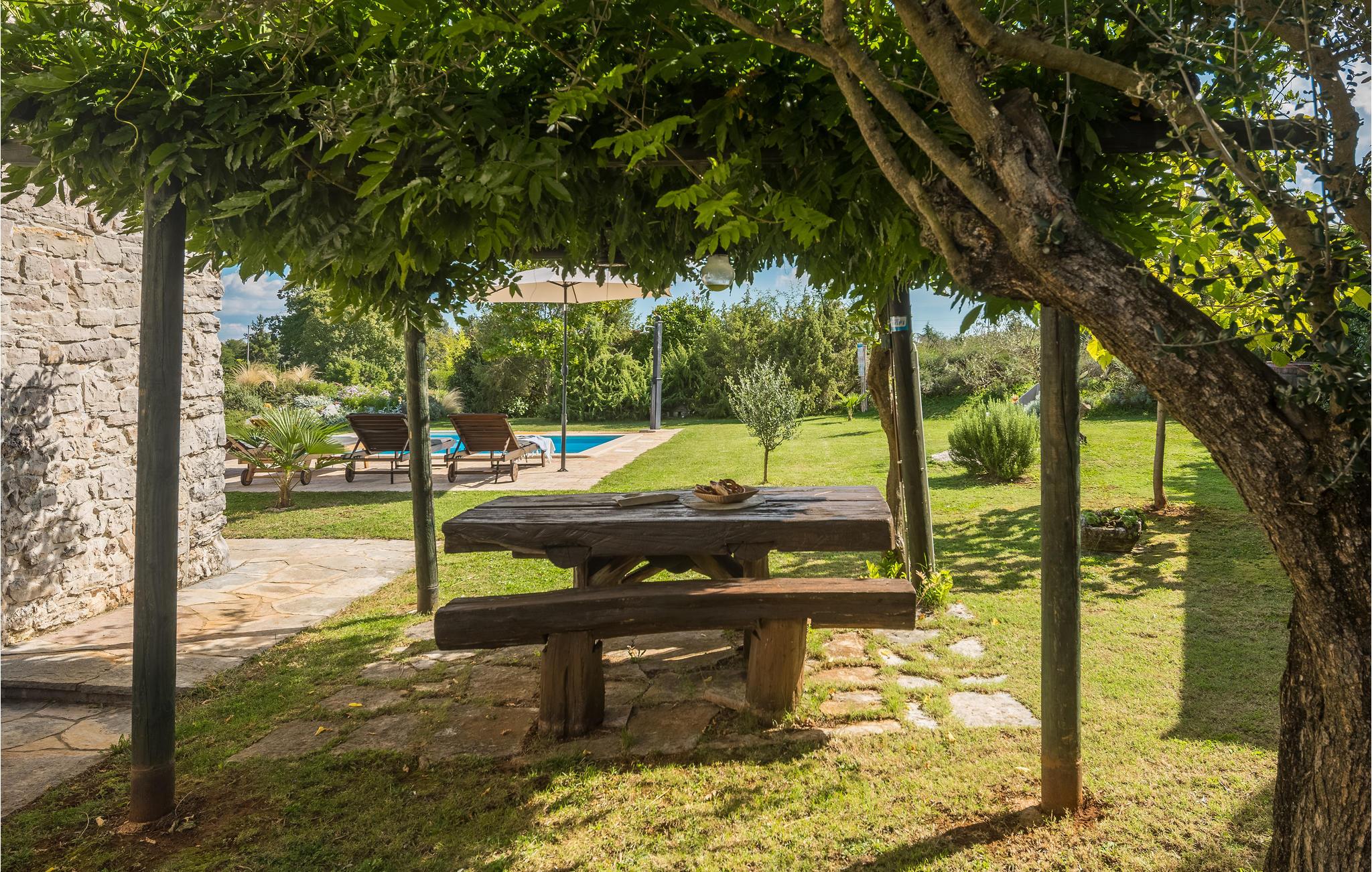 Det antikke møblerede feriehus består af to enheder, der er ideel til to familier, der gerne vil holde ferie sammen. Poolen på den velplejede engejendom giver ekstra velvære. Huset inkluderer en åben pejs med et overdækket opholdsområde, hvor du kan nyde lokale vine. Hvis du ønsker det, kan udlejer hjælpe dig med at plukke svampe, vilde asparges og tilberede grøntsagsretter. For et ekstra gebyr tilbyder udlejer fadøl. Badminton - / volleyballbane er tilgængelig.