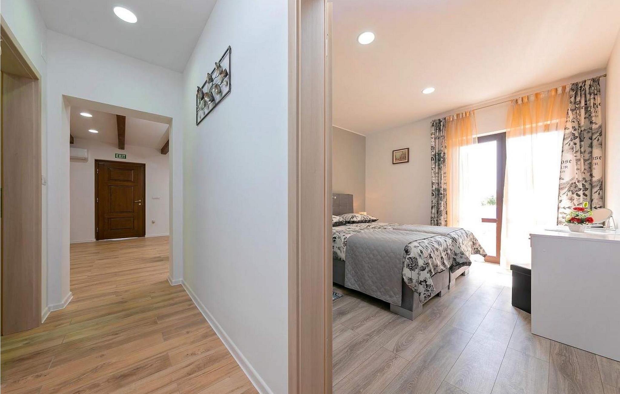 Apartment Piantadela ligger i stueetagen af et familiehus i Levaki, omgivet af smukke grønne istriske landskaber, 11 km fra den maleriske middelalderby Motovun og 23 km fra havet. Huset blev bygget i 2000, og lejligheden blev først indrettet i 2018. På sin egen ejendom tilbyder det gæsterne en privat swimmingpool på 40 kvm, grill, legeplads og to parkeringspladser. De diskrete husejere bor i den anden del af huset med separat indgang. Lejlighed til 4-6 gæster med et samlet boligareal på 70 kvm består af en stue med aircondition, udstyret køkken, spisebord, to soveværelser med to enkeltsenge, der kan forbindes, det ene med privat bad/toilet og adgang til svømmehallen og bad/toilet i hallen. Bemærk venligst, at denne ejendom ikke accepterer ungdomsgrupper eller polterabends. En ungdomsgruppe på denne ejendom er en gruppe bestående af personer på 26 år eller derunder. Book ikke denne ejendom, hvis du er en ungdomsgruppe eller et polterabend, da din reservation vil blive afvist efter booking, hvilket kan omfatte ved ankomst til ejendommen eller under dit ophold, og du vil ikke blive refunderet.