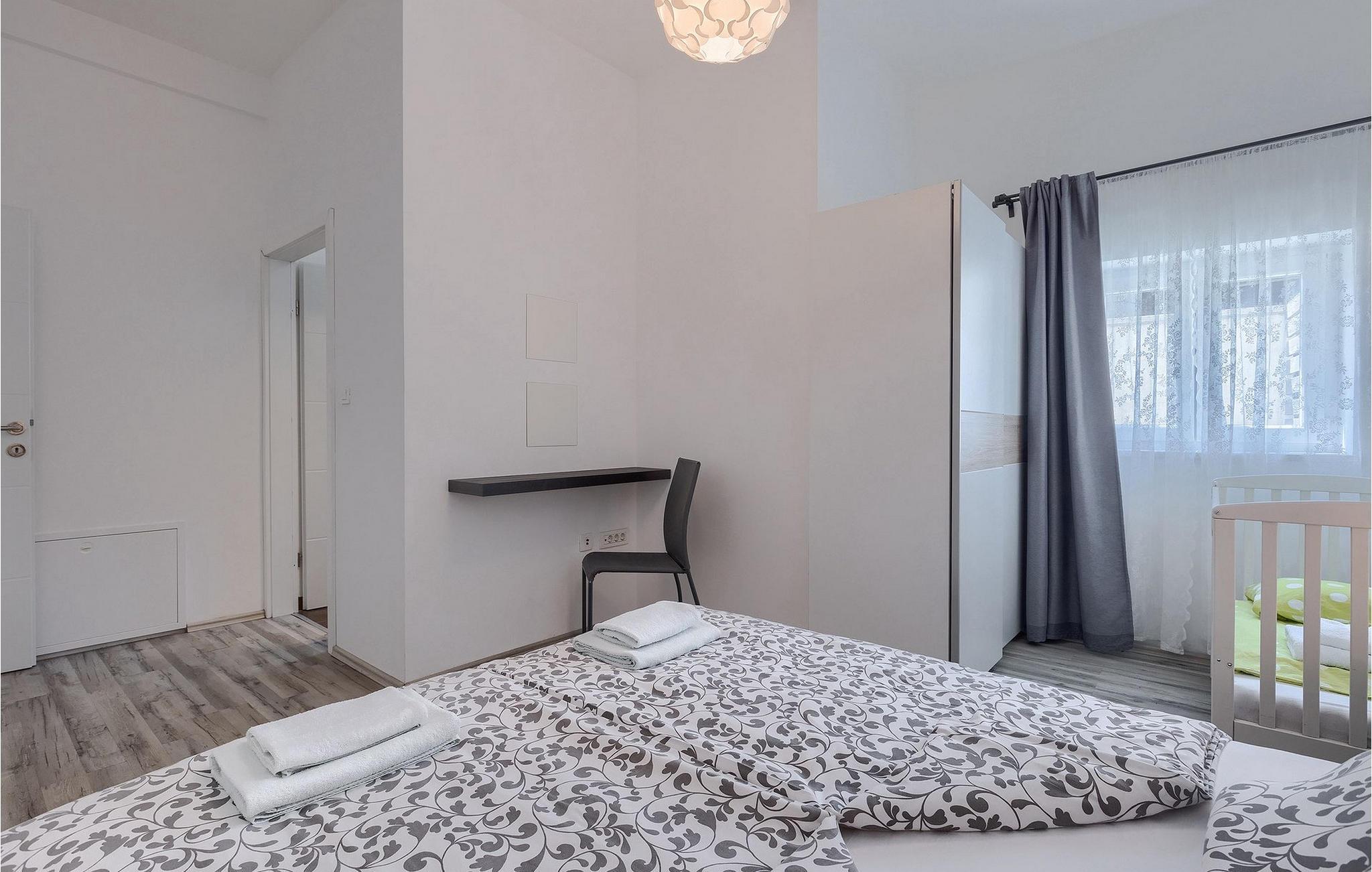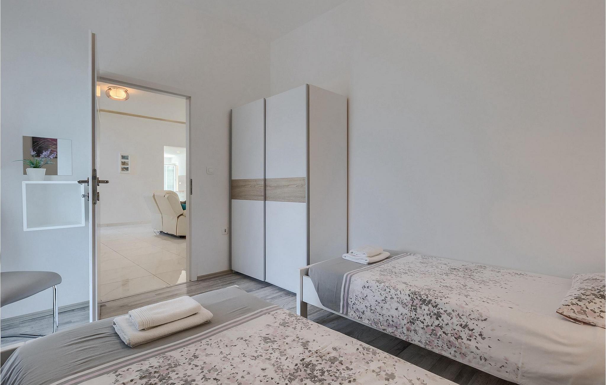 De resterende 4 soveværelser og tre badeværelser er på første sal. Tre soveværelser har en dobbeltseng (i to af soveværelserne med dobbeltseng er en ekstra seng tilgængelig), mens et soveværelse har 2 enkeltsenge.