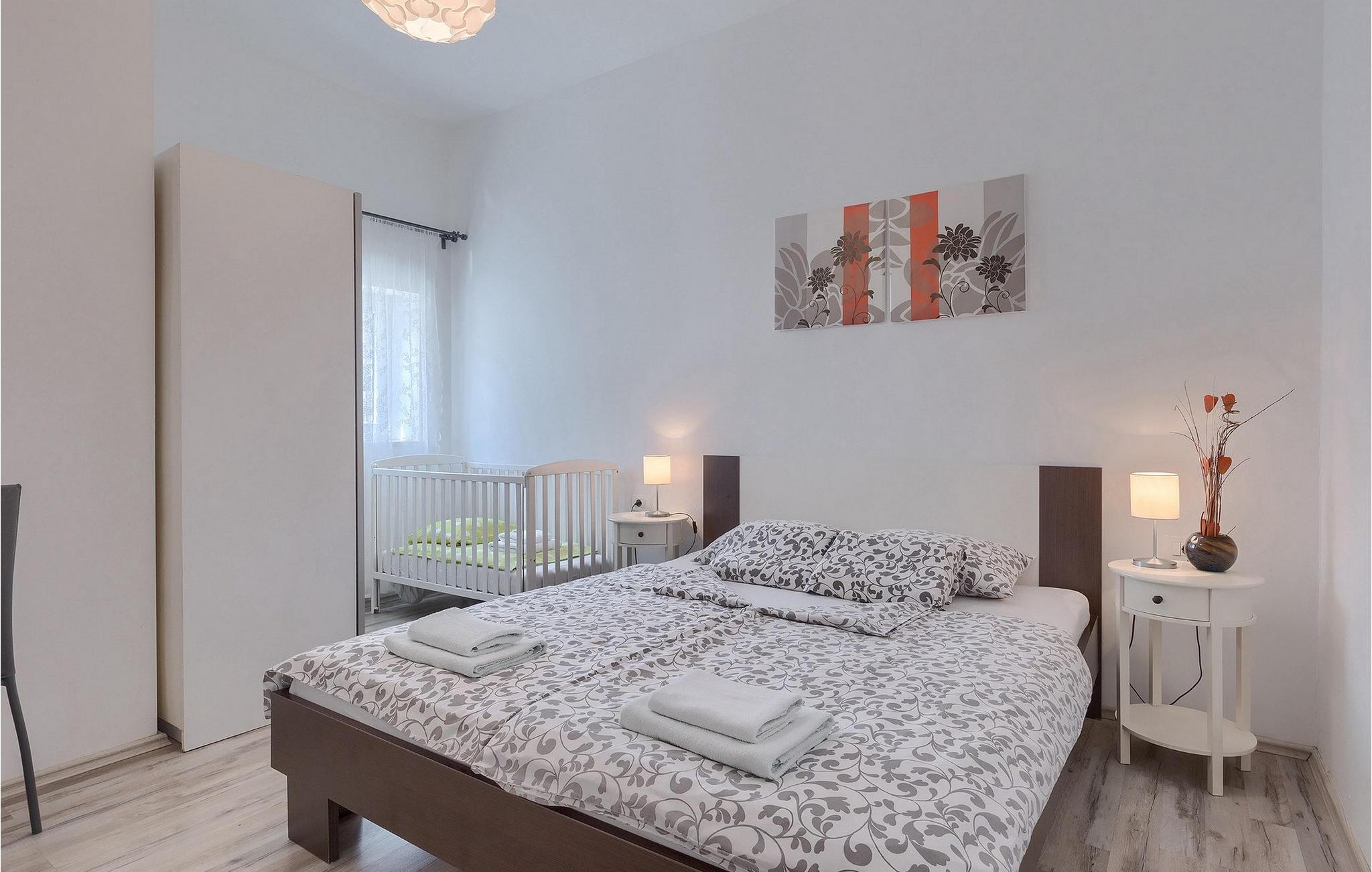 I stueetagen finder du en lys og lyse stue med satellit-tv, køkken og spisestue samt to 2 soveværelser og 2 badeværelser. Et soveværelse har en dobbeltseng, og det er muligt at tilføje en barneseng til dette værelse. I det andet værelse finder du to enkeltsenge, som er en ideel rumindretning for en familie med børn.