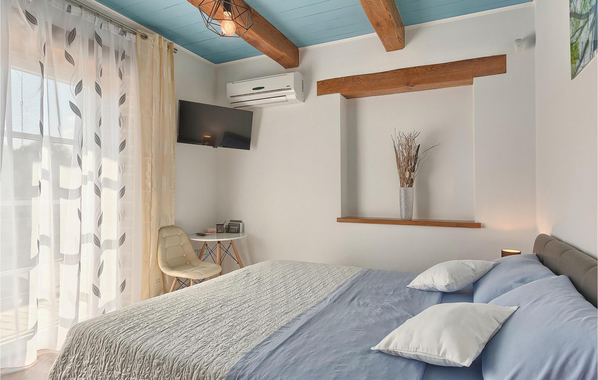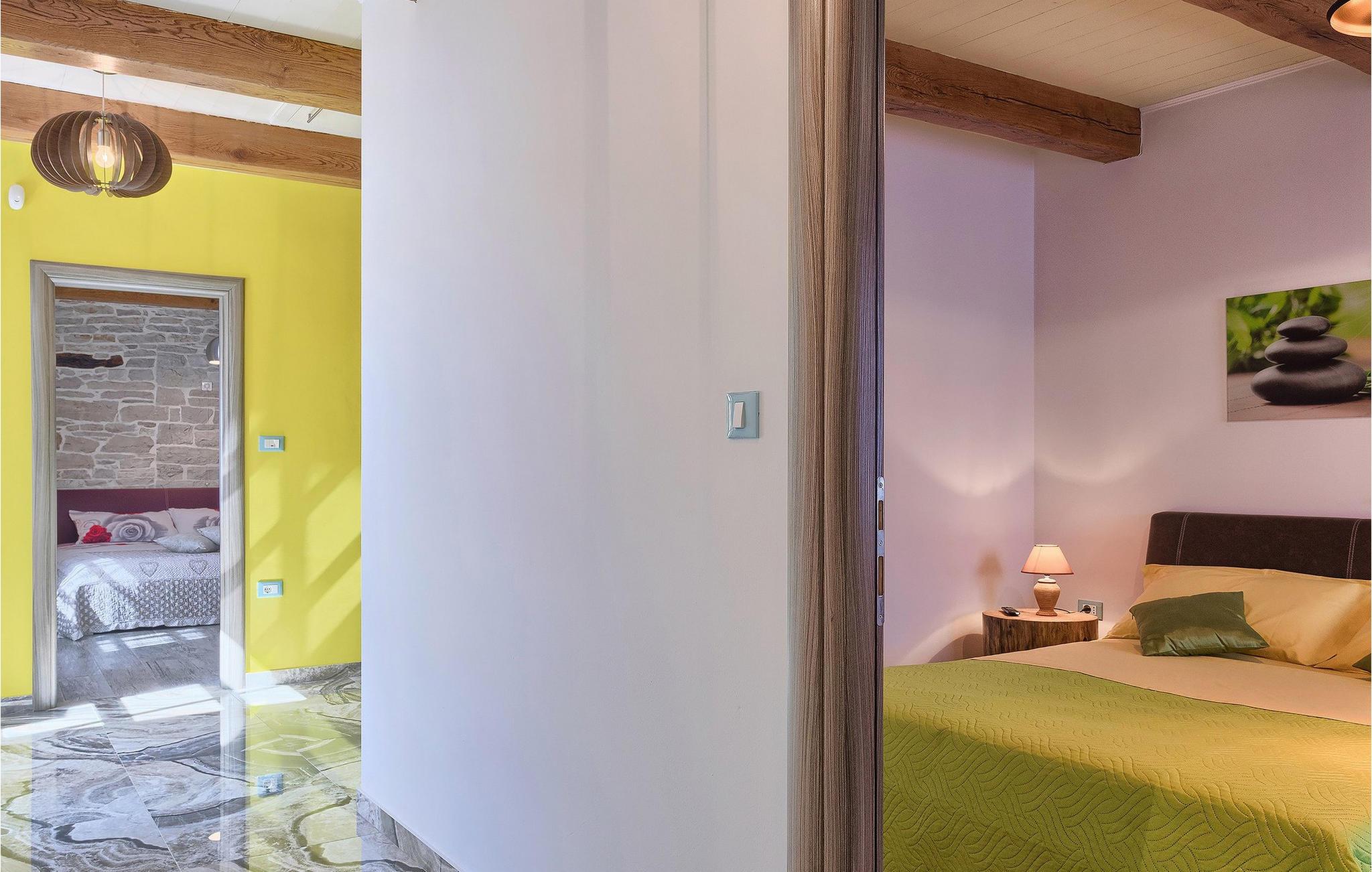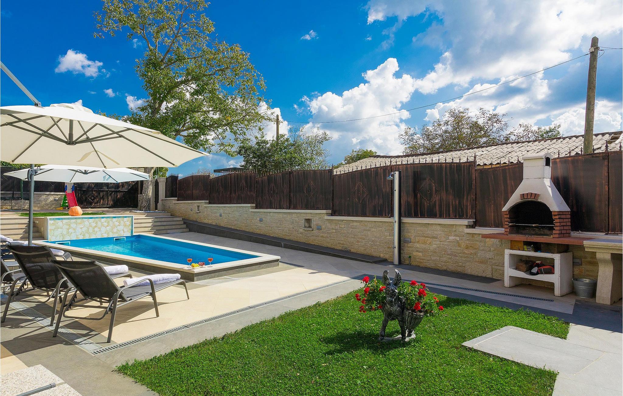 Beliggende i byen Pazin tilbyder den charmerende nybyggede Villa Patrick et roligt, fredeligt miljø i hjertet af Istrien. Villaen er fuldstændig indhegnet og tilbyder fuldstændig privatliv. Du kan prøve zip-linjen, Pazincica åen, hvor du også kan svømme på varme sommerdage, prøve mange kirker, naturparker osv. Villaen har plads til 8 personer og har 4 en-suite soveværelser og et ekstra badeværelse i stueetagen. Hele villaen har gulvvarme, og hvert værelse har aircondition for at gøre dit ophold så behageligt som muligt uanset årstiden. Køkkenet er fuldt udstyret med alle nødvendige hvidevarer og er forbundet med stuen, hvor du kan slappe af ved pejsen og have udsigt til terrassen med privat pool. Uden for villaen er der også en legeplads med trampolin og rutsjebane til børnene, mens de voksne kan nyde deres tid med at tilberede måltider ved pejsen ved poolen. Alle villagæster modtager en velkomstpakke ved ankomsten for at gøre deres ophold i denne villa endnu mere behageligt. Der kan højst bo 8 personer + 2 personer mere i villaen, men mod et ekstra gebyr på 50 € per person hele året rundt.