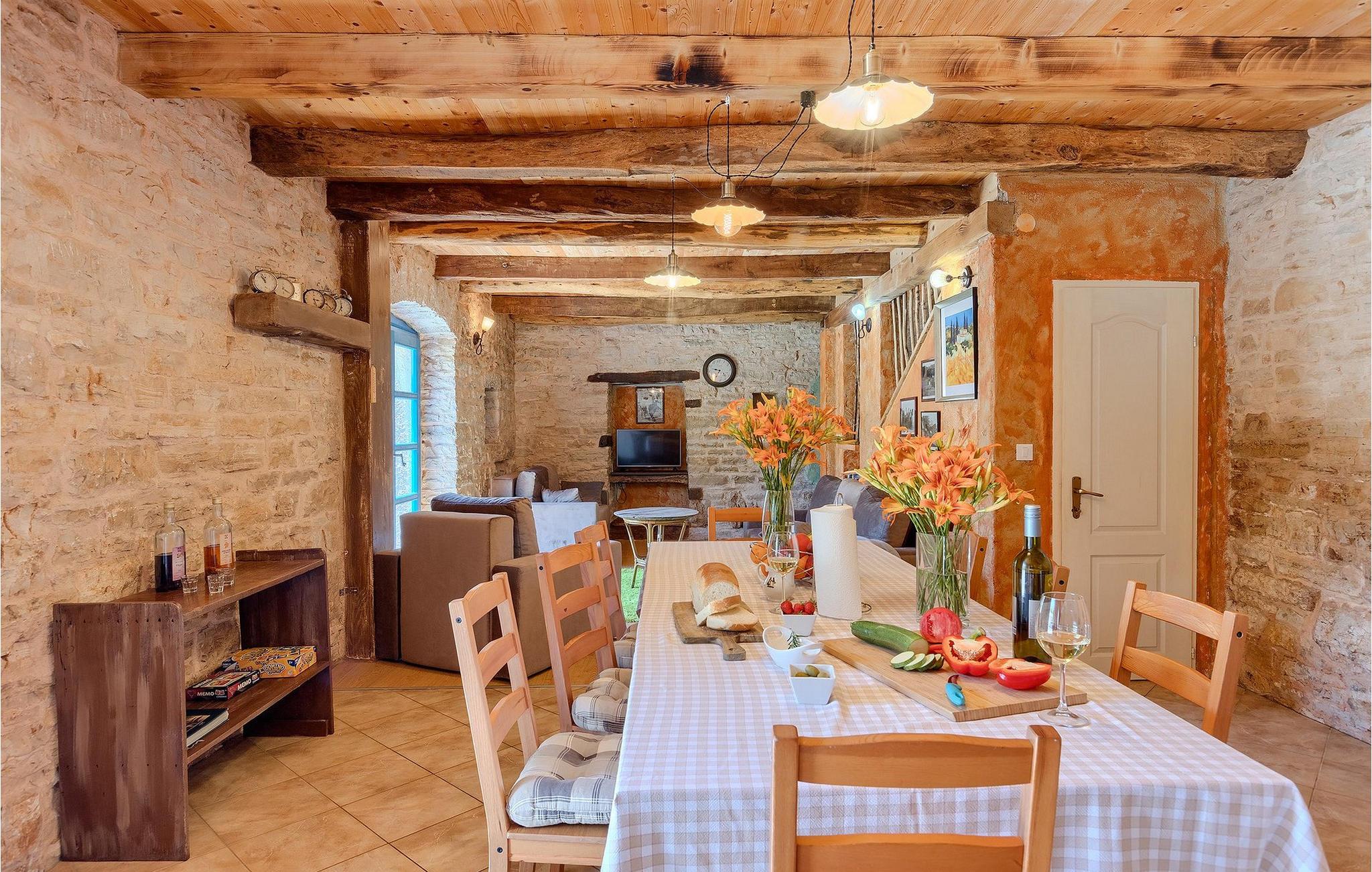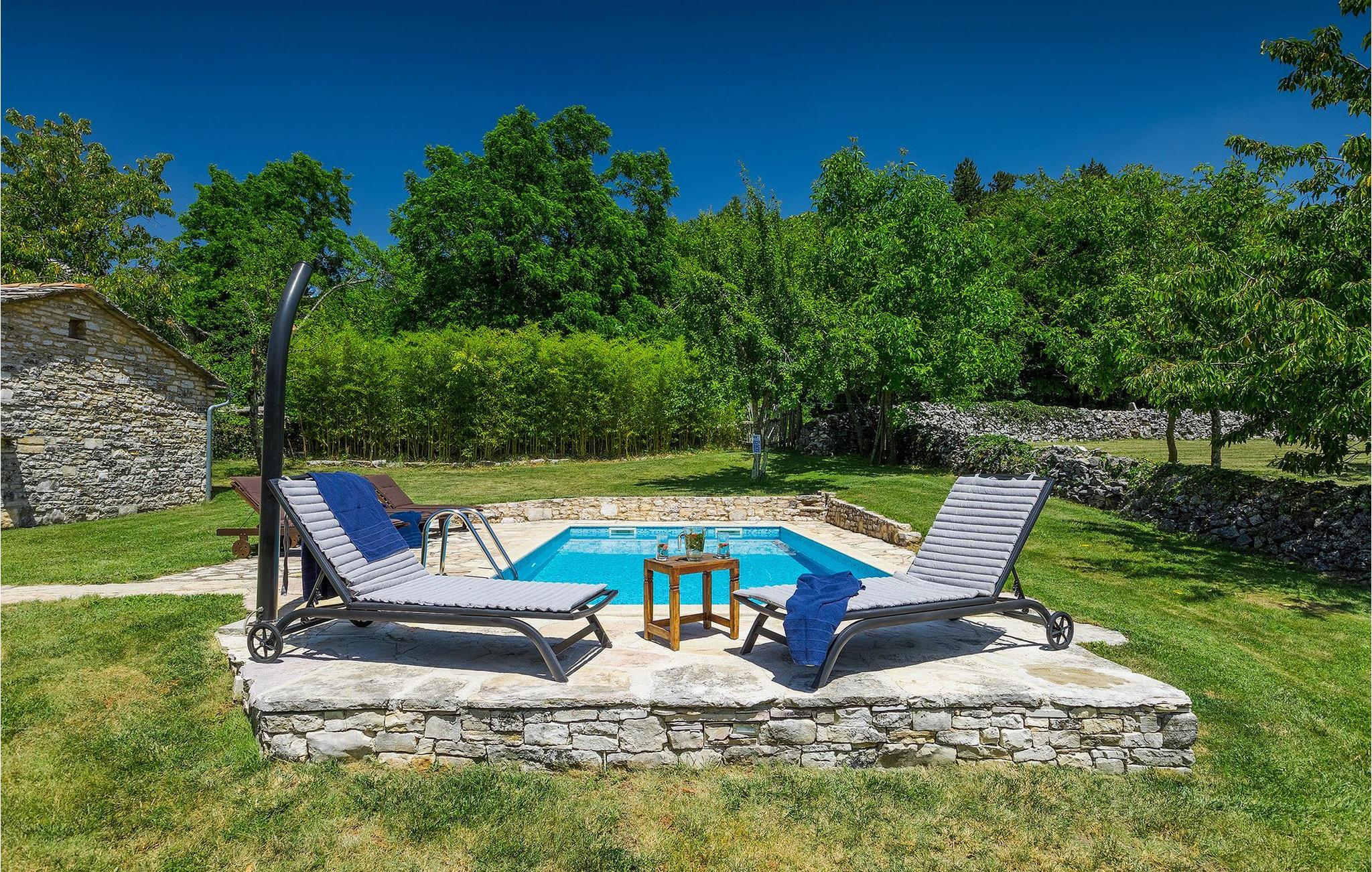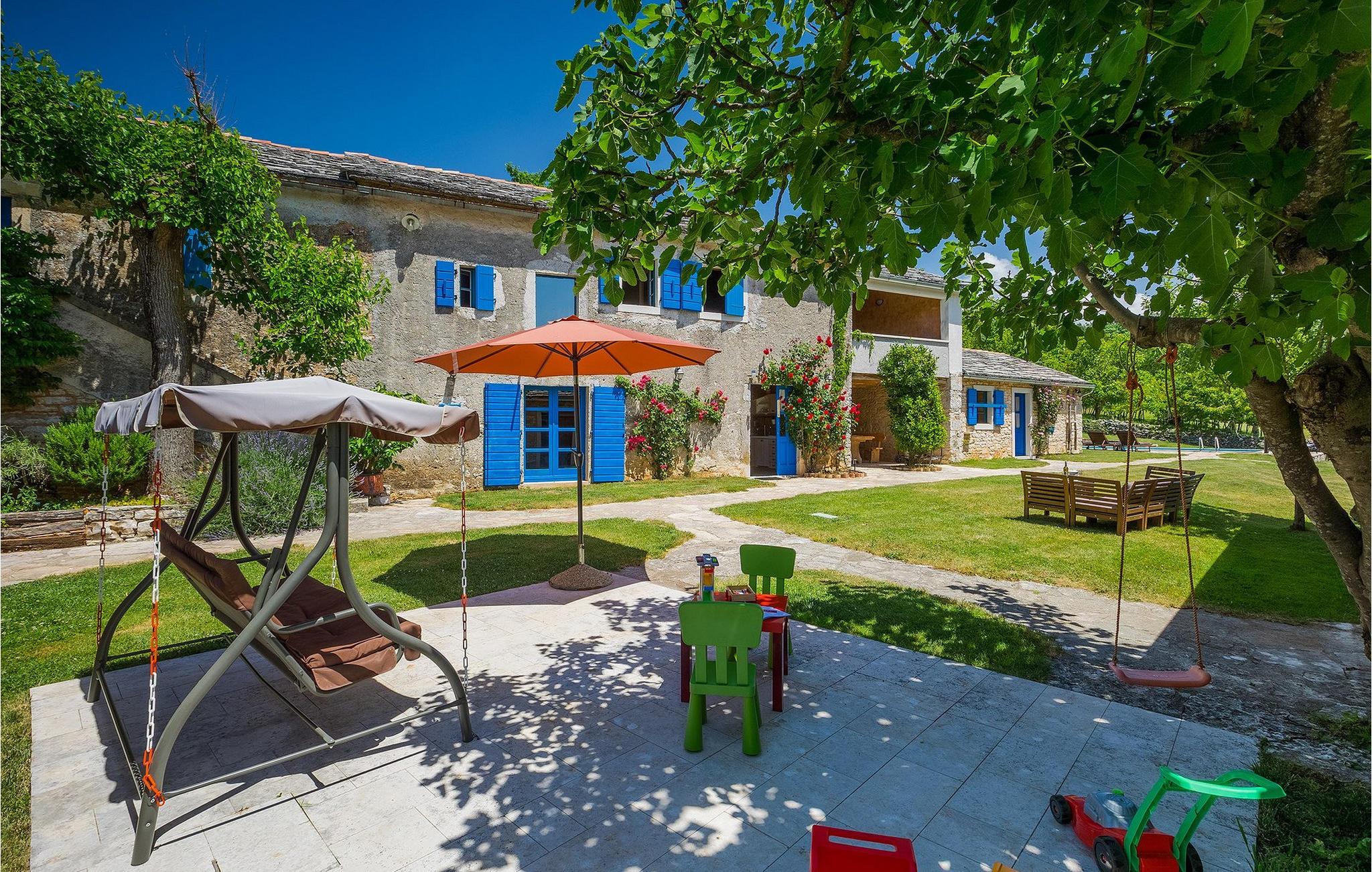 Sobald Sie das große, von typischen Trockenmauern umgebene Grundstück betreten, fällt Ihnen der tolle Garten ins Auge. Der erfrischende Pool lädt ein zum Schwimmen, Sonnenbaden und Entspannen. Ein überdachter Essbereich mit Grill verspricht viele schöne gemeinsame Grillabende mit der Familie und Freunden. Auf 3 Gebäude verteilt hat Villa Mate 4 Schlafzimmer, die bis zu 8 Personen beherbergen können. Im Hauptgebäude befinden sich ein Wohnzimmer, eine große, voll ausgestattete Küche mit Essbereich, 2 Schlafzimmer und ein Badezimmer. Das zweite Gebäude verfügt über ein kleines Wohnzimmer, eine Küche und ein Schlafzimmer. Das dritte Häuschen ist ein Apartment mit Wohn-Essbereich mit Schlafsofa, einem Schlafzimmer und einem kleinen Bad.Diese schöne Villa Mate befindet sich im Landesinneren der atemberaubenden Halbinsel Istrien. Die Höhle von Pazin und das Schloss von Pazin, von denen der französische Schriftsteller Jules Verne in seinem Roman "Mathias Sandorf" inspiriert wurde, sind nur eine kurze Fahrt (5 km) von der Villa Mate entfernt. Zentralistrien ist für kleine, malerische, mittelalterliche Städte bekannt, die unwiderstehlich an Toskana oder Provence erinnern. Während Ihres Aufenthalts in Istrien besuchen Sie die Euphrasius-Basilika (Unesco Kulturerbe) in der Altstadt von Porec (30 km), gut erhaltenes römisches Amphitheater in Pula (45 km) oder fahren Sie zum ersten Strand, um dort zu genießen. Während Ihres Aufenthaltes in Villa Mate können Sie auch regionale Küche und ein Glas guten istrianischen Weins genießen.