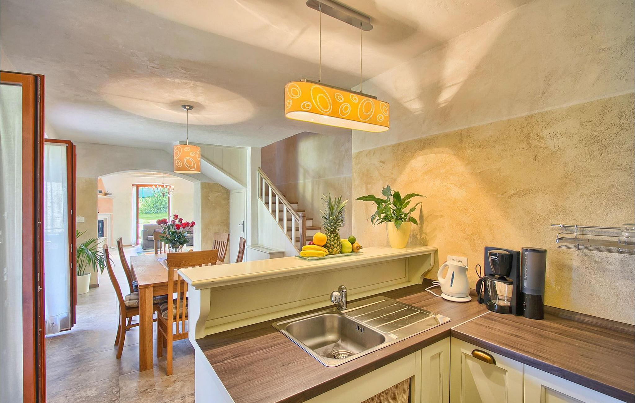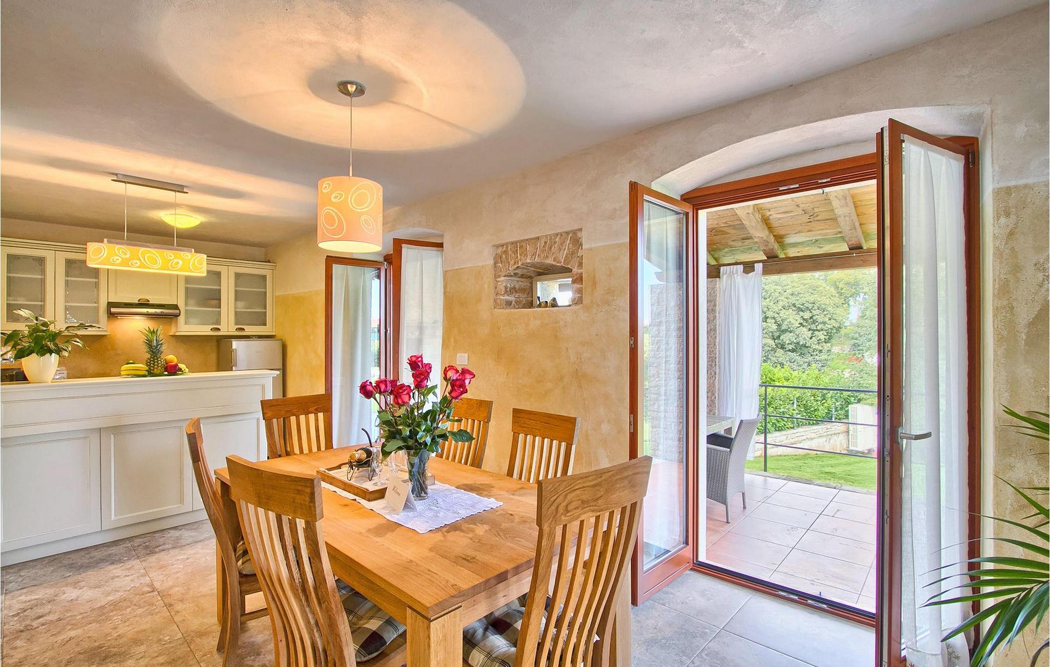 Villa Valica er det perfekte sted at komme væk fra det hele! Kun 7 km fra Pazin, i den lille landsby Jezenj, tilbyder denne restaurerede stenvilla alt, hvad du kan ønske dig til en fantastisk ferie med din familie. Det første, der vil fange dit øje, er den dejlige pool i villaens store have. Mens du slapper af med en forfriskende drink ved poolen, kan du altid holde øje med de små, som har en lille legeplads. Spil en omgang badminton eller volleyball i den velplejede have – her har du helt sikkert plads nok! Spisebordet på den overdækkede terrasse kan komfortabelt rumme op til 6 personer, som vil nyde de friske måltider tilberedt på grillen. Hvis du træder ind i det fuldt klimatiserede hus fra terrassen, vil du finde dig selv i den rustikke stue/spisestue med pejs. Autentisk og komfortabelt indrettet med stor sans for detaljen giver villaen dig følelsen af "hjem". De komfortable soveværelser er på første sal, samt de to dejlige badeværelser. Denne villa ligger i den lille istriske landsby Jezenj. Det er helt stille og afslappende, men alligevel er det travle turistcenter i Porec og strandene kun en kort køretur væk. Landsbyen er 5 min. væk fra Pazin og Tinjan, og alle faciliteter og direkte adgang til den hurtige vej til Pula og Trieste lufthavne. Turistbyen Porec ligger 20 minutter derfra. Rovinj og Pula og andre højdepunkter er kun en kort køretur væk. Kun 20 minutter væk fra ejendommen kan du finde de nærmeste strande med en masse rolige steder at slappe af. Book Villa Valica og tilbring en fantastisk ferie med dine kære, som du helt sikkert vil huske i lang tid!
