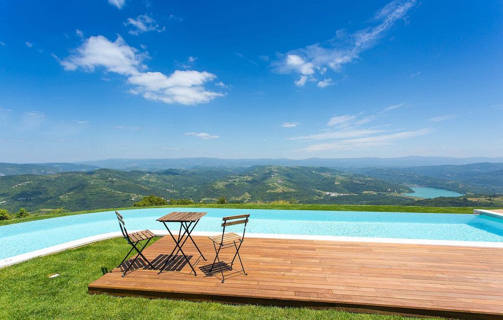 Mod ekstra gebyr kan ejerne af villaen arrangere morgenmad for gæster, der bor på Villa Vista - kontakt os for mere information .Den forbløffende smukke middelalderby Motovun er kendt som et bymonument og udstråler ægte istrisk charme og historie med en spektakulær udsigt over bakker dækket af vinmarker, landsbyer og bondegårde og den magiske Mirna-dal. Her afholdes traditionelle lokale festligheder såvel som en berømt international filmfestival, som bringer denne fredelige lille by til live. Antallet af byer og landsbyer at besøge er for langt til at nævne; dette er hjertet af det centrale Istrien, et af de smukkeste steder i verden. Det er også berømt for lokale Teran- og Malvazija-druer, jomfruolivenolie, hjemmelavede oste, prosciutto, grillet kød og selvfølgelig trøfler, som alle kan prøves på restauranter i de mange landsbyer og byer i området. Der er adskillige vandre- og cykelstier, en af de mest fantastiske af dem er den historiske Parenzana gamle jernbanesti, som også tilbyder en unik tur på et turisttog langs ruten. Ridning, en runde eller to golf eller bare at nyde i det termiske vand i den nærliggende kurby tilføjer til denne lange liste af aktiviteter. De vigtigste kystbyer Umag, Novigrad og Porec, som hurtigt nås ad fremragende veje, tilbyder ekstremt varierede fritidsfaciliteter, godt natteliv, barer og restauranter.
