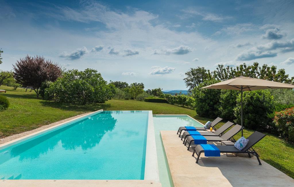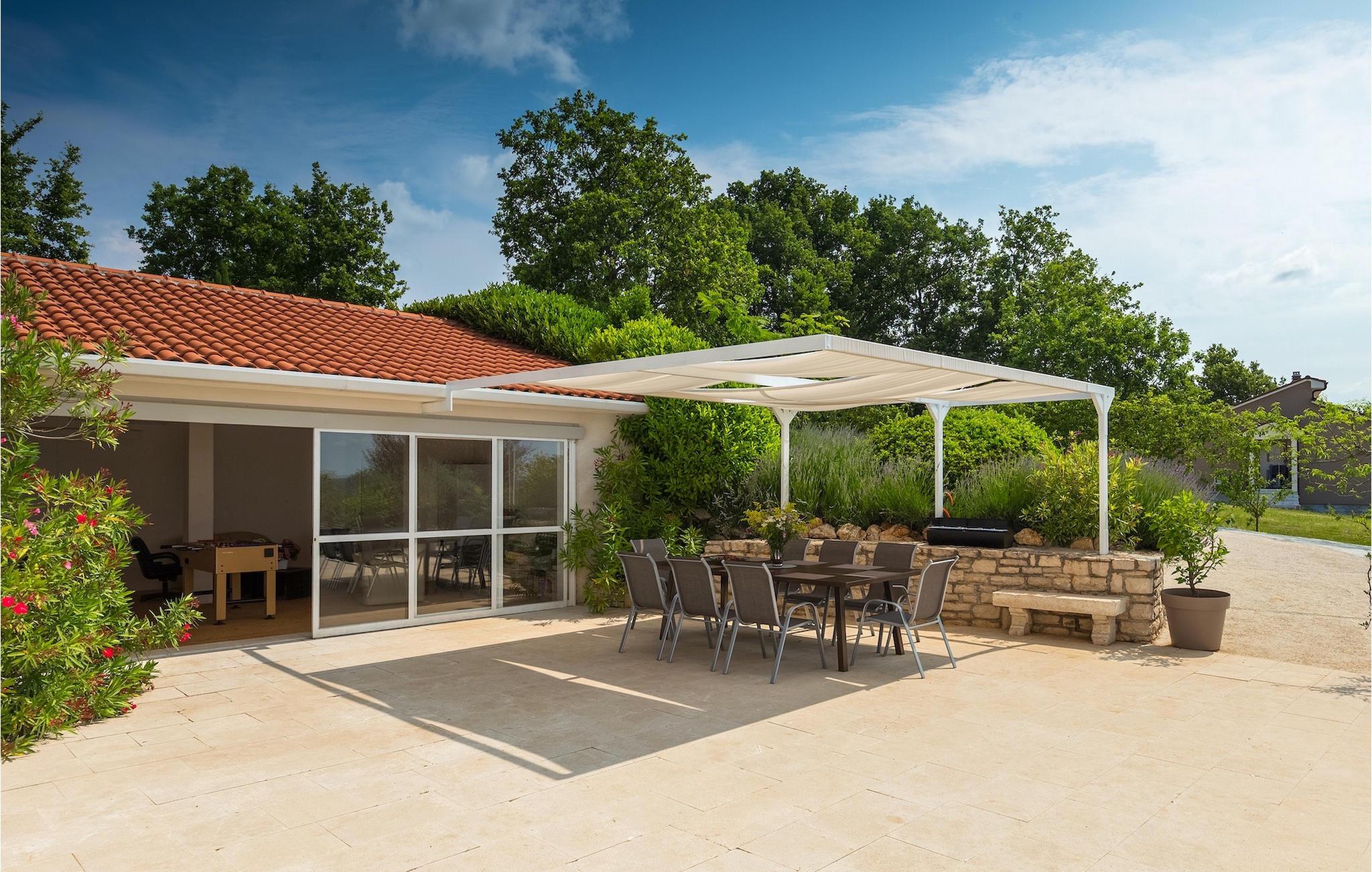 Dyk ned i det grønne paradis i denne dejlige, store middelhavshave i den fantastiske villa Naturavita, som tilbyder fredelige og afslappede ferier for op til 12 gæster. Lad dig blive forkælet fra denne smukke villa, beliggende i det rolige landskab i det Istriske bagland med udsigten til bakkerne i baggrunden, mens du slapper af i den store private pool (54m2). Stueplan byder på en lys og hyggelig stue med køkken og spisestue i et åbent koncept. Her kan I tilbringe jeres tid sammen med udsigten til den store pool og haven. Du kan også finde 3 soveværelser og 2 badeværelser her, mens galleriet ovenfor udvides til andre 2 soveværelser og en ekstra, mindre stue med eget badeværelse. I denne anden stue er der en sovesofa til din rådighed. Fra soveværelserne på 1. salen kan I nyde en flot udsigt over den massive have og de grønne omgivelser. Hvis du rejser med børn, vil de også nyde deres ferier, fordi haven byder på en lille legeplads og en 20 kvadratmeter stor pool, især for de mindste. For mere sjov tilbyder villa Naturavita forskellige sportsaktiviteter (volleyball, badminton, basketball, fodbold...) samt bordtennis, dart og meget mere i det rummelige forlystelsesrum ved siden af det udendørs spiseområde. Denne villa har alt det nødvendige for en afslappet, men alligevel underholdende ferie! Pazin er en lille, historisk rig by i hjertet af Istriens magiske bagland. Denne by har meget at byde på, som ligger kun 30 km fra andre turistbyer. I hundreder af århundreder var Pazin den stærkeste Habsburg-fæstning i dette område og hovedkvarteret for den tidligere Pazin-hersker. Dette middelalderfort ("Kastel") er velbevaret, så du kan besøge det i dag. Det bliver brugt som et etnografisk museum i Istrien og museet for byen Pazin. Du bør også besøge nogle kirker i dette område, fordi 6 af dem er beskyttet som en del af Kroatiens kulturarv. En af dem, den hellige Maria kirke i Beram (beliggende mellem Pazin og Porec), er verdensberømt for sin istriske fresko af Dødedansen, der dateres tilbage til 1474. Istriens bagland byder også på mere end blot kultur. Hvis du er en naturelsker, vil du nyde det. Prøv zip-linjen, tag på vandretur eller tag en gastrocykeltur for at prøve nogle istriske specialiteter. Du bør ikke gå glip af Pazin åen - at se de små søer, vandfald og endda huler. I denne rene natur kan du også bade om sommeren. Hvis du vil lære Istrien at kende, så udforsk byer som Porec, Rovinj eller Pula.