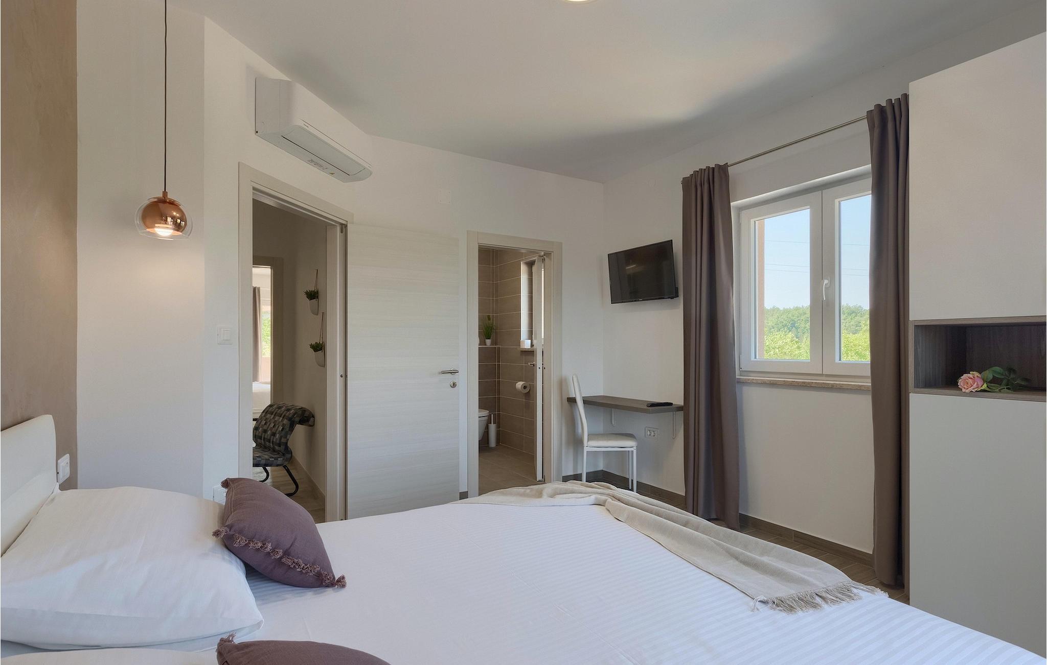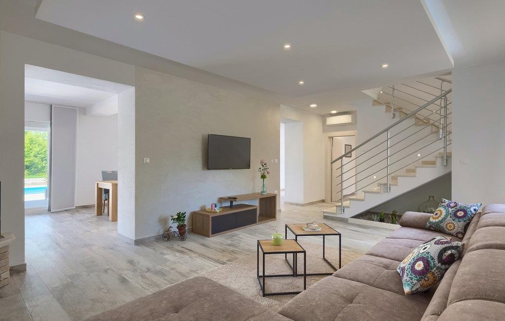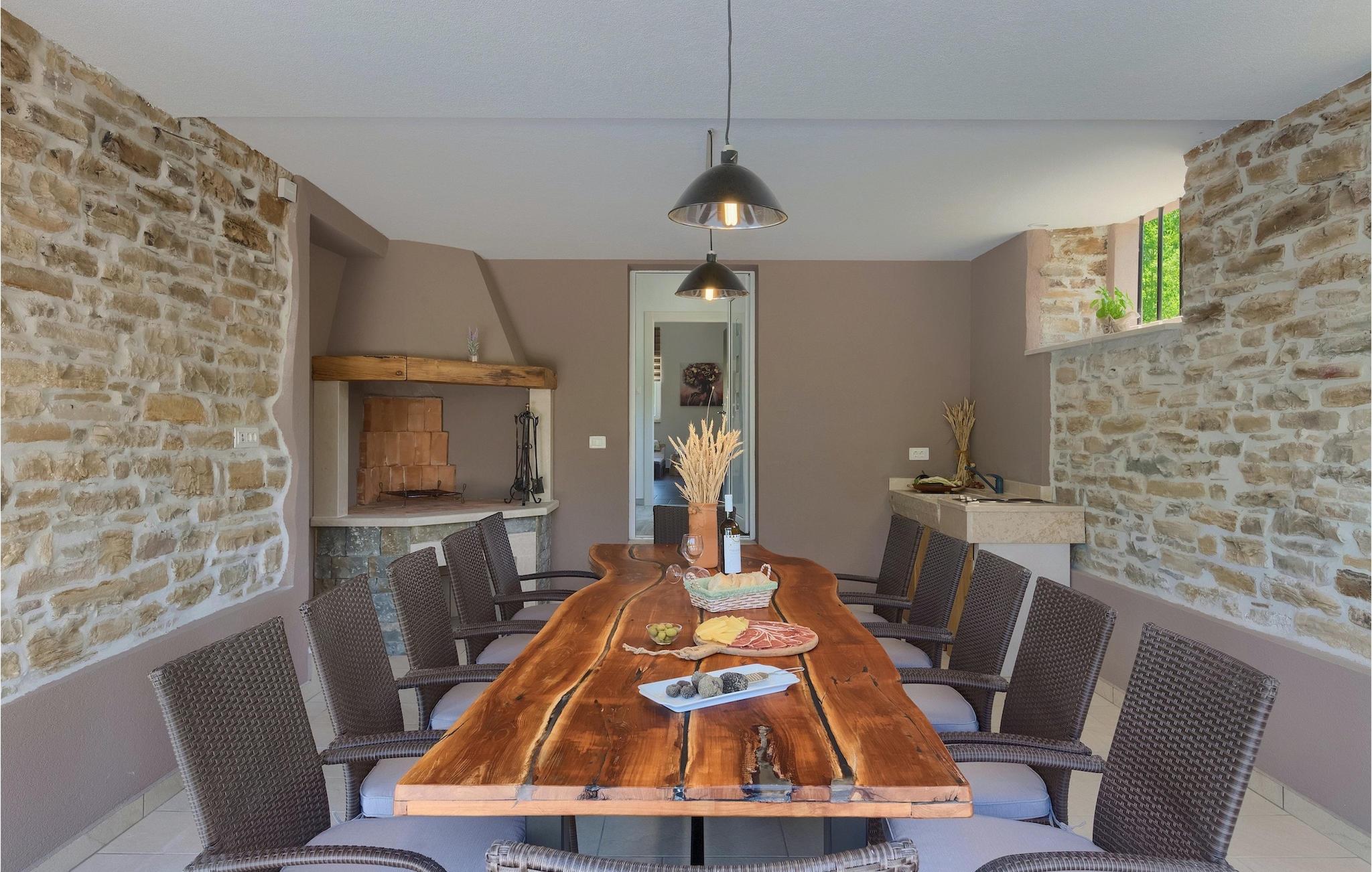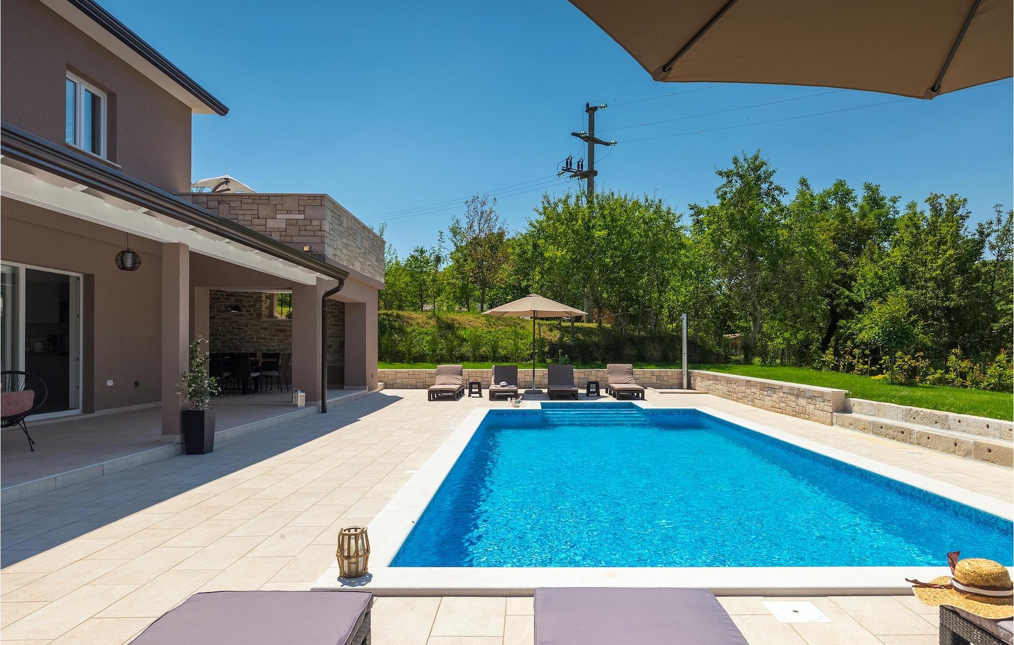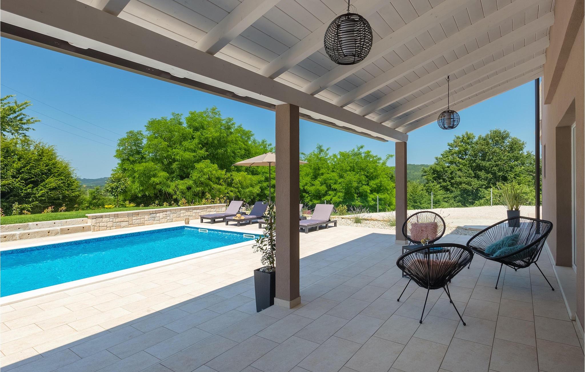 Hvis du leder efter en rummelig, moderne villa i et fredeligt område omgivet af natur, med en privat pool og masser af aktiviteter for sjov (perfekt til en familieferie), er Villa Zamari ideel til din ferie! Denne smukke villa kan rumme op til 12 gæster i 5 elegante soveværelser indrettet med stor omhu. Når du kommer ind i stueetagen, får du direkte adgang til den stilfulde stue forbundet med spisestuen og det fuldt udstyrede køkken. Her finder du også et separat soveværelse med eget badeværelse. Alle disse værelser har en flot udsigt over den store pool og det omkringliggende område med moderigtige havemøbler og talrige liggestole. De komfortable soveværelser fordeler sig over første sal, hver med sit pæne badeværelse. To af værelserne har adgang til 2 ret store altaner med et sted at slappe af og nyde udsigten over det grønne, bakkede landskab i denne del af Istrien. Hvor du helt vil forkæle dig selv, er helt sikkert det afslappende wellness-område med sauna. Stueetagen byder også på masser af plads i spillerummet med dart og et poolbord, perfekt til en sjov sammenkomst! Du vil helt sikkert tilbringe meget tid omkring den private pool eller i alfresco-spisestuen med dets lille køkken og pejs. Her er masser af plads til hele familien på verandaen, mens ungerne hopper i haven på trampolinen. Villa Zamari venter på dig til en sjov og afslappende ferie i Istriens bagland!Smukke Villa Zamari er beliggende i en fredelig landsby omgivet af natur få minutter fra Pazin, i hjertet af Istriens bagland. Pazin er en lille, historisk rig by med meget at byde på, beliggende kun 30 km fra andre turistbyer. I hundreder af århundreder var Pazin den stærkeste Habsburg-fæstning i dette område og hovedkvarteret for den tidligere Pazin-hersker. Dette middelalderfort ("Kastel") er velbevaret, så du kan besøge det i dag. Det bliver brugt som et etnografisk museum i Istrien og museet for byen Pazin. Du bør også besøge nogle kirker i dette område, fordi 6 af dem er beskyttet som en del af Kroatiens kulturarv. En af dem, den hellige Maria kirke i Beram (beliggende mellem Pazin og Porec), er verdensberømt for sin istriske fresko af Dødedansen, der dateres tilbage til 1474. Istriens bagland byder også på mere end blot kultur. Hvis du er en naturelsker, vil du nyde det. Prøv zip-linjen, gå på vandretur eller for en gastro-cykeltur for at prøve nogle istriske specialiteter. Du bør ikke gå glip af at se de små søer, vandfald og endda huler. I denne rene natur kan du også bade om sommeren. Hvis du vil lære Istrien at kende, så udforsk byer som Porec, Rovinj eller Pula.