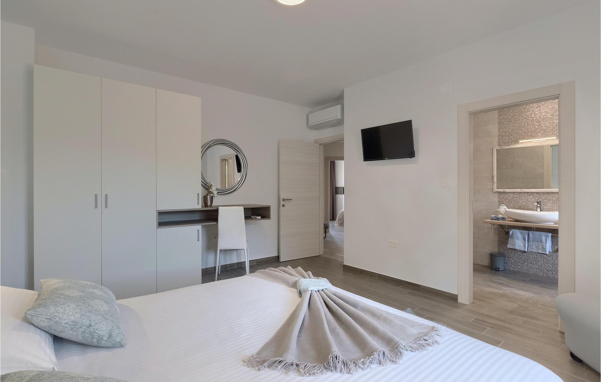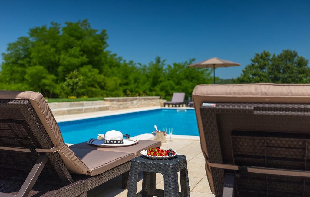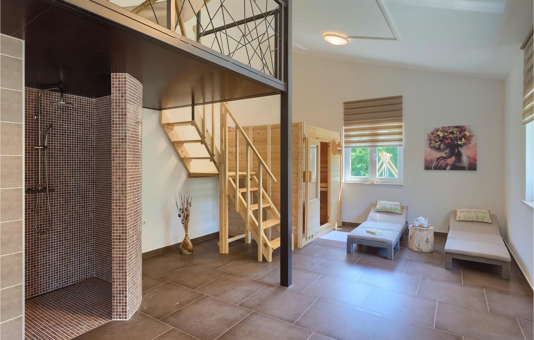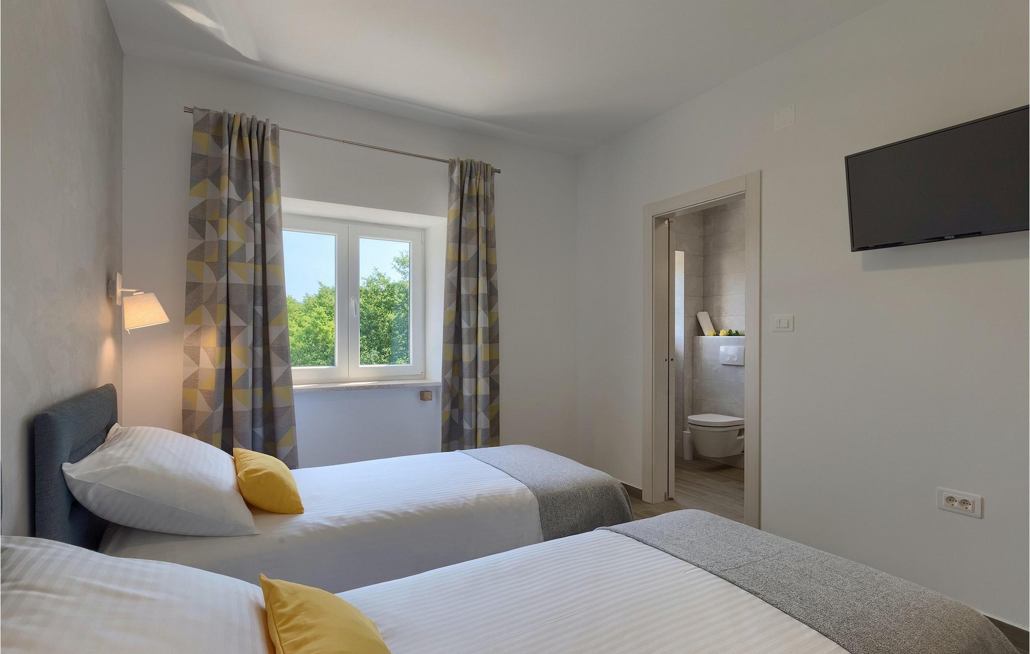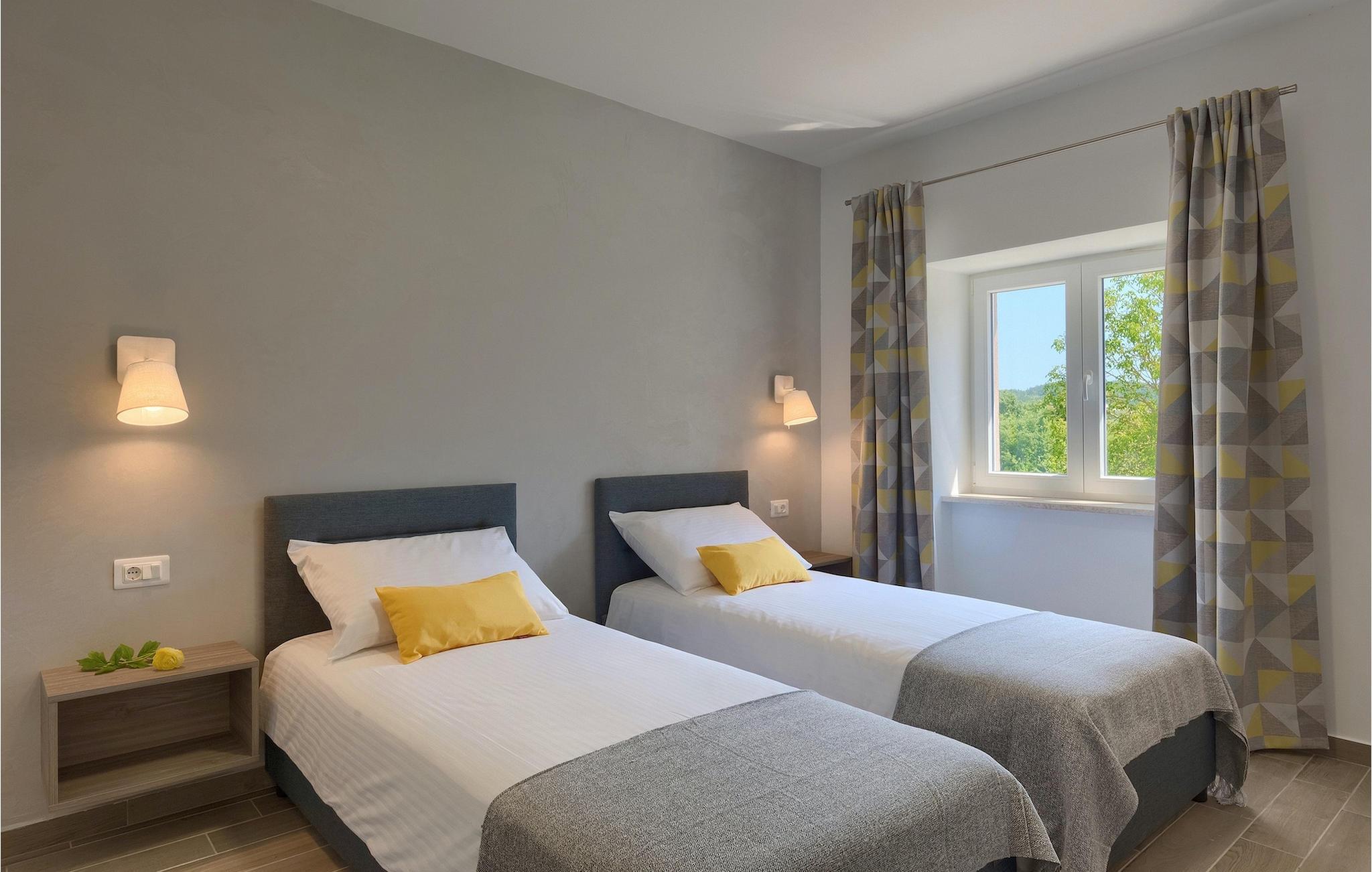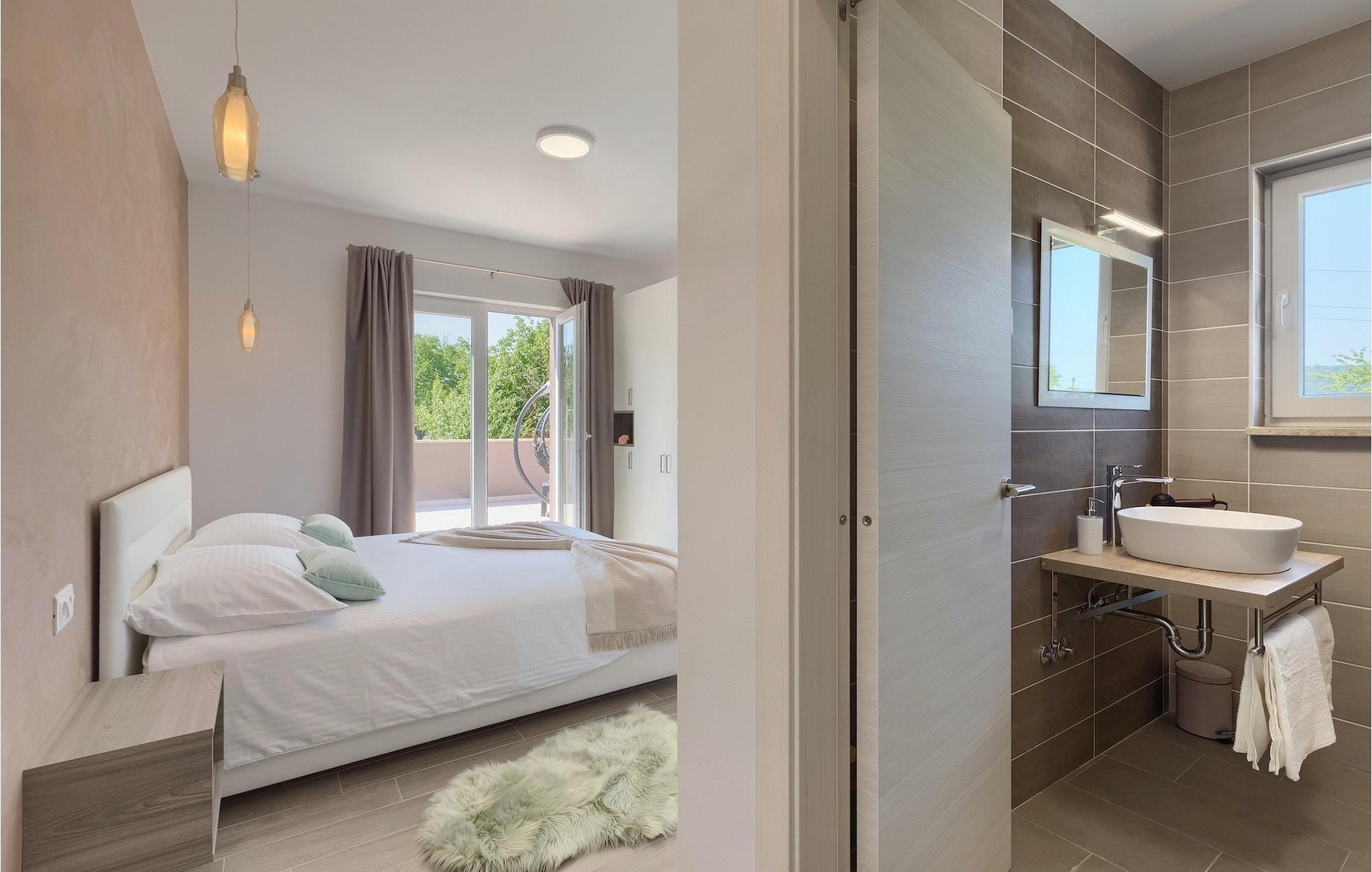 Hvis du leder efter en rummelig, moderne villa i et fredeligt område omgivet af natur, med en privat pool og masser af aktiviteter for sjov (perfekt til en familieferie), er Villa Zamari ideel til din ferie! Denne smukke villa kan rumme op til 12 gæster i 5 elegante soveværelser indrettet med stor omhu. Når du kommer ind i stueetagen, får du direkte adgang til den stilfulde stue forbundet med spisestuen og det fuldt udstyrede køkken. Her finder du også et separat soveværelse med eget badeværelse. Alle disse værelser har en flot udsigt over den store pool og det omkringliggende område med moderigtige havemøbler og talrige liggestole. De komfortable soveværelser fordeler sig over første sal, hver med sit pæne badeværelse. To af værelserne har adgang til 2 ret store altaner med et sted at slappe af og nyde udsigten over det grønne, bakkede landskab i denne del af Istrien. Hvor du helt vil forkæle dig selv, er helt sikkert det afslappende wellness-område med sauna. Stueetagen byder også på masser af plads i spillerummet med dart og et poolbord, perfekt til en sjov sammenkomst! Du vil helt sikkert tilbringe meget tid omkring den private pool eller i alfresco-spisestuen med dets lille køkken og pejs. Her er masser af plads til hele familien på verandaen, mens ungerne hopper i haven på trampolinen. Villa Zamari venter på dig til en sjov og afslappende ferie i Istriens bagland!Smukke Villa Zamari er beliggende i en fredelig landsby omgivet af natur få minutter fra Pazin, i hjertet af Istriens bagland. Pazin er en lille, historisk rig by med meget at byde på, beliggende kun 30 km fra andre turistbyer. I hundreder af århundreder var Pazin den stærkeste Habsburg-fæstning i dette område og hovedkvarteret for den tidligere Pazin-hersker. Dette middelalderfort ("Kastel") er velbevaret, så du kan besøge det i dag. Det bliver brugt som et etnografisk museum i Istrien og museet for byen Pazin. Du bør også besøge nogle kirker i dette område, fordi 6 af dem er beskyttet som en del af Kroatiens kulturarv. En af dem, den hellige Maria kirke i Beram (beliggende mellem Pazin og Porec), er verdensberømt for sin istriske fresko af Dødedansen, der dateres tilbage til 1474. Istriens bagland byder også på mere end blot kultur. Hvis du er en naturelsker, vil du nyde det. Prøv zip-linjen, gå på vandretur eller for en gastro-cykeltur for at prøve nogle istriske specialiteter. Du bør ikke gå glip af at se de små søer, vandfald og endda huler. I denne rene natur kan du også bade om sommeren. Hvis du vil lære Istrien at kende, så udforsk byer som Porec, Rovinj eller Pula.