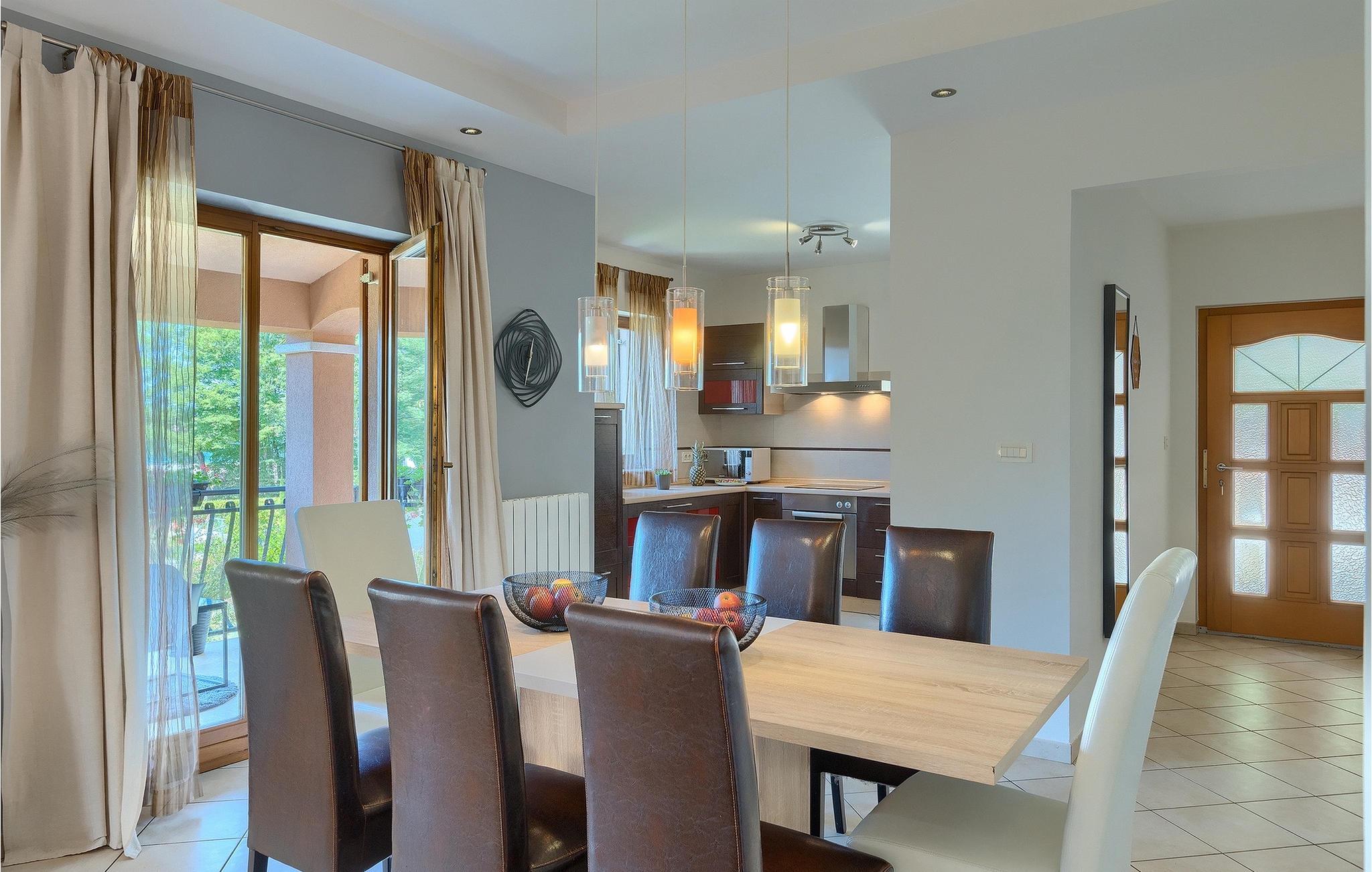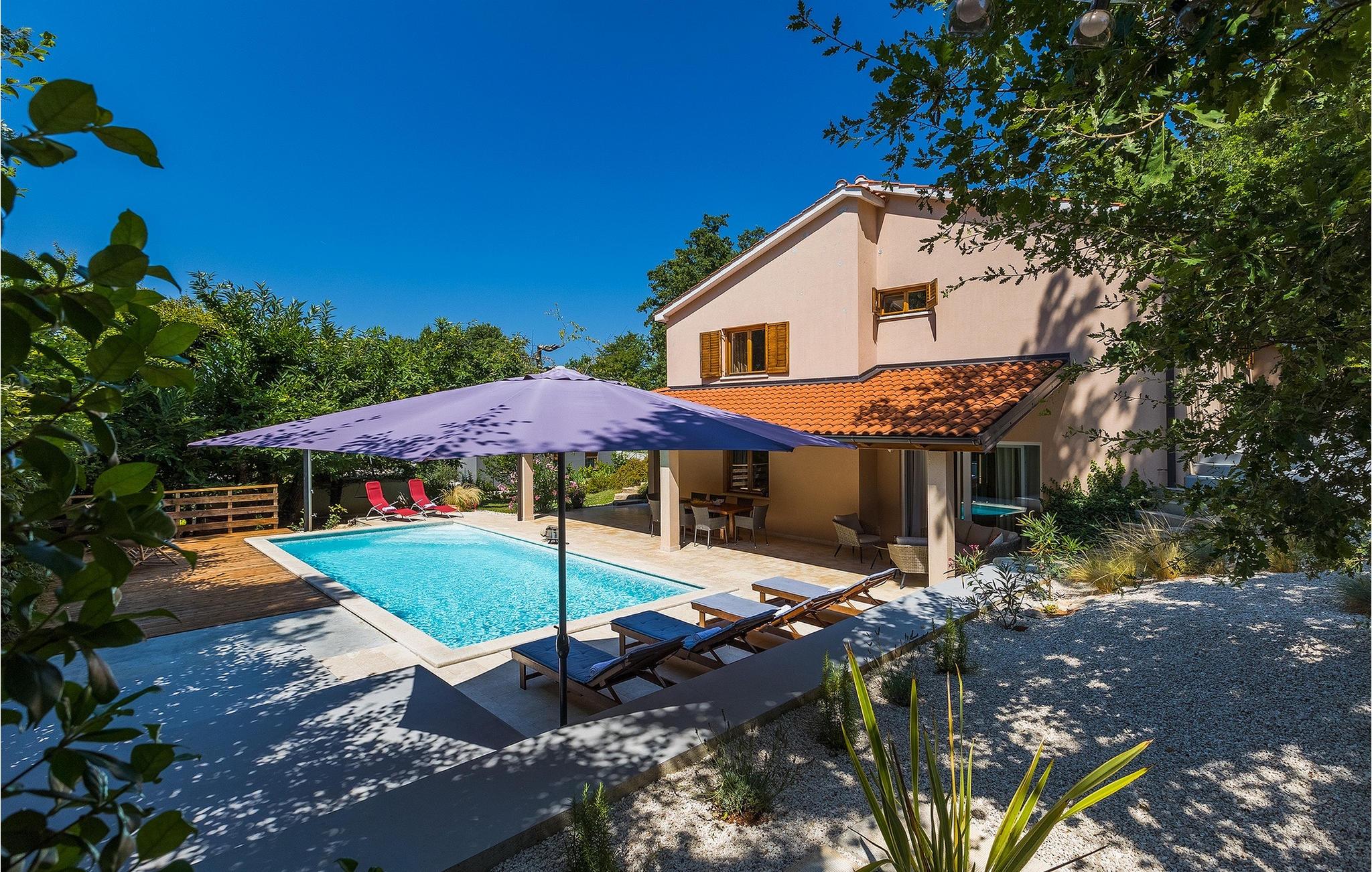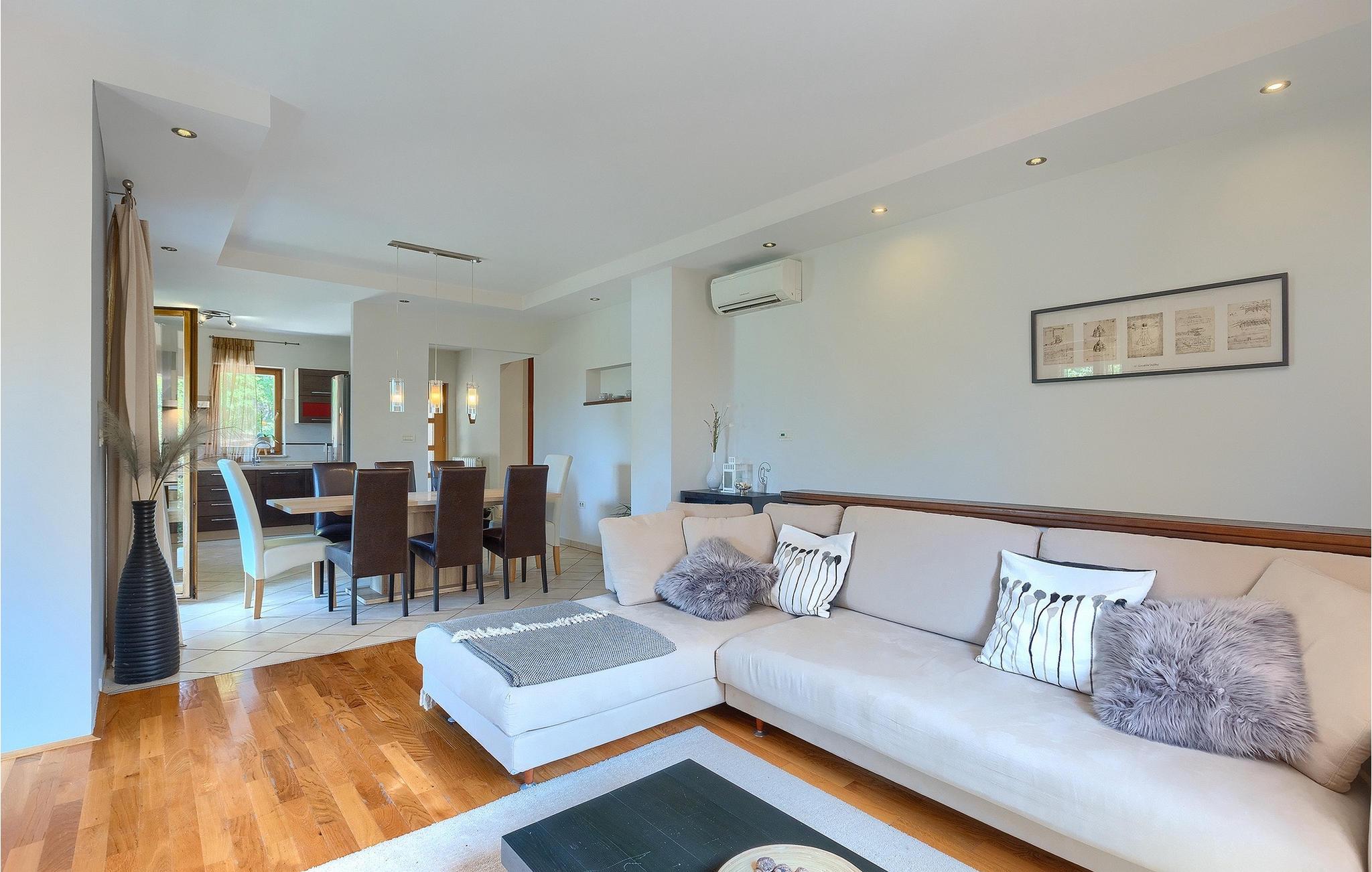 Villa Tila repræsenterer et perfekt feriehus for familier og grupper, der ønsker privatliv og afslapning, mens beliggenheden byder på mange muligheder for daglige udflugter over det magiske Istrien. Villa Tila ligger i Zbrlini, en lille landsby nær Pazin i det centrale Istrien. Pazin-grotten og slottet Pazin, som inspirerede den franske forfatter Jules Verne til hans roman "Mathias Sandorf", er kun en kort køretur fra villaen. Der er også en zip-line over grotten for dem, der tør. Det centrale Istrien er kendt for et landskab af små, maleriske middelalderbyer. Besøg under dit ophold i Istrien det episkopale kompleks af Euphrasian Basilica (Unesco-arv) i Porecs historiske centrum (ca. 30 km) og velbevaret romersk amfiteater i Pula (ca. 45 km) eller bare nyd på en strand efter eget valg nær Porec, Rovinj, Rabac eller Pula. Mens du bor i Villa Tila, bør du også nyde det lokale køkken og et glas god istrisk malvasia.