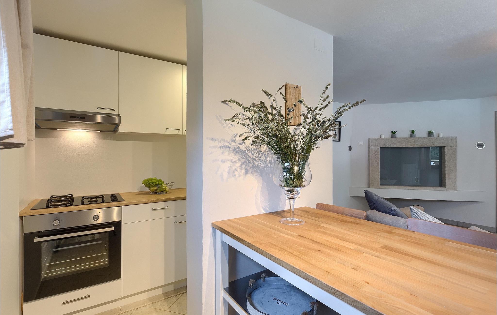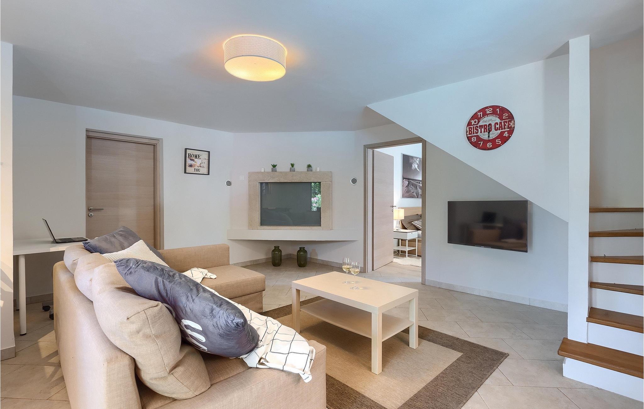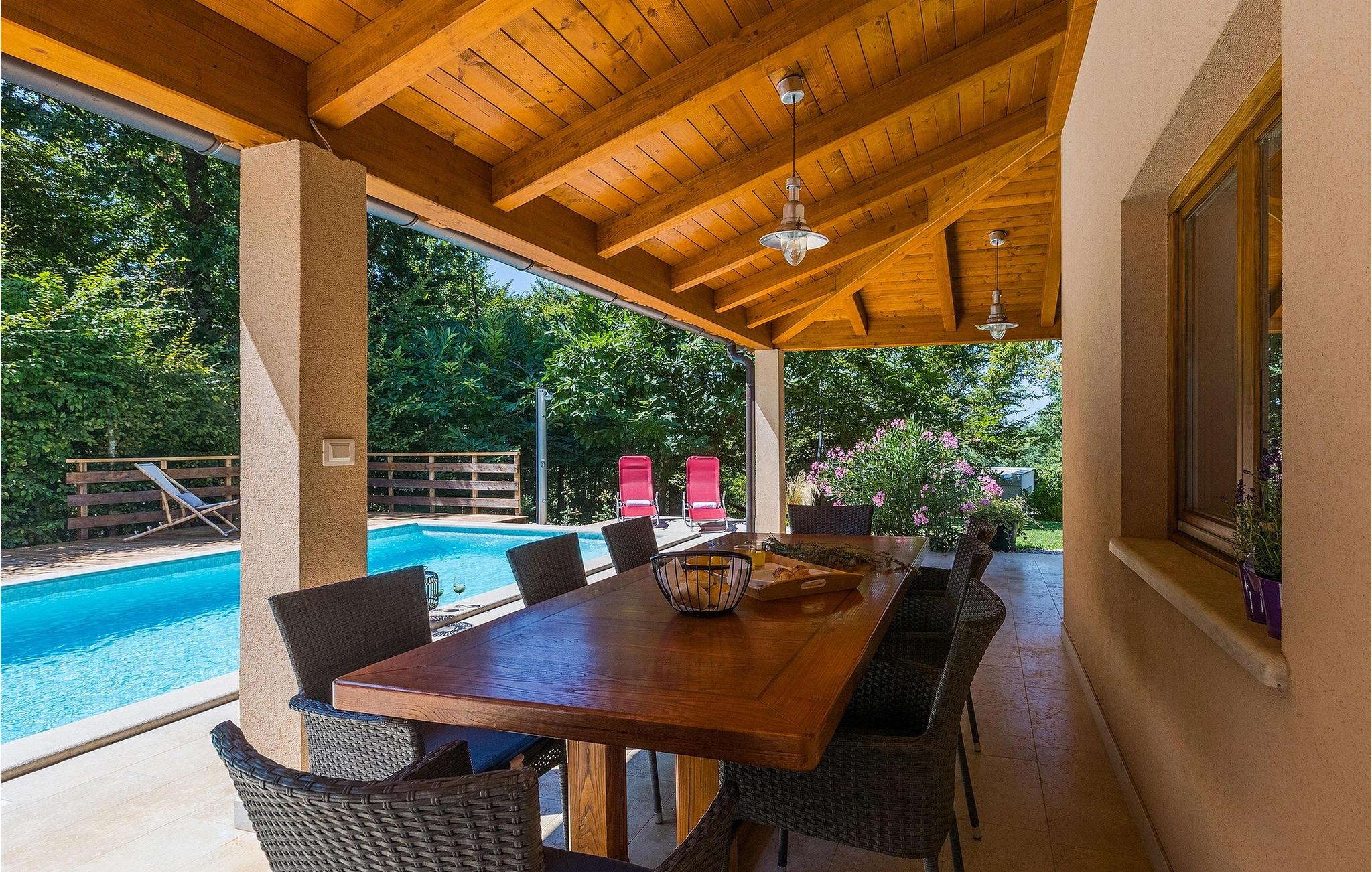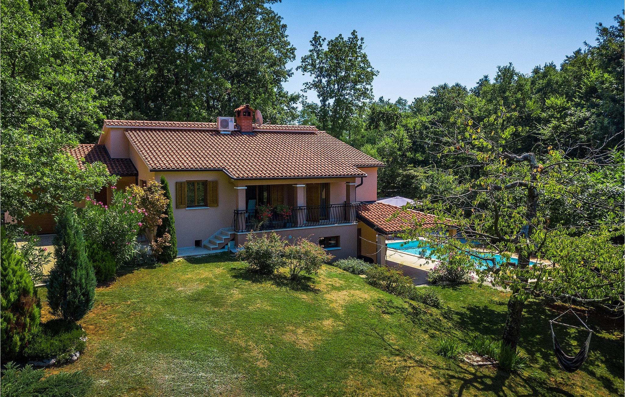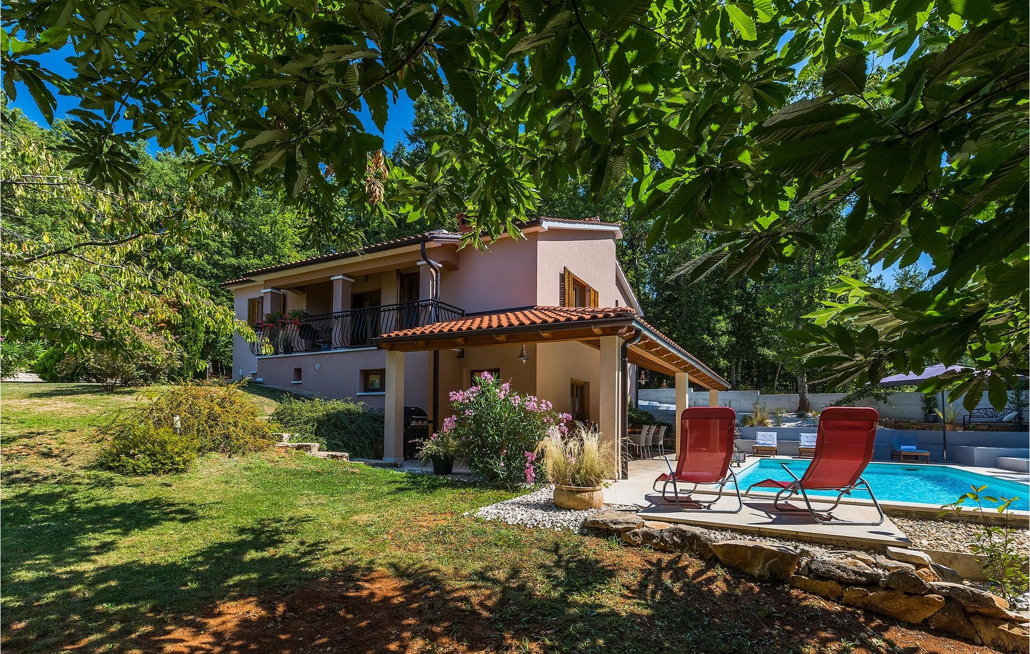 Alle, der leder efter en overordnet afslappende ferie, vil helt sikkert finde deres perfekte sted i denne charmerende villa i hjertet af Istrien. Villa Tila er velegnet til en gruppe på 8 gæster, der kan indkvarteres i 4 hyggelige soveværelser. Det ligger på en 1150 m2 stor grund, fremhævet af en forfriskende privat pool. Haven er smukt plejet med masser af plads til, at alle kan finde deres eget sted, mens det frodige grønne område giver nok skygge på varme sommerdage. Villaen er opdelt i to etager. Stueetagen består af en stue, eller bedre et samlingsrum med et tekøkken, og et stort soveværelse med tilhørende badeværelse. Den øverste etage er hovedetagen - her er stue og spisestue, samt det fuldt udstyrede køkken. 3 soveværelser, et med en dobbeltseng og to med hver to separate senge, ligger på denne etage. Et badeværelse og et separat toilet er her også.